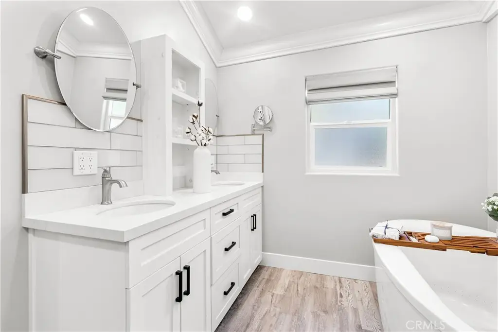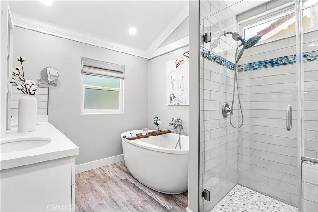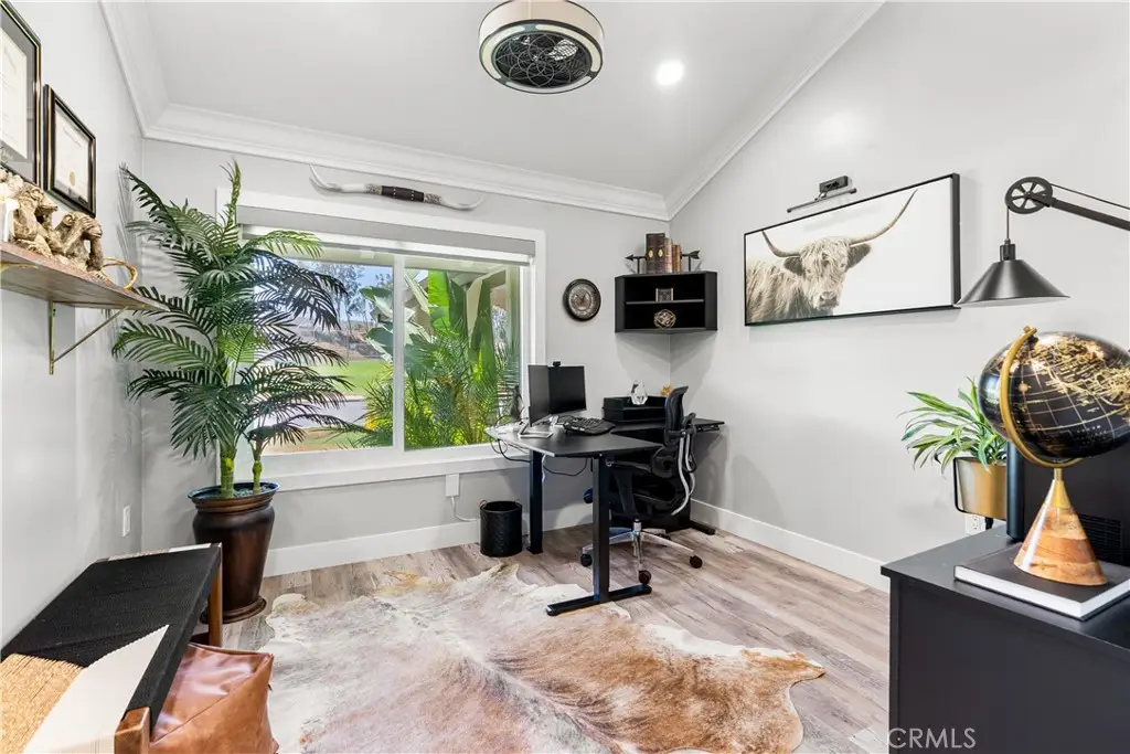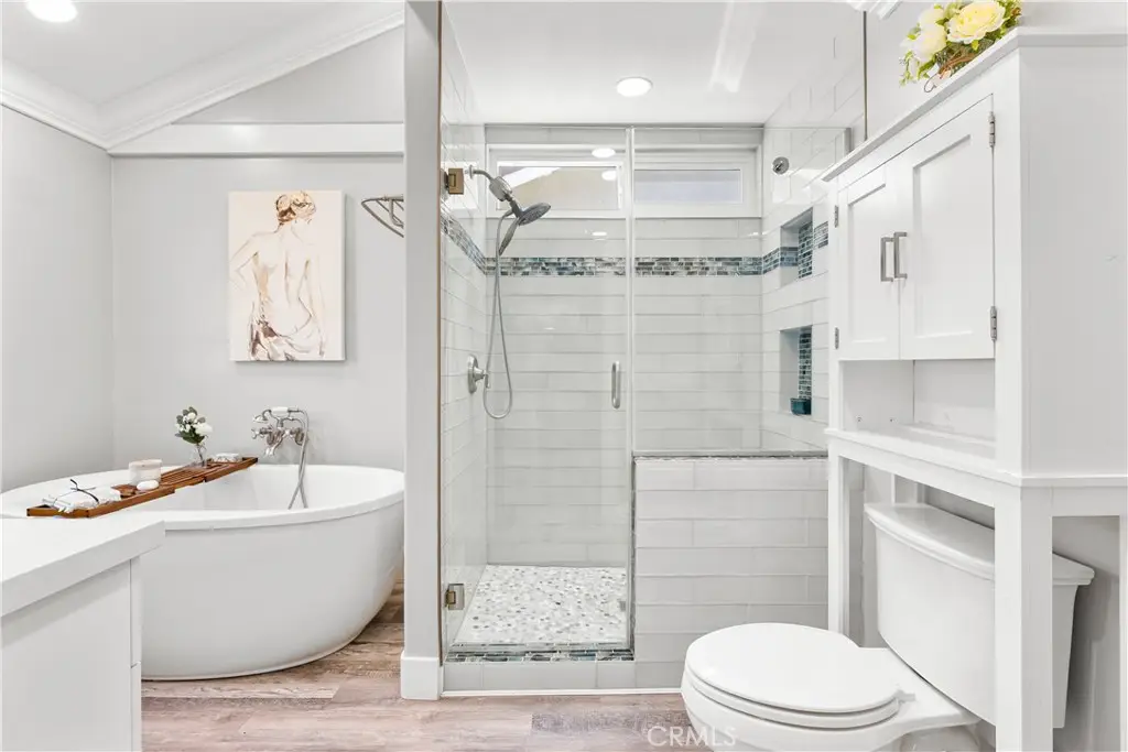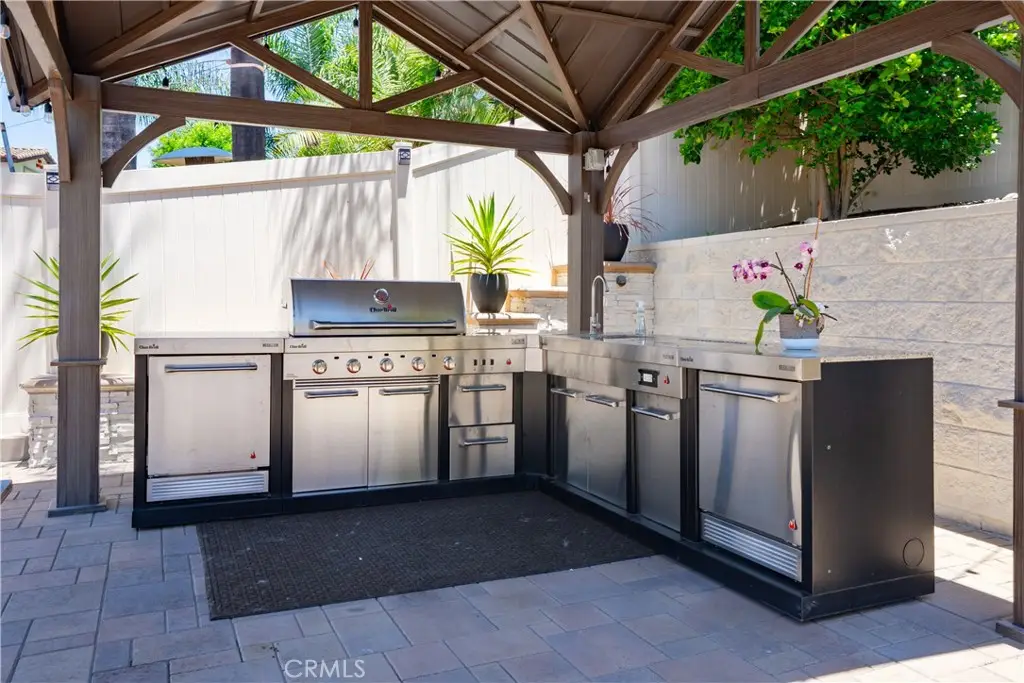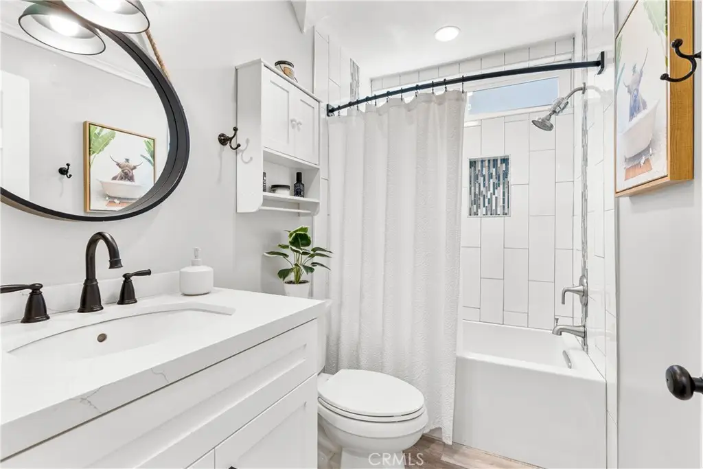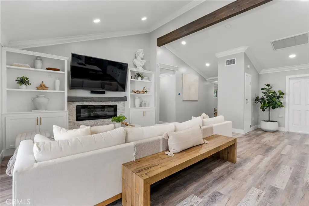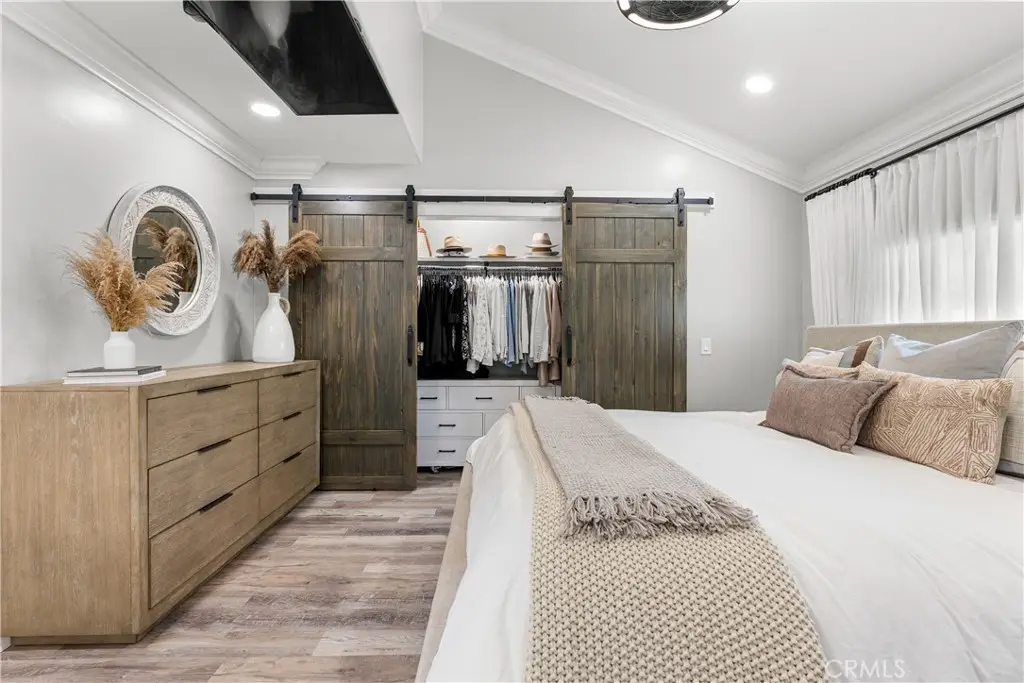 Seller to credit buyer $10,000 towards closing costs at close of escrow. Step into the epitome of single-story luxury in the coveted El Dorado enclave of Mission Viejo. Nestled on a quiet, single-loaded street, this fully transformed home greets you with a charming Mediterranean-style entry and floods of natural light. The heart of the house is an entertainer's dream: a chef's kitchen with a generous quartz-topped island, bespoke cabinetry, a stainless-steel farmhouse sink, and top-of-the-line appliances that seamlessly flow into an open family room. Kick back by the stone hearth fireplace, or wander through a sleek slider onto the covered patio, where recessed lights, a built-in bar, and a barbecue station set the stage for unforgettable gatherings. Behind the scenes, modern comforts abound: dual-zone A/C, tankless hot water, upgraded insulation, recessed lighting, high-end laminate floors, a new roof, and so much more. A spacious laundry room with custom cabinets keeps chores effortlessly organized. Three versatile bedrooms include a dreamy primary suite, complete with sliding barn-door closets and a spa-caliber bath with separate soaking tub and walk-in shower. The second bedroom surprises with a custom-built staircase leading to a lofted nook ideal for gaming, reading, or extra storage while the third offers peaceful comfort for guests or a home office. Outside, a spacious backyard shed provides versatile storage or a secluded hideaway for relaxation and hobbies. Beyond its impeccable upgrades, including CertainTeed presidential shake(r) TL shingles (cool roof) installed, this home offers membership to the Lake Mission Viejo Association and sits steps from top-rated schools, boutique shops, and fine dining. Meticulously re-piped and maintained, it's truly move-in ready. Discover your sanctuary in El Dorado where style, comfort, and community converge.