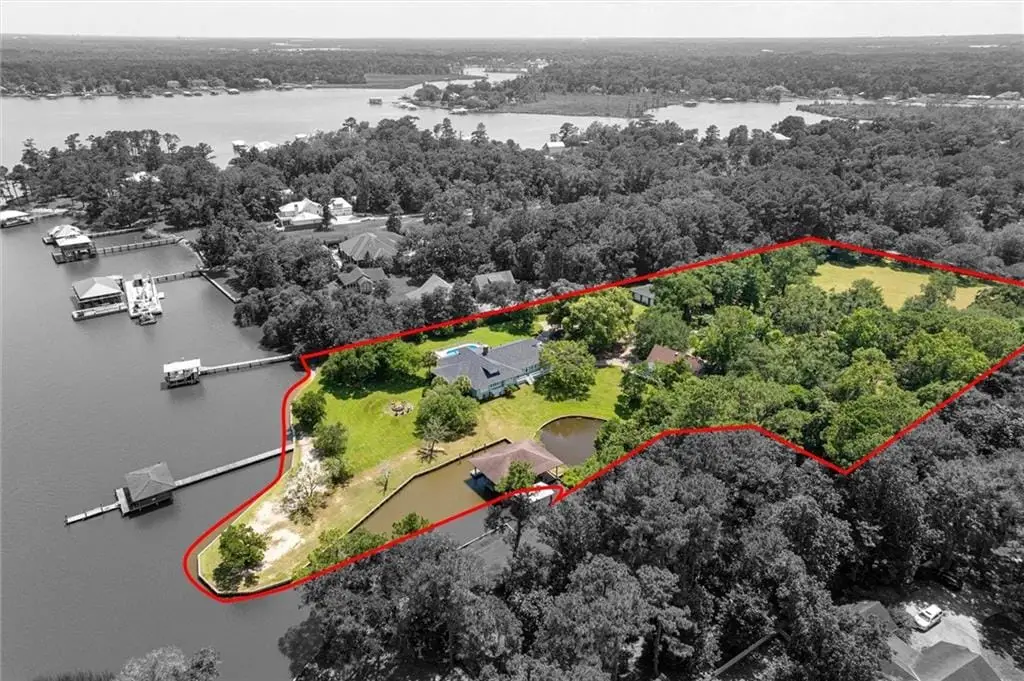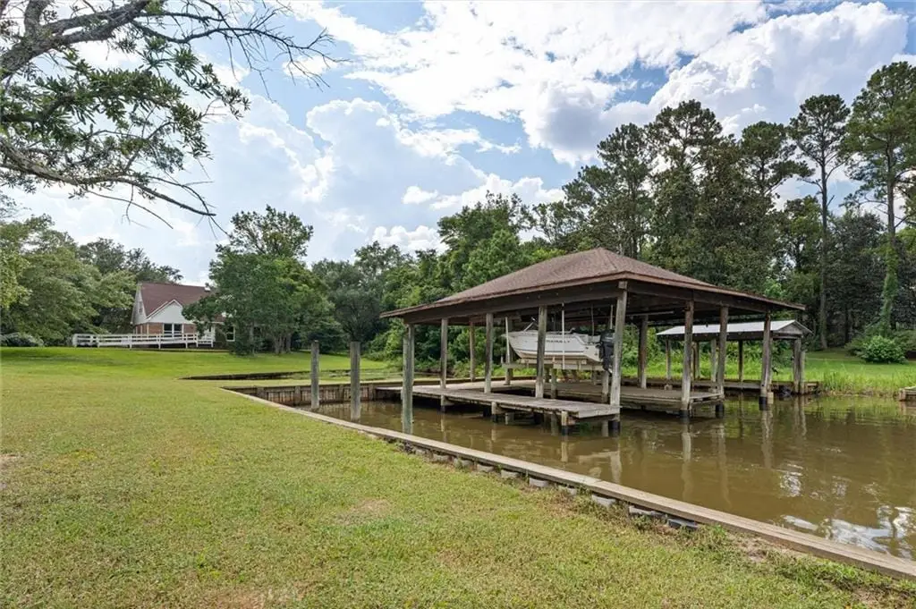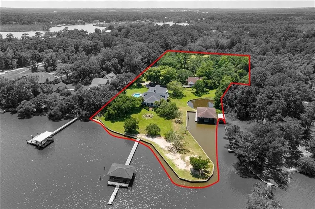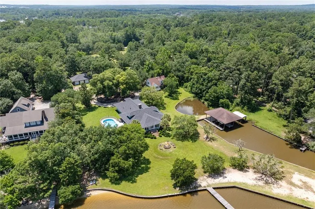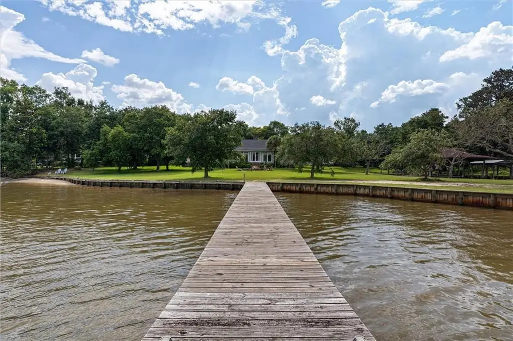 Situated on approximately 7 acres along the wide part of Dog River featuring 368 front footage with a new bulkhead, 215 on the canal and a sandy beach area, this remarkable property offers breathtaking sunsets, serene water views, and lush Southern landscaping. The spacious home features 6 bedrooms and 7.5 bathrooms, an updated kitchen with chefs appliances, and a separate dining area wonderful for entertaining. The main living area features a massive stone fireplace with beautiful views of the river. Step outside to enjoy a huge above-ground swimming pool, a private pond, and a pier with a separate boat lift that accommodates two boats. The grounds are truly a nature lovers dream, filled with mature magnolia trees, blooming azaleas, camellias, gardenias, and vibrant foliage throughout. The possibilities of usage for this special property are unlimited. Subdividing and creating your own special oasis could also be an option. This is a rare chance to own a private waterfront estate with both charm and space. Schedule your showing today! Per seller, 4 new HVACs on property. Sprinkler system attached to new fresh water well. New piers under the house and recently leveled. New roof, 2024. There is a Guardian generator for the main house. Buyer responsible for verifying all measurements and relevant details.