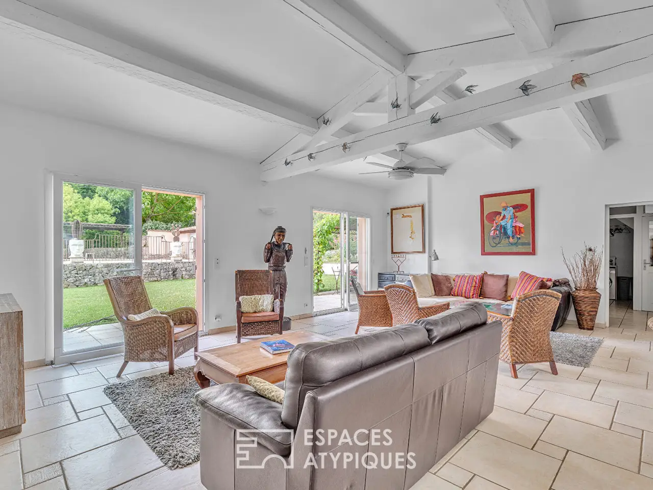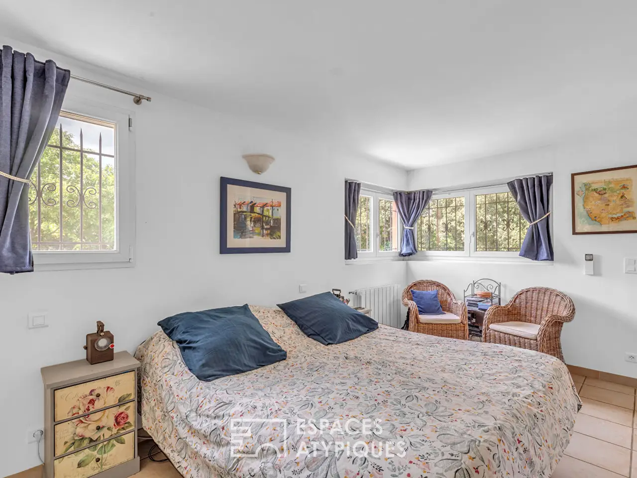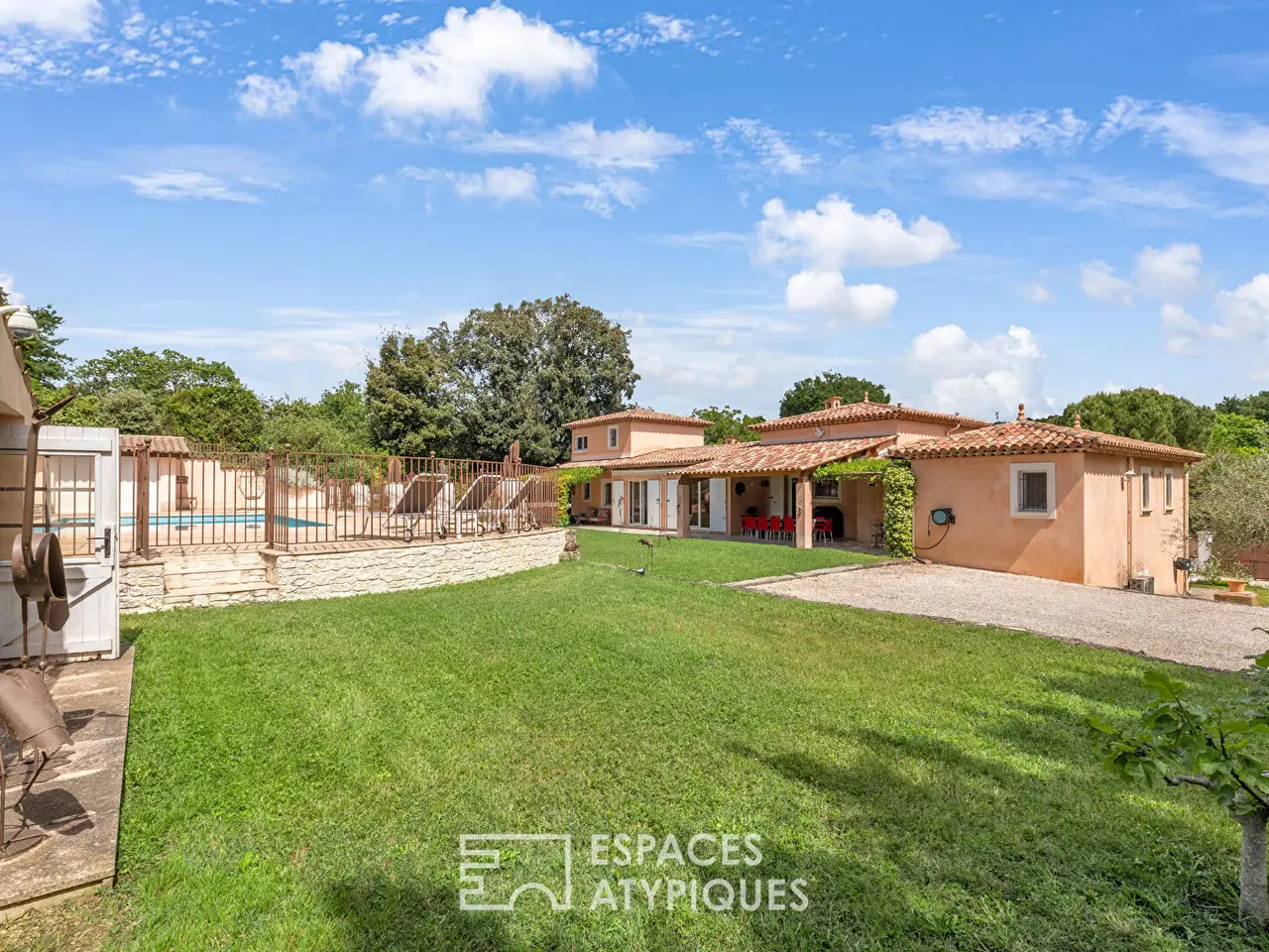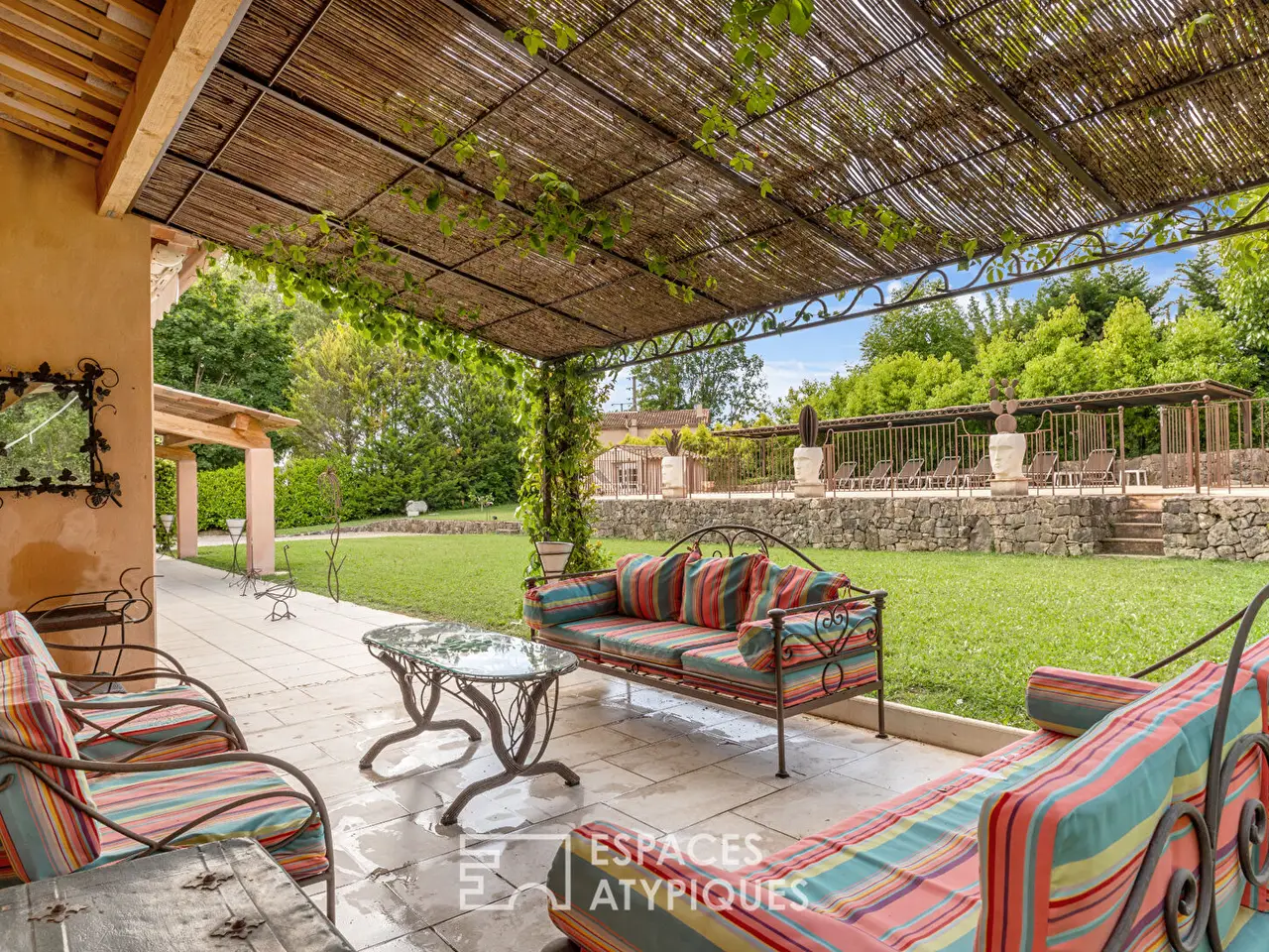 Elegant property, between nature and light. Just minutes from the hilltop village of Montauroux, this unique 237 sqm property is nestled in a 2,500 sqm green setting, in the immediate vicinity of a preserved natural area. Discreetly and hidden from view, it combines generous volumes, omnipresent light, and an outdoor lifestyle. Located in a sought-after neighborhood, in absolute tranquility, the main house offers beautiful perspectives around a vast living room bathed in light of over 60 sqm. The open-plan kitchen, welcoming and functional, interacts with a warm living room extended by a south-facing terrace, ideal for contemplation. Three bedrooms, a bathroom, two shower rooms, and a laundry room complete this level. Upstairs, a suite with a shower room overlooks the garden and offers appreciable privacy. Two independent spaces enrich the ensemble: A three-bedroom apartment with a bright living room, open kitchen, two bathrooms, a separate toilet, and a private terrace. As well as a functional studio with a kitchenette and bathroom, ideal for entertaining or considering rental income. The meticulously designed landscaped garden accommodates a 10×5 m swimming pool and its equipped pool house, a workshop, as well as several parking spaces, including four carports. Every detail has been designed to combine comfort, functionality, and aesthetics. The modularity of the spaces, the quality of the services, the serenity of the environment, and the tourist potential of this property make it a rare opportunity, at the crossroads of a family life project or a hospitality business. A house of character, between absolute calm and southern light, where each space inspires relaxation.10 km from the A8 motorway22 km from Grasse30 km from the beaches60 km from Nice airport. ENERGY CLASS: C (109 kWh/m2/year) / CLIMATE CLASS: C (29 kg CO2/m2/year). Estimated average annual energy expenditure for standard use, based on 2021 energy prices: between 3,230 euros and 4,420 euros. Additional information * 10 rooms * 8 bedrooms * 1 bathroom * 6 shower rooms * Outdoor space : 2500 SQM * Parking : 7 parking spaces * 2 co-ownership lots * Property tax : 2 879 € * Proceeding : NonEnergy Performance Certificate