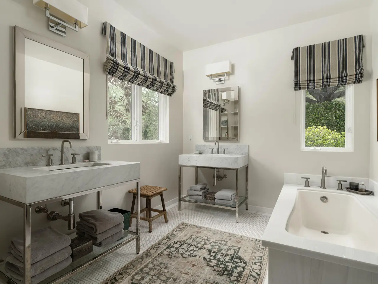Luxurious primary suite with chic en suite bathroom