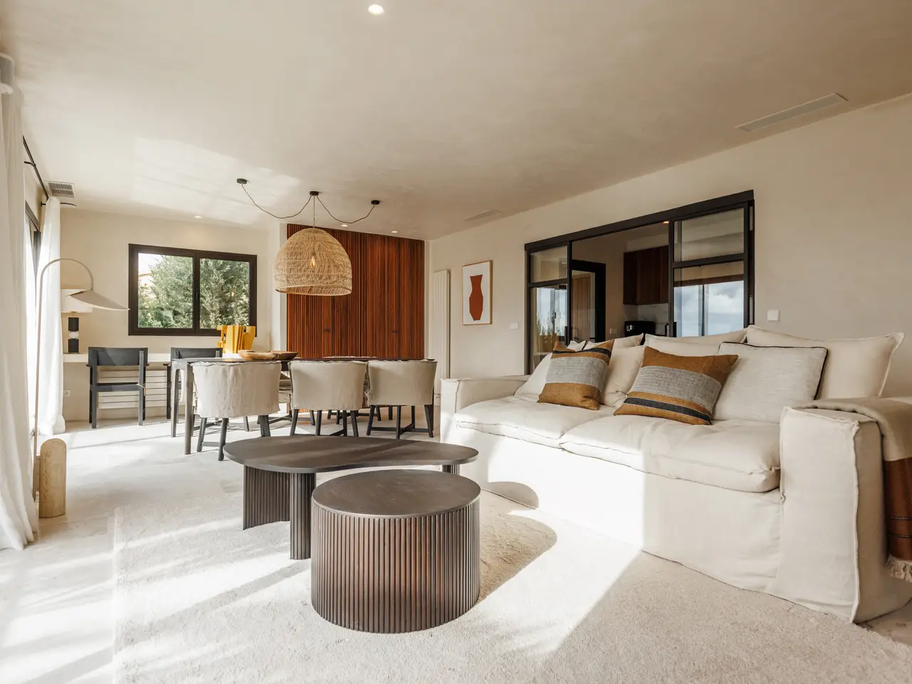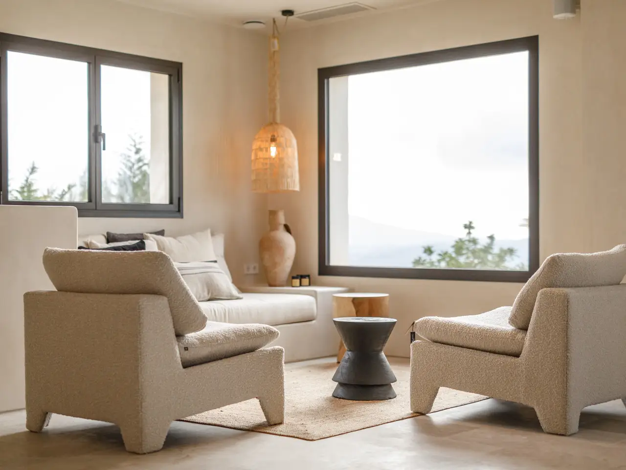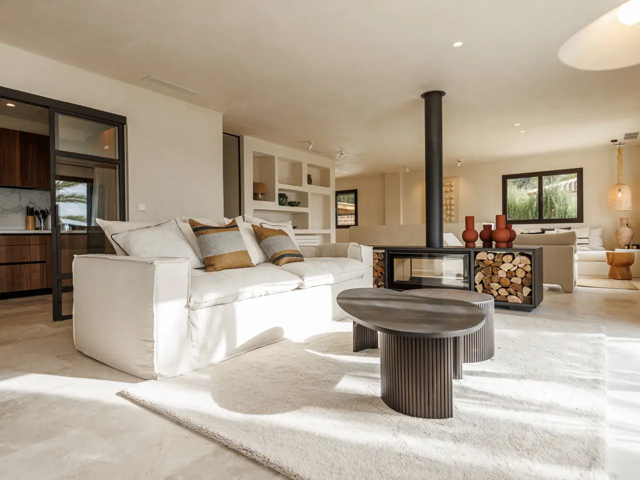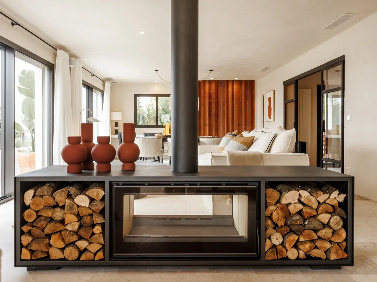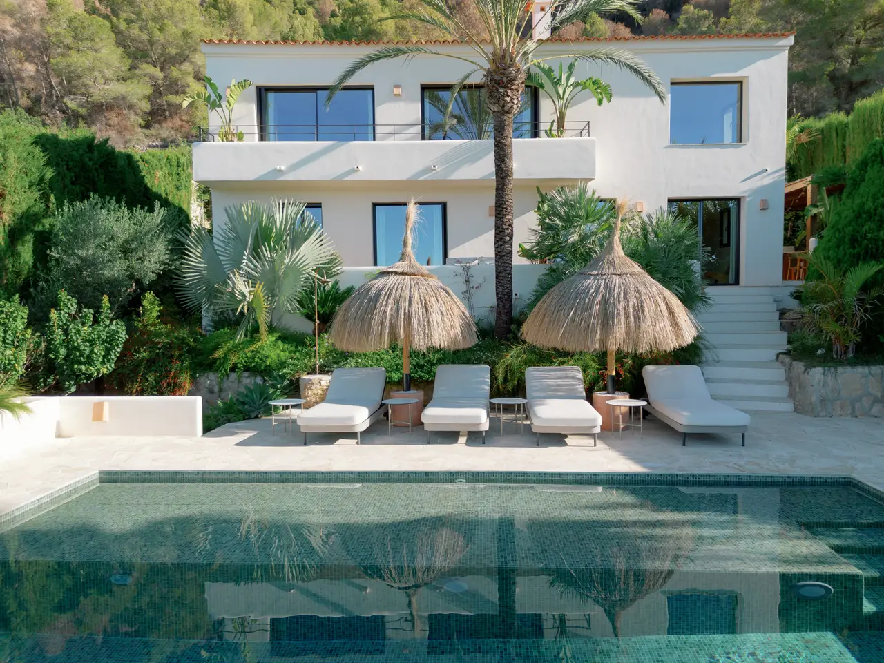 Villa located just a few minutes from the center of Jávea, beaches, and all kinds of services. Upon entering the plot, we find a covered parking area (with charging for electric cars). Through a beautiful door, we access the main living area, featuring a spacious living-dining room with a fireplace and access to the terrace, a fully equipped kitchen, 2 bedrooms, and 2 bathrooms. The lower floor consists of 2 bedrooms with en-suite bathrooms and walk-in closets, a guest toilet, and a storage area. The fantastic outdoor area stands out, with spacious terraces, a heated infinity pool with a cover, a fully equipped barbecue, and a chill-out area. Additional features include ducted air conditioning, natural stone floors, a fully equipped laundry room, central heating, ceiling fans in the bedrooms, and an alarm system.
