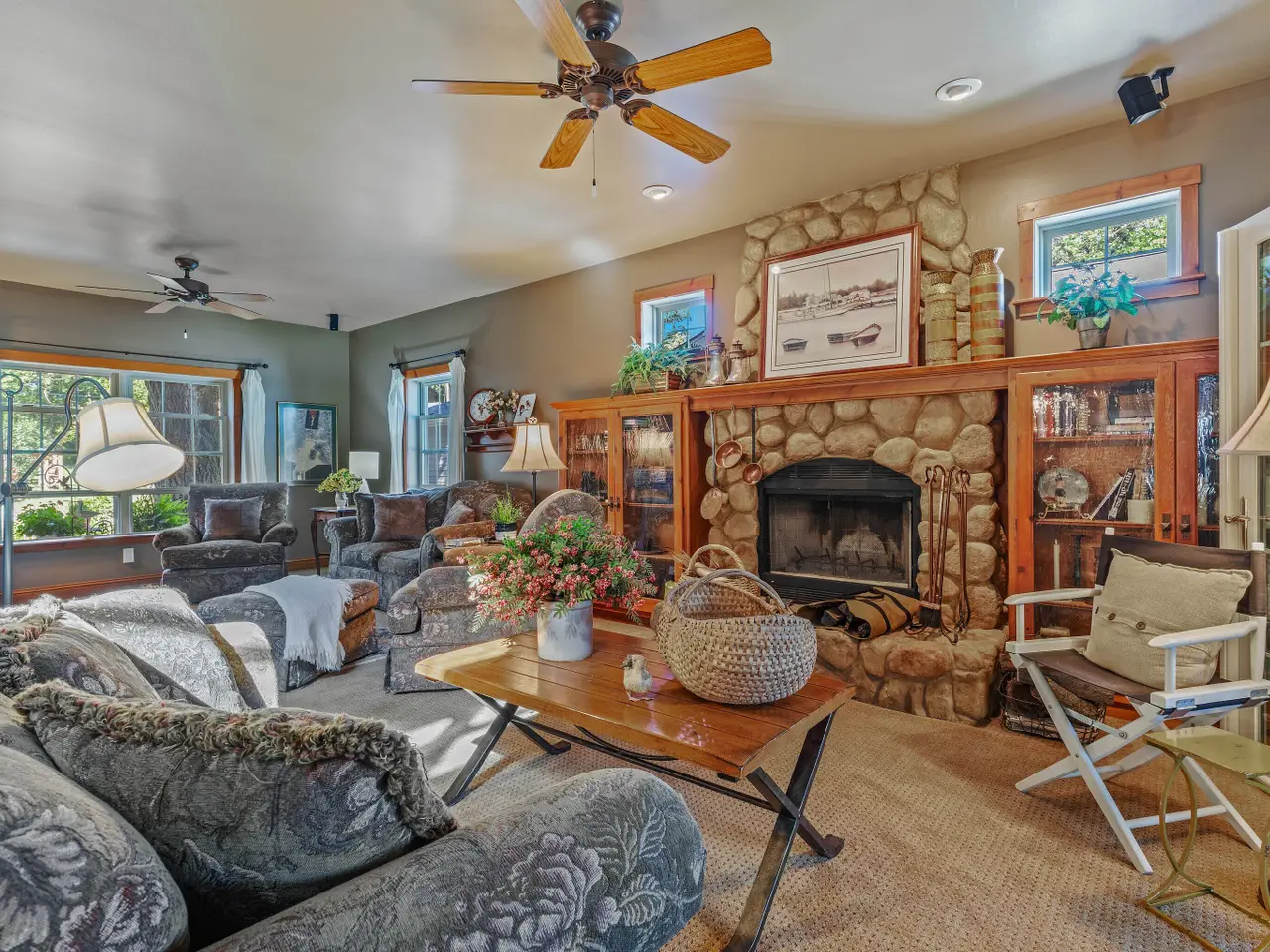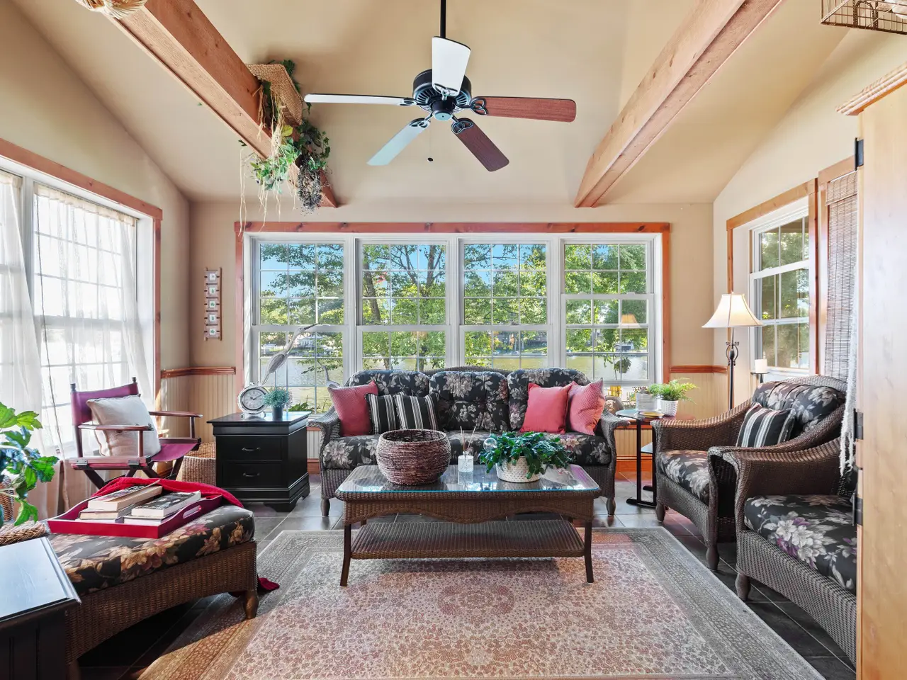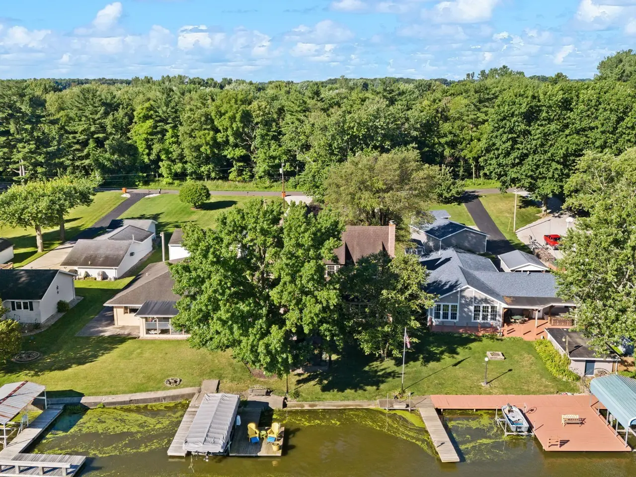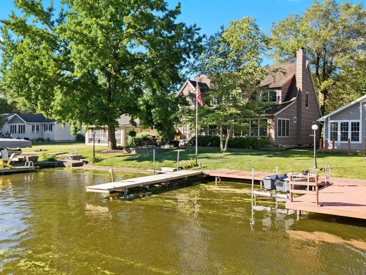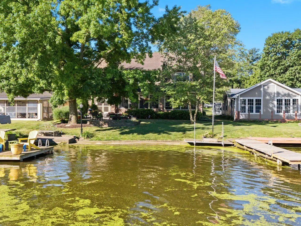 Looking for the quintessential weekend retreat, or a lovely place to call home! This home will fit all of your needs. Sitting on the "Big Monon Bay" which is just a short boat ride to Lake Shafer, Indiana Beach and Tippecanoe Country Club. Property is just 2 hours from Indianapolis and 2.5 hours from downtown Chicago. This fabulous home has 65 feet of water frontage with a seawall and two docks. Home is equipped with a lovely country kitchen, farm sink and center island with sink, both equipped with disposals. Loads of built-ins. Follow the country kitchen to the French doors which open to a screened-in porch, which looks out at the bay. Great room has a stone wood-burning fireplace flanked by pine bookcases with wood harvested from the original homesite. On cool days go through another set of French doors which go out to a 4-season sunroom with beam ceiling. The primary bedroom is on the main floor with a large bath, walk-in closet, and French doors which lead out to one of the two patios located on "Monon Bay". Surrounded by large trees and beautiful perennial flower gardens with underground gutters. The upstairs has two huge bedrooms with loads of windows. A small loft library with window seat storage. Two full baths and a large rec room which could be converted into a suite, there is a two-car attached garage and a detached two car garage with small office with running water, insulated walls and heat, the tranquil setting of this home brings you through a lovely courtyard style patio and will not disappoint. Home is on city sewer and has a well for water. The house is not located in the flood zone and recently received a Loma from FEMA, dated 5/28/2024.
