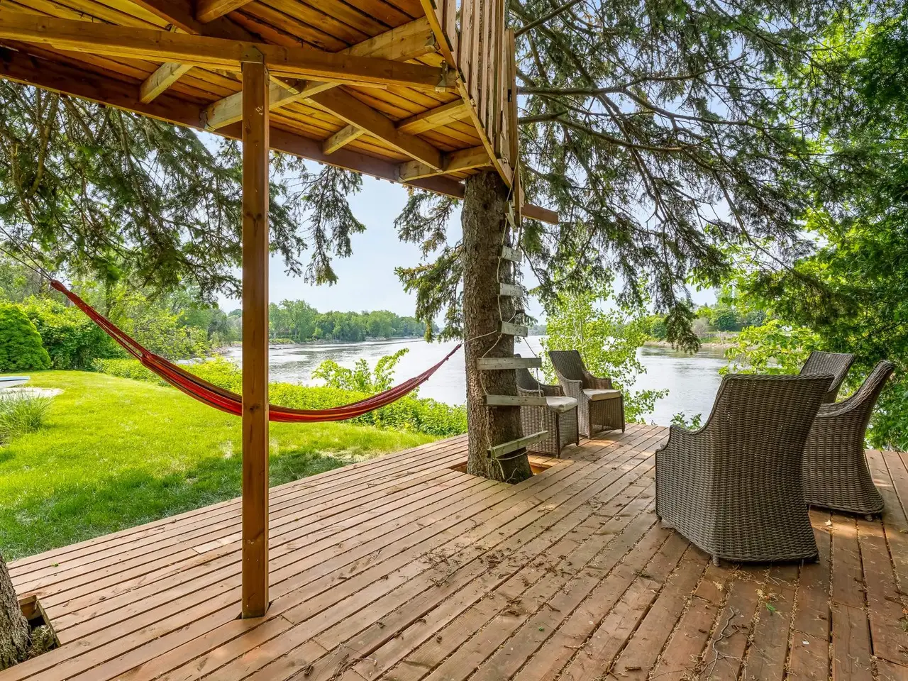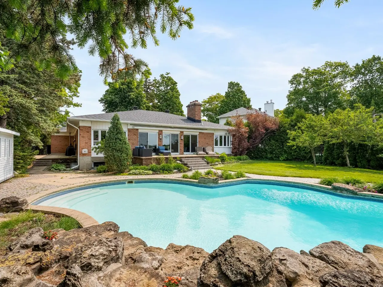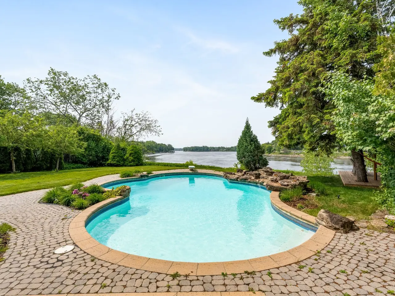 A breathtaking waterfront residence nestled along the shores of the Riviere-des-Prairies. This sprawling bungalow features 7 spacious bedrooms and 3.5 luxurious bathrooms, with elegant living spaces designed to meet the highest standards of refinement. The property also includes a stunning inground pool overlooking the river, perfect for outdoor relaxation and entertaining. Situated in the prestigious L'Ile-Barwick community, this rare gem presents an unparalleled opportunity.