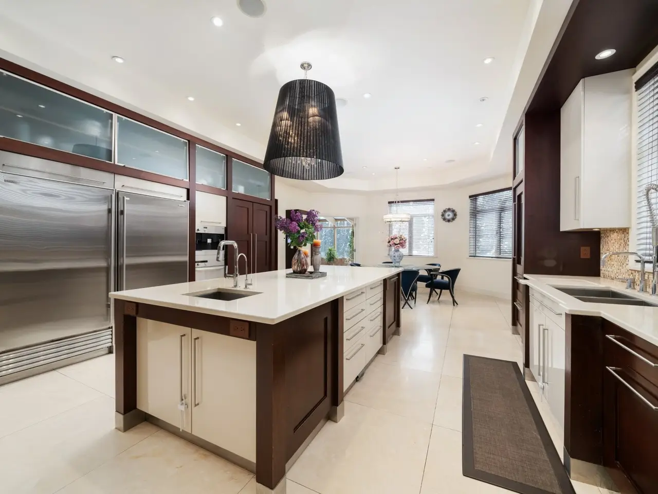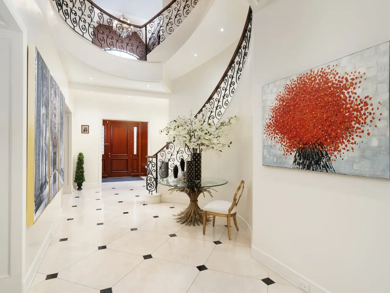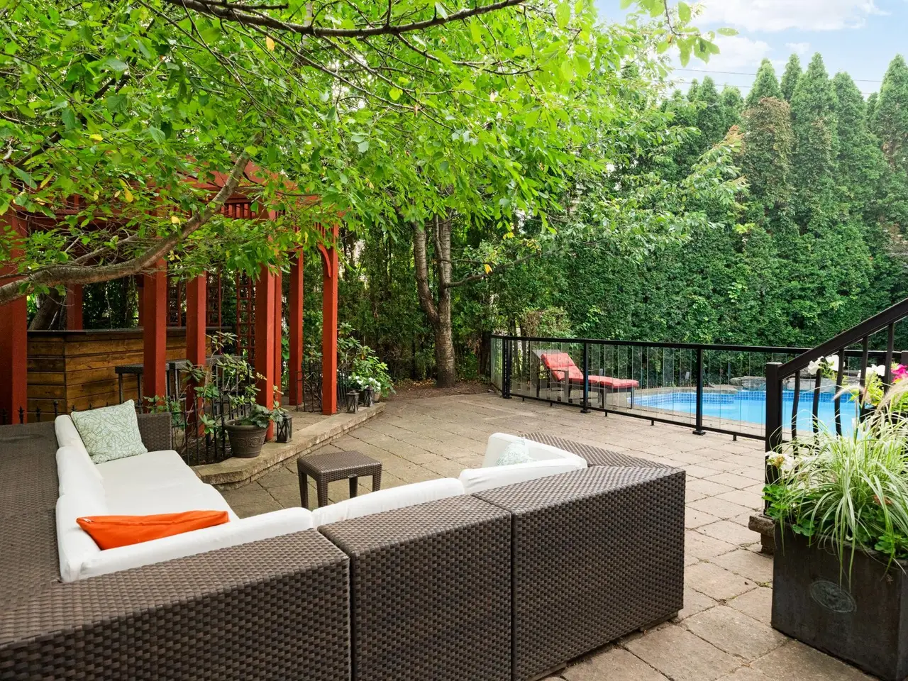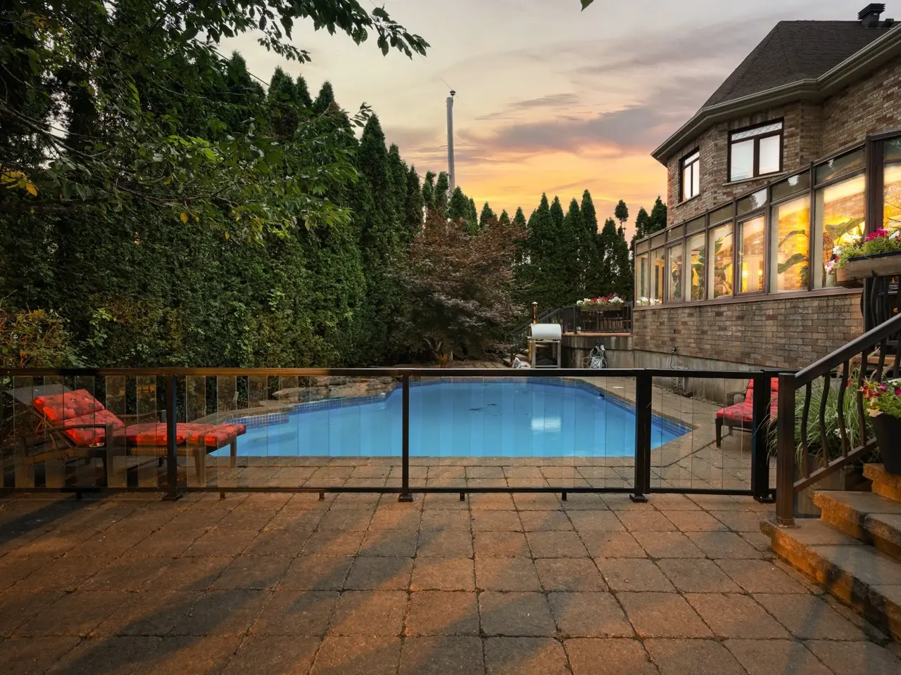 Located in prestigious Nouveau St-Laurent, this custom-built home offers 7 bedrooms, 7 bathrooms, and 2 powder rooms. A stunning stone facade, manicured lawn, private driveway for six cars, and a three-car garage with lift expansion. Grand entrance with marble floors, soaring ceilings, wrought-iron staircase, and elegant moldings. Gourmet kitchen with central island, Sub-Zero fridge, Miele appliances. Four-season solarium opens to a heated saltwater pool and BBQ. Master suite with gas fireplace, spa tub, steam sauna, Toto toilet, gym, and walk-in closet. High-end home theater, spa with massage room, sauna and exquisite cellar. A unique gem.