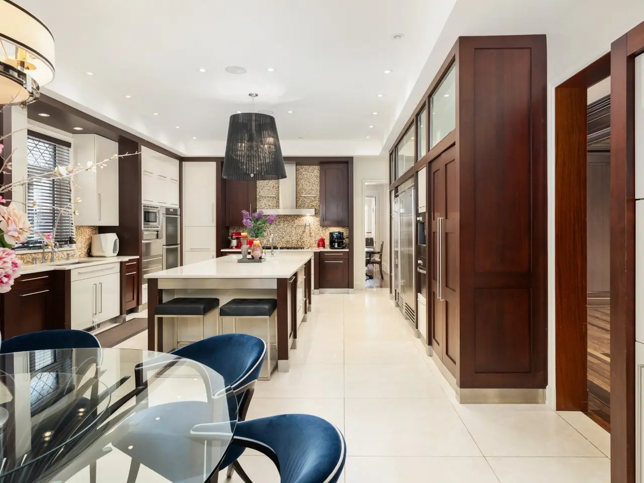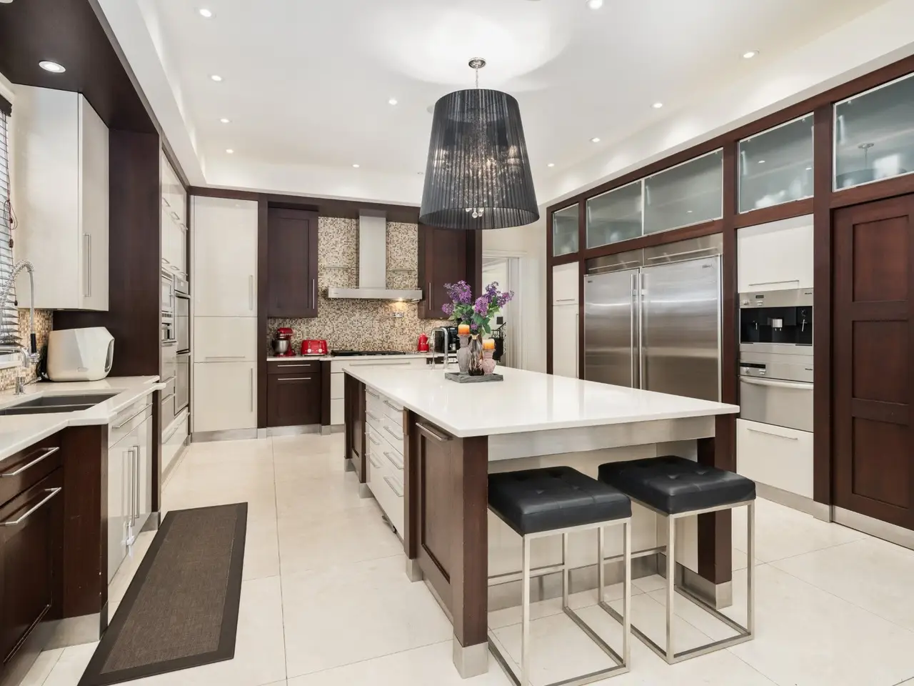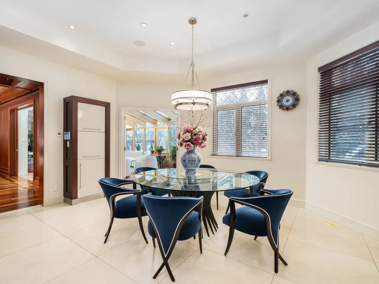 Located in prestigious Nouveau St-Laurent, this custom-built home offers 7 bedrooms, 7 bathrooms, and 2 powder rooms. A stunning stone facade, manicured lawn, private driveway for six cars, and a three-car garage with lift expansion. Grand entrance with marble floors, soaring ceilings, wrought-iron staircase, and elegant moldings. Gourmet kitchen with central island, Sub-Zero fridge, Miele appliances. Four-season solarium opens to a heated saltwater pool and BBQ. Master suite with gas fireplace, spa tub, steam sauna, Toto toilet, gym, and walk-in closet. High-end home theater, spa with massage room, sauna and exquisite cellar. A unique gem.