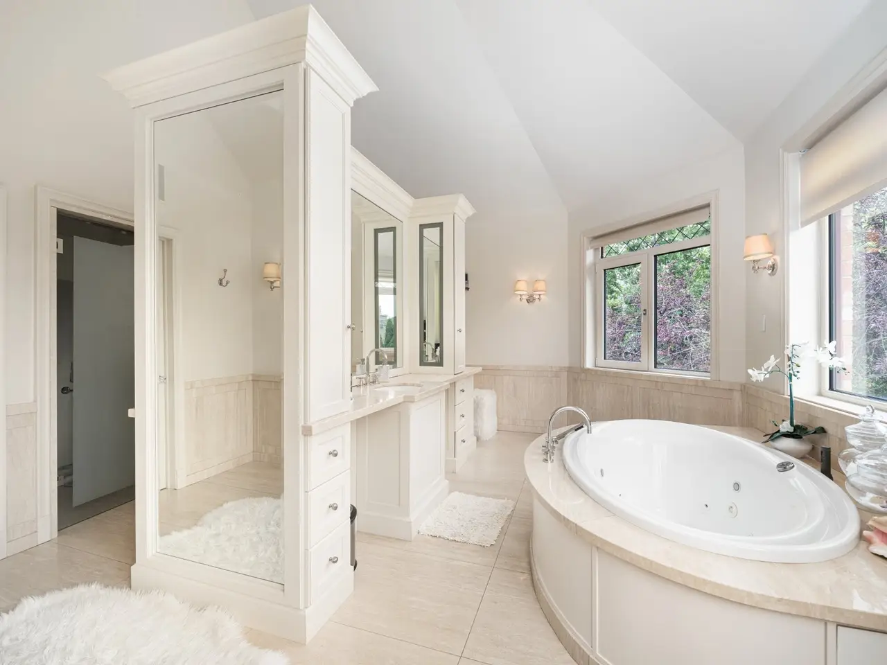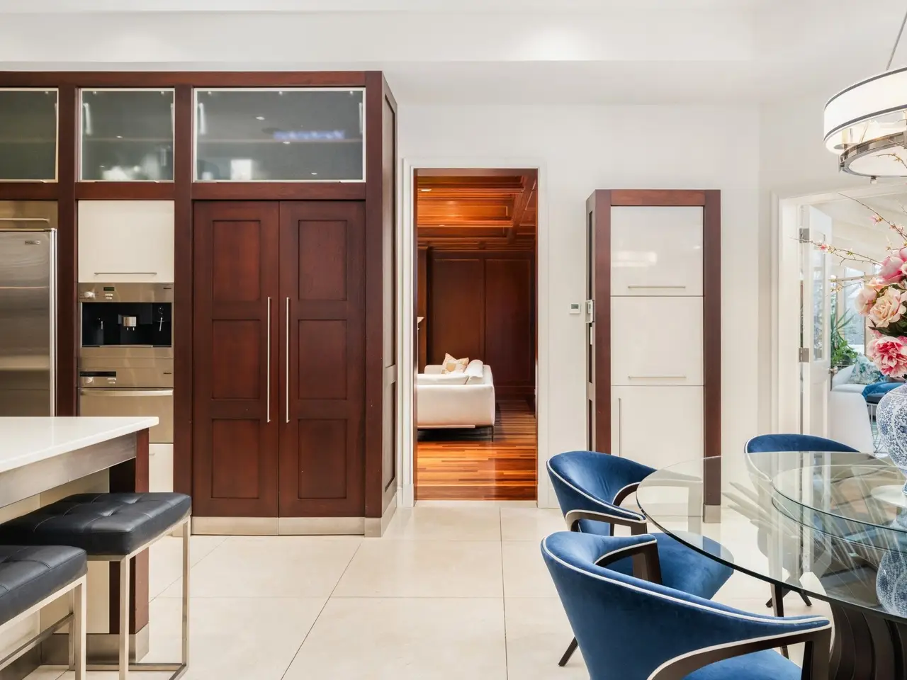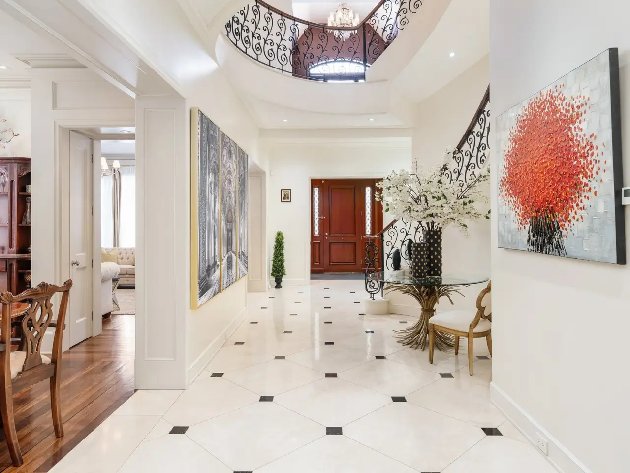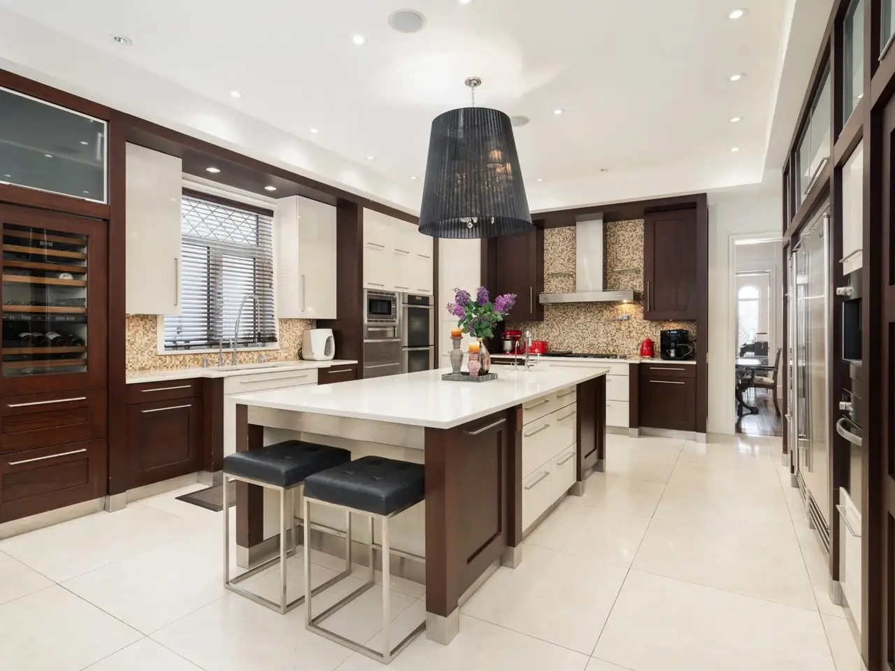 Located in prestigious Nouveau St-Laurent, this custom-built home offers 7 bedrooms, 7 bathrooms, and 2 powder rooms. A stunning stone facade, manicured lawn, private driveway for six cars, and a three-car garage with lift expansion. Grand entrance with marble floors, soaring ceilings, wrought-iron staircase, and elegant moldings. Gourmet kitchen with central island, Sub-Zero fridge, Miele appliances. Four-season solarium opens to a heated saltwater pool and BBQ. Master suite with gas fireplace, spa tub, steam sauna, Toto toilet, gym, and walk-in closet. High-end home theater, spa with massage room, sauna and exquisite cellar. A unique gem.
