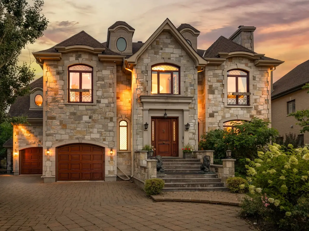 Sophisticated Stone-Front Residence with Gym and Sauna