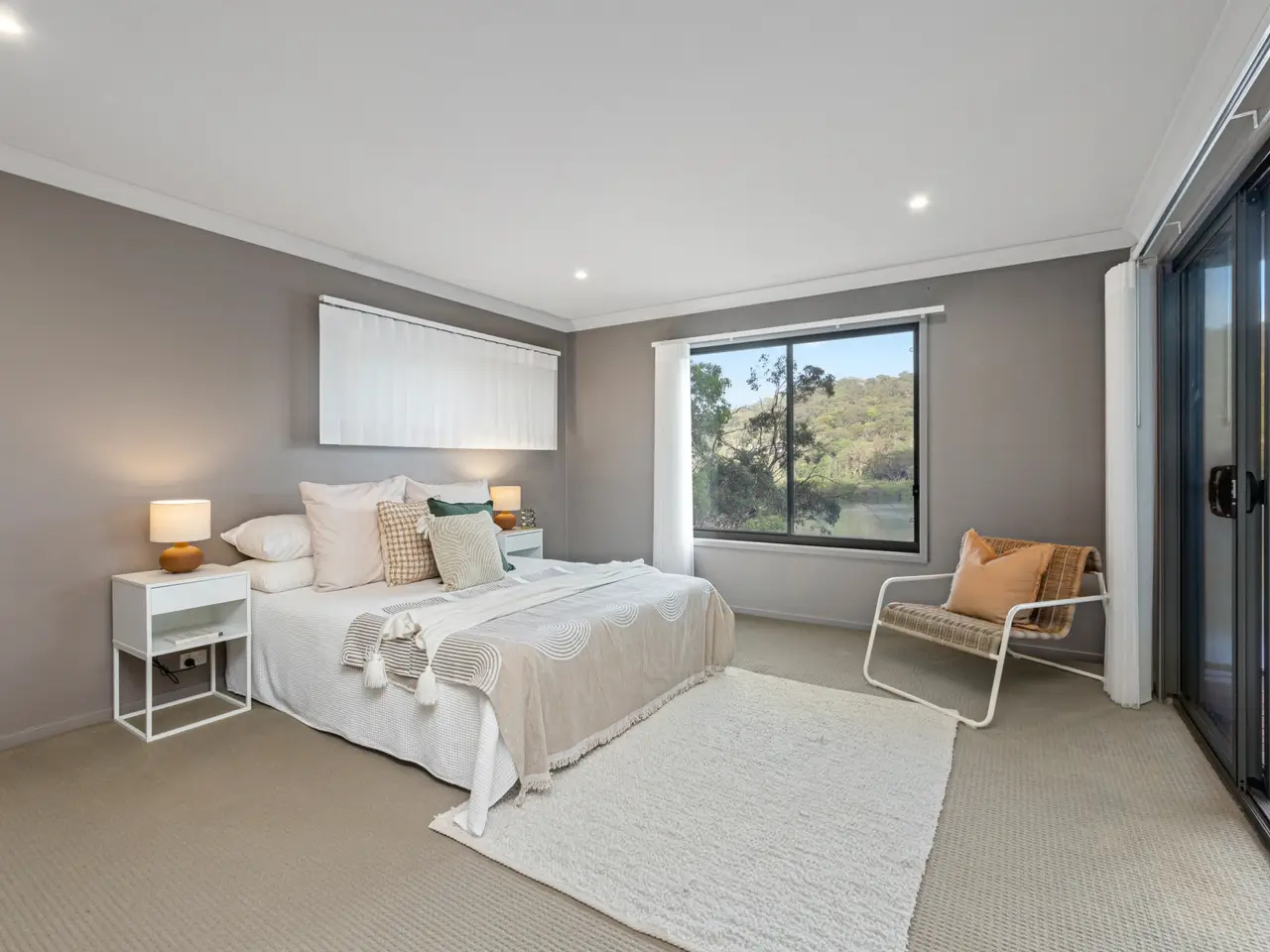 Embraced by 180-degree panoramas across Mooney Mooney Bay, this waterfront property is a visionary display of contemporary excellence. Resting under spectacular double height ceilings and masterfully designed so almost every room is framed by intimate water views, a fluid connection to the dual decking creates the perfect setting for entertaining. Undoubtedly one of the area's finest homes, from this sleepy seaside town it's an easy commute to the beautiful hamlet of Brooklyn with rail access to the Central Coast and Sydney's CBD. An exquisite lifestyle opportunity, a luxury holiday rental or stylish weekender, it delivers an idyllic haven of unparalleled sophistication. • Grand double entry leading to an expansive centrepiece living area • Gourmet entertainer's kitchen equipped with premium European appliances • The kitchen also includes an oversized butlers pantry with endless storage • Banks of glass and double height ceilings frame the uninterrupted water views • Luxury bedrooms, the master suite located on the main level for privacy • Downstairs bedrooms with private deck are ideal for teens and guests • Wraparound deck offering the perfect setting for alfresco waterfront dining • Home office or 4th double bedroom • Two deluxe bathrooms plus a powder room, the ensuite boasting water views • Hardwood floors, louvre windows and ceiling fans in all the bedrooms • Copious storage, oversized automatic double garage plus a two-car bay • There is plenty of under house storage and solar panels with a 6.5kw battery • Motorised gate entry and abundant space for your boat, caravan or trailer • Quiet cul-de-sac and just a short drive to Hawkesbury River train station • Walk to Mooney Mooney Club and only moments to Brooklyn village • Less than an hour commute into Sydney's CBD * Land Size: 1100sqm * Pest and Building Inspection Report Available Disclaimer: All information contained herein is gathered from sources we believe to be reliable. However we cannot guarantee its accuracy and interested persons should rely on their own enquiries.