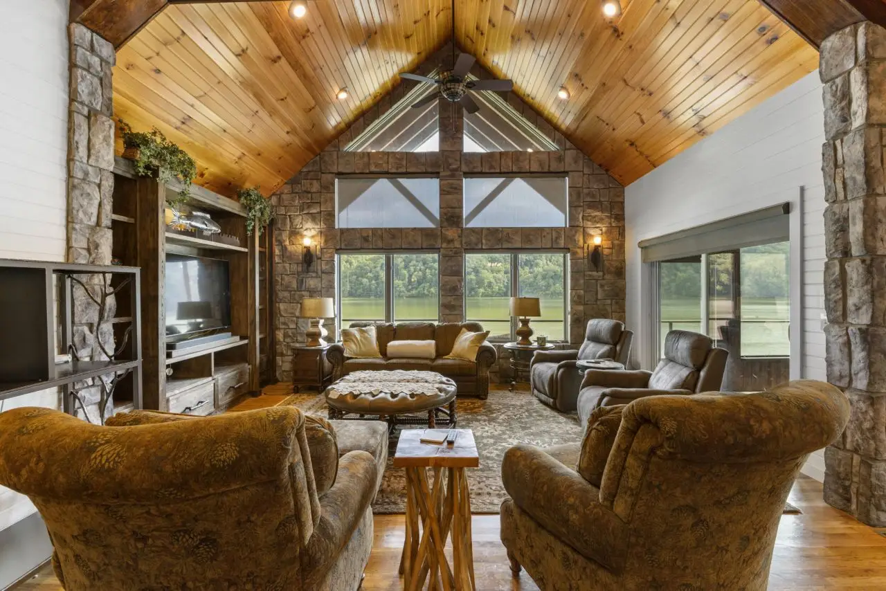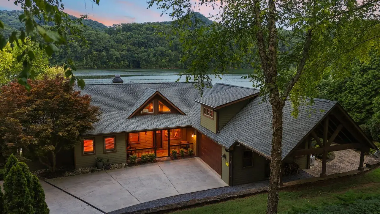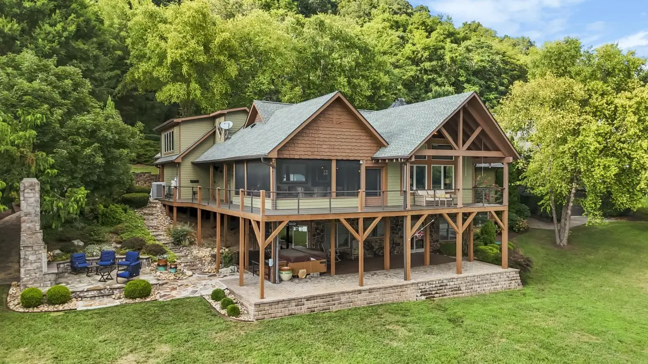 Welcome to 743 Jim Town Rd - Nestled on the serene shores of Cherokee Lake, this one-of-a-kind retreat was masterfully crafted to be a true oasis. From the moment you enter, you're greeted by the warmth of natural textures and awe-inspiring lake views framed by soaring floor-to-ceiling windows. Exposed beams, intricate custom woodworking, built-ins throughout, and a wood stove fireplace create a sense of timeless comfort, elevated by modern ease like remote-controlled electric blinds. Step into the gourmet kitchen featuring chiseled, leathered granite, a Monogram series gas range, custom cabinetry, and a serving pantry complete with a sub-zero refrigerator, a refrigerator drawer and freezer drawer with ice machine, and walk in pantry, hidden by custom sliding doors. The main-level primary suite is a sanctuary with lake views that greet you each morning and a spa-like bathroom that invites you to slow down. Dual vanities, a walk-in shower with body jets, his-and-her closets, and a private dressing room complete the experience. Downstairs is ideal for guests, family, and playful escapes. A generous living area with a kitchenette/bar opens to a guest suite, a children's quarters fitted with custom bunk beds + a full bath, and a secret hideaway perfect for a playroom or bonus sleeping space. Step outside to discover your private lakefront lifestyle. Entertain on the screened porch or open-air deck. Unwind on the lower-level covered patio with a hot tub and gather around the stone fire pit under starlit skies. With 288' of pristine shoreline, your floating dock powered by solar energy, boat lift and jet ski port is waiting on you. A detached 2 level garage provides generous space to house cars, toys, and gadgets. Other improvements include a back up generator, newer roof (2021), and manicured landscaping. A home of this caliber is rarely offered and difficult to replicate. Every detail speaks to thoughtful design and expert craftsmanship. 743 Jim Town Road is truly a remarkable lakefront retreat - one that must be seen to be fully appreciated. Give me a call today to schedule a private tour.
