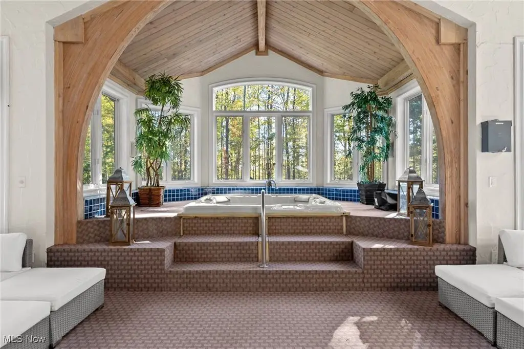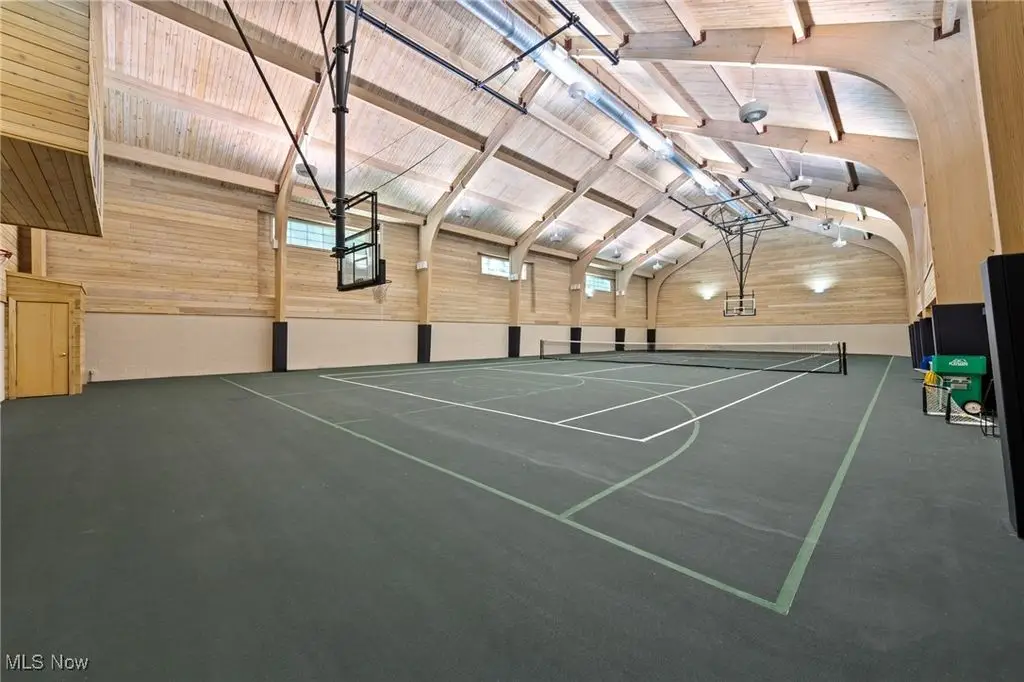 You can feel like you're on vacation 365 days a year in this one of a kind home which was designed for the recreational sports lover! Sited on the most breathtaking wooded lot with a fabulous pond in the front yard, this unique structure is designed for grand scale entertaining and exercising! What makes this special is the one of a kind attached indoor pool complex and the fabulous indoor tennis court/basketball court (and pickleball too!). The living areas in this home are incredible featuring an open floor plan highlighted by a truly spectacular great room area which overlooks both the pool and tennis court. Open to the great room is the fabulous kitchen and dining room area. Here you can entertain in style and ease! There are two huge bedroom suites both with private bathrooms. There is even a finished lower level with additional entertaining and living space. Here you can have a family room, exercise room, hobby room, and more! The unique structure has a 3+ car attached garage, first floor laundry room, and incredible storage throughout. Surrounding the pool area is additional entertainment space, a glass-walled hot tub, and a fabulous built-in wet bar area. There is even an additional full bathroom with a gym-sized sauna. Summers will be enjoyed on the fabulous outdoor patio area which overlooks a wooded wonderland. Truly a one-of-a-kind property!!