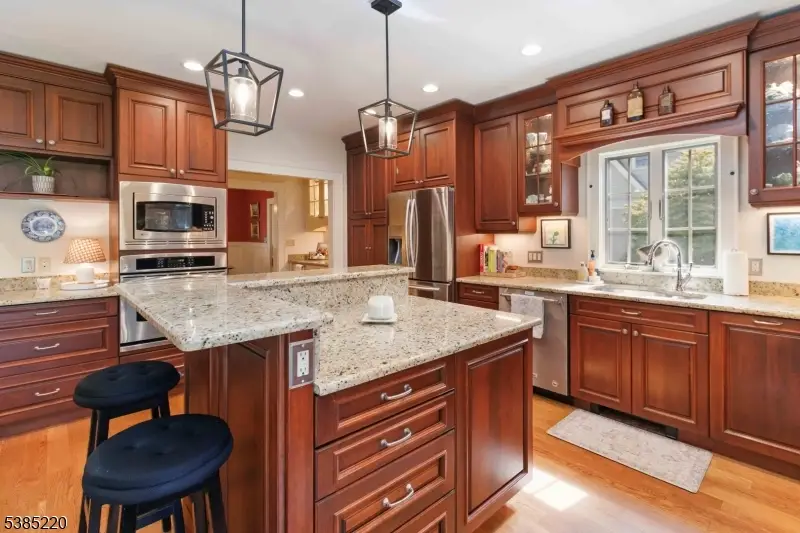 Iconic Washington's Headquarters Tudor on one of the most sought-after addresses in Morristown. Completely rebuilt from the outside in, this residence blends timeless period restoration with every modern convenience. Every detail has been thoughtfully considered, from solid three-panel doors and custom mouldings to classic crown trim throughout. The light-filled interior showcases hardwood floors, double-hung tilt-wash Andersen windows, and a seamless floor plan designed for both everyday living and entertaining. The chef's kitchen features custom cabinetry, a five-burner Wolf cooktop, stainless steel appliances, a center island, and a separate eat-in area. The adjoining butler's pantry doubles as a wet bar and coffee station, complete with built-in refrigerated drawers, a true showpiece for hosting. Upgrades continue throughout: new screens in the inviting sunporch, a beautifully landscaped and fenced-in yard, and climate comfort delivered by 2-zone central air and 5-zone hot water baseboard heating. A detached two-car garage with a walk-up loft adds bonus space and functionality. The home is as practical as it is beautiful, marrying craftsmanship with convenience at every turn. It's not just a house-it's a lifestyle. Located in the desirable Washington's Headquarters neighborhood, you'll enjoy proximity to the NYC train, Morristown's vibrant downtown, and major commuter routes. History, character, and modern ease come together here in a way that's nearly impossible to find.