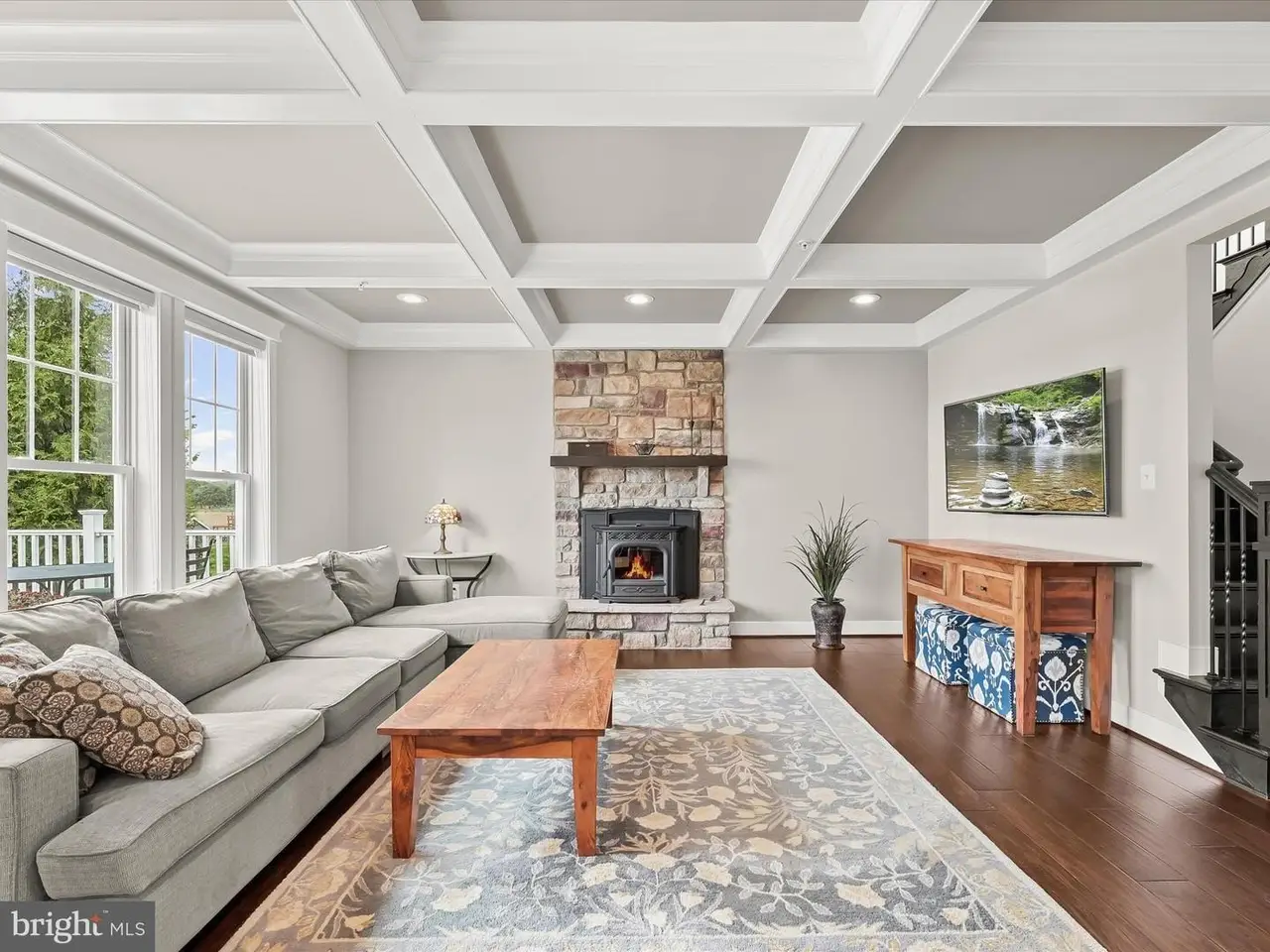 Coffered ceilings in the family room