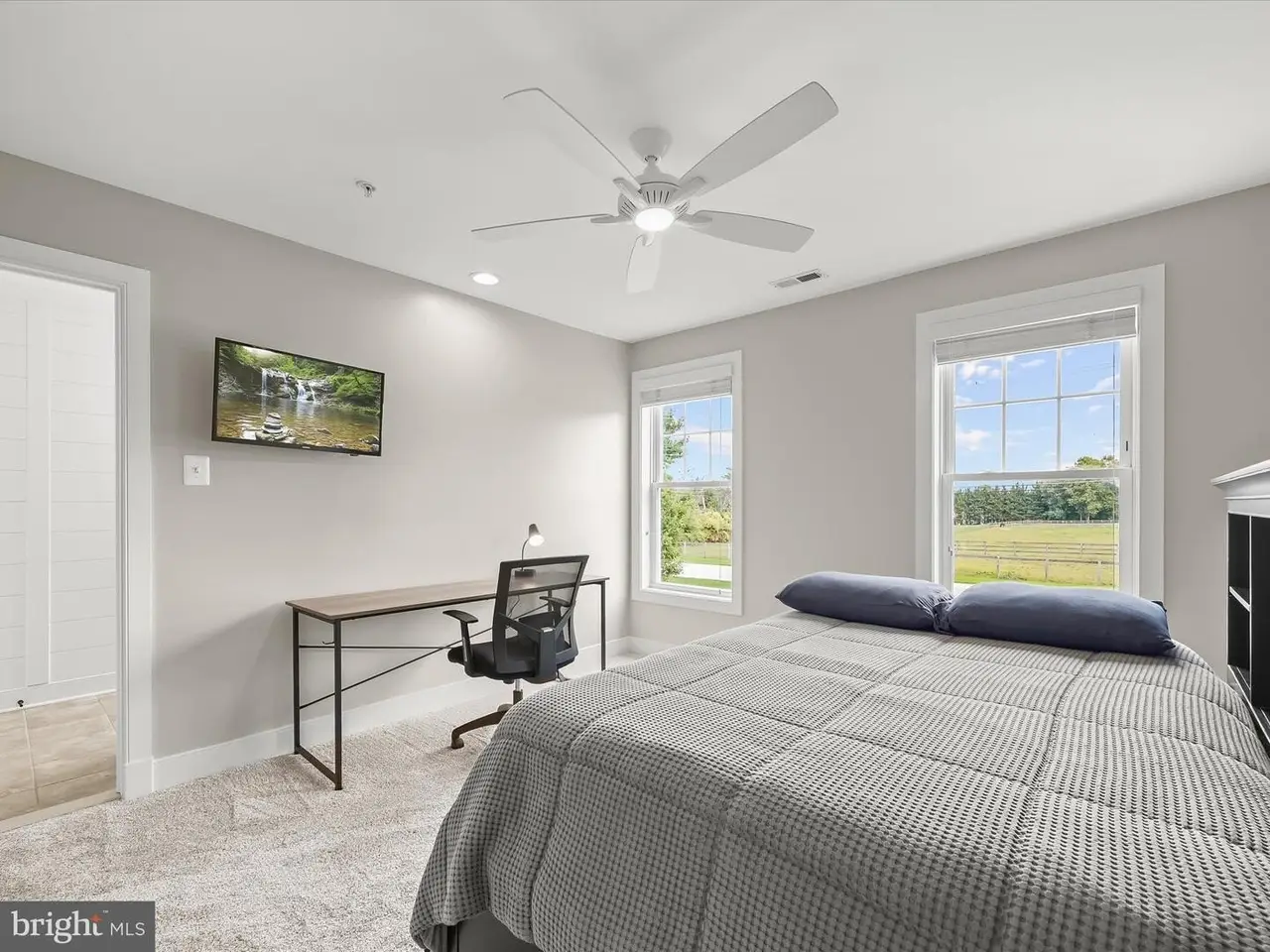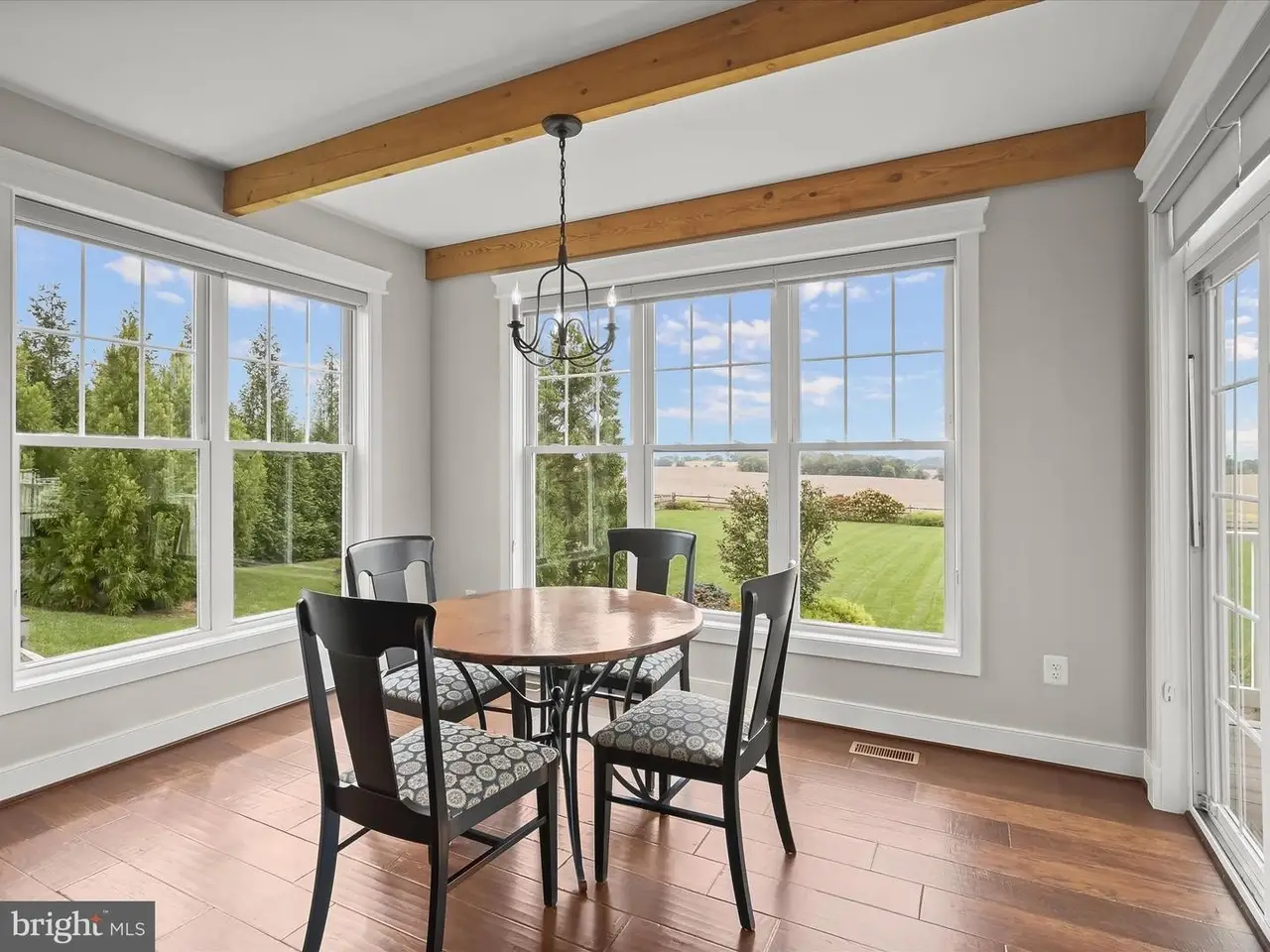 Welcome to this elegant custom-built Colonial, perfectly nestled in the prestigious Spring Hollow community of Mt. Airy. Designed for luxury living and timeless comfort, this exceptional residence backs to 84 acres of pristine preserved land, offering picture-perfect views of the countryside, while the front of the home overlooks pastoral scenes from a nearby horse farm. Inside, exquisite craftsmanship is on display with hand-scraped wide plank hardwood floors, custom ironwork and banisters, intricate trim and moldings, and thoughtful architectural details throughout. The gracious foyer is flanked by a private office with French doors and scenic views, as well as a formal dining room adorned with detailed millwork and stately columns. At the heart of the home, the chef's eat-in kitchen is a showstopper, featuring exposed wood beams, sleek appliances, granite countertops, decorative backsplash, and a center island with a maple wood breakfast bar. A gas stove with double convection ovens makes entertaining a delight, while the breakfast room provides breathtaking panoramic views of the countryside and access to the expansive deck. The family room is equally impressive, showcasing coffered ceilings, a pellet stove, and views of the beautifully landscaped backyard. A powder room and an arrival center with garage access complete the main level. Upstairs, the luxurious primary suite offers stunning views, two walk-in closets, and a spa-inspired en-suite bath with an expansive walk-in shower, dual vanities, and a private water closet. Three additional bedrooms one with its own en-suite bath along with a full hall bath and a conveniently located laundry room complete the upper level. The lower level expands the living space with a spacious game room with brand-new plush carpeting, an exercise room with rubber tile flooring, a workshop, a full bath, and abundant storage. Set on a beautifully landscaped 1-acre lot, the property's outdoor spaces are equally impressive, with a welcoming covered front porch, expansive deck, custom patio with firepit, and a fenced yard for outdoor enjoyment. An attached three-car garage and extended driveway add convenience to this exquisite offering. Combining sophistication, craftsmanship, and serene natural beauty, this remarkable home is the ultimate retreat for luxury living.