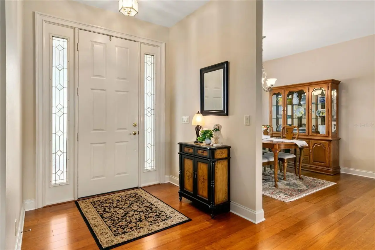 Peaceful Lakefront Living on nearly 2.5 Acres in sought after Mount Dora. You will love to have your own slice of lakefront paradise in beautiful Mount Dora. This one-owner, custom-built home offers over 2,600 sq. ft. of inviting living space surrounded by nearly 2.5 acres of natural beauty, complete with private lake frontage and canal access to the Harris Chain of Lakes. With the trimming of a few trees and addition of a dock, you will be able to fully enjoy this waterfront. Tucked away at the end of a quiet dead-end road, you'll enjoy rare privacy just minutes from the charm and activity of historic downtown Mount Dora.Step inside and feel the warmth of this thoughtfully designed home, featuring a comfortable split floor plan with 3 bedrooms, 2.5 baths, formal living and dining rooms, and a cozy office or den. Gorgeous new bamboo hardwood floors flow throughout, tying every space together with an easy, natural elegance.The formal living room is perfect for entertaining-spacious enough for a full-size pool table (included with the home) and gathering with friends. The family room, nestled near the kitchen, is a welcoming retreat with a beautiful fireplace that invites you to slow down and relax.Enjoy your morning coffee or unwind in the evening on the large screened porch overlooking the gently sloping backyard and peaceful lake views-a place where time seems to stand still.With no HOA and county-only taxes, this property offers the freedom to truly enjoy waterfront living without added expense. Surrounded by other beautiful custom homes, this quiet neighborhood provides the perfect balance of privacy, community, and convenience.Opportunities like this don't come often-a lakefront home with space, serenity, and direct access to the Harris Chain of Lakes, all within minutes of downtown Mount Dora. Come experience the lifestyle you've been dreaming of.