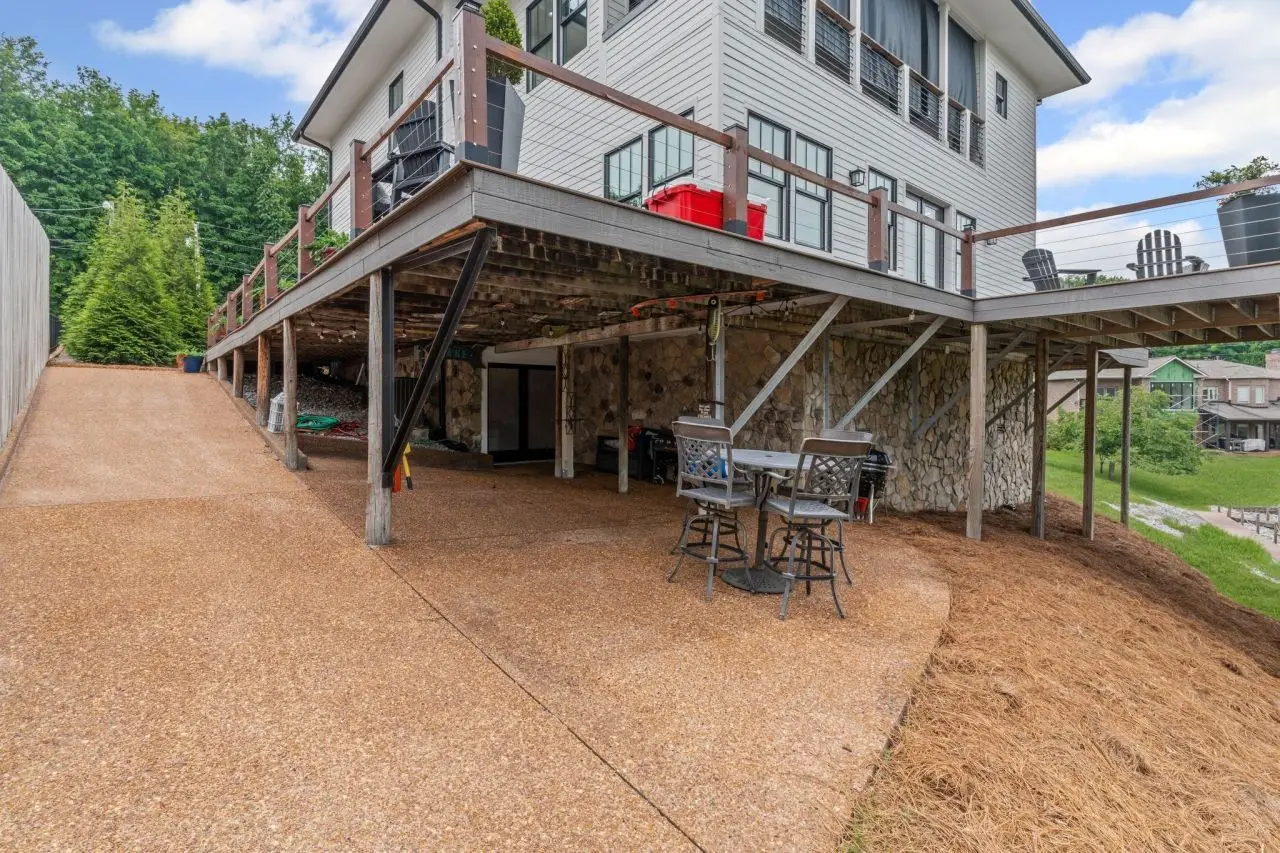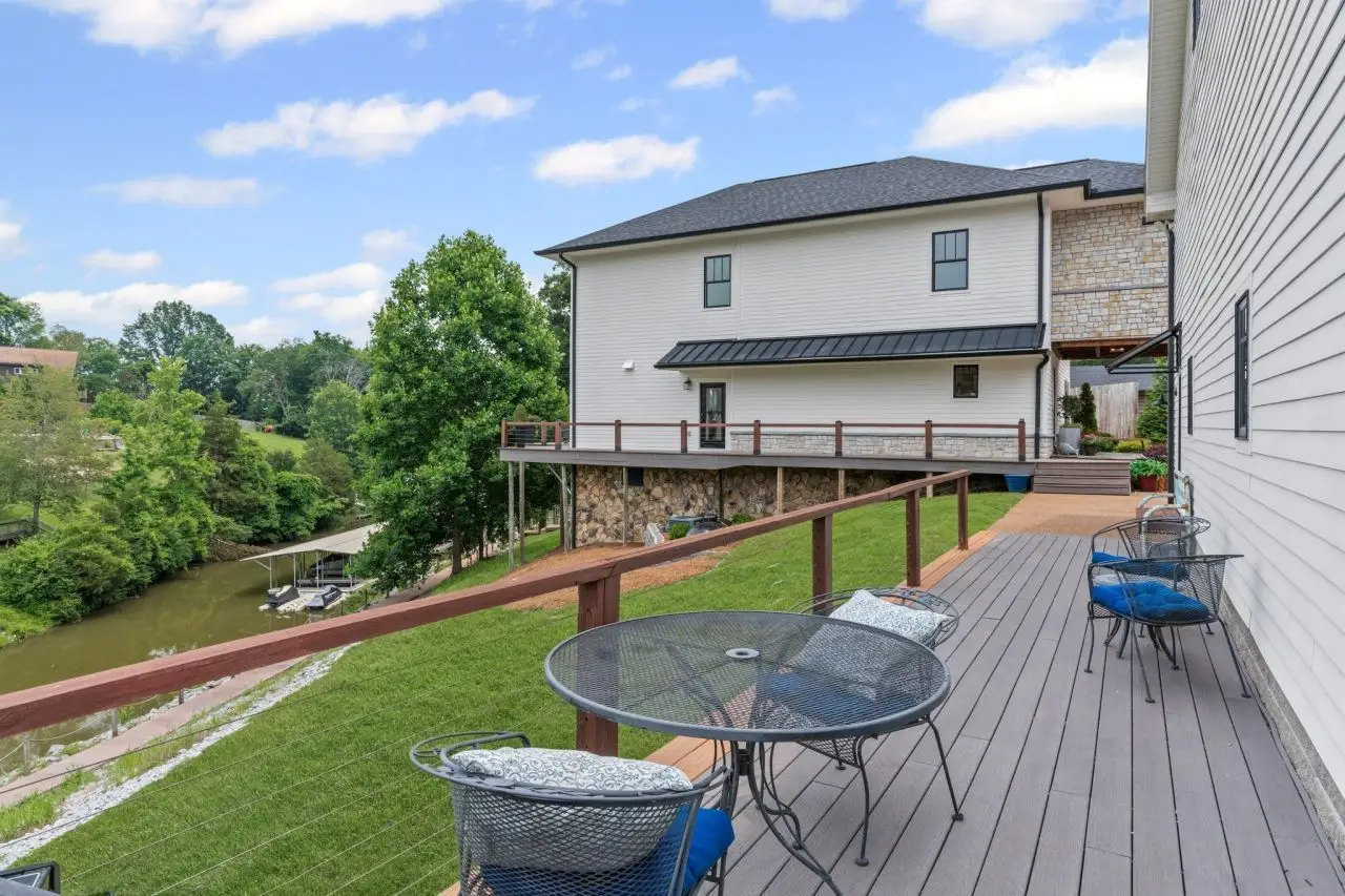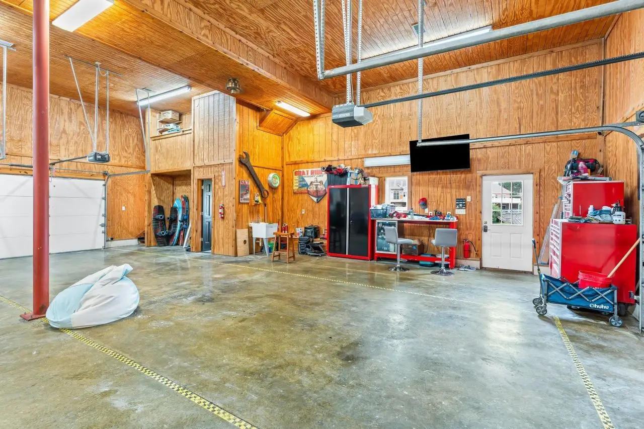 Motivated Seller l Lake Life Just Got Better Welcome to your dream lake retreat! This stunning, fully remodeled lakefront home is the perfect blend of luxury, comfort, and lifestyle. Nestled in a peaceful cove, enjoy breathtaking water views from the expansive wrap-around deck-ideal for morning coffee, evening sunsets, or entertaining under the stars. A private staircase leads you down to the scenic community boardwalk, which winds along the shoreline and connects you to two deeded boat slips w/ power-just bring your water toys!The showstopper? A massive detached 50' x 40', 8-car garage, fully insulated with central HVAC, perfect for storing boats, RVs, cars, or converting into the ultimate workshop or hobby space with 1/2 bath.. Above the garage sits a fabulous 2-bedroom apartment (approx. 1,400 sq ft) with its own full kitchen and bath-ideal for guests, extended family, or rental income.Inside the main home, every inch has been thoughtfully reimagined from the studs out. Gleaming hardwood and tile flooring throughout, rich trim work, and an exquisite owner's suite featuring a spa-like bathroom and a showstopping dressing room with a custom-designed closet.This is lake living at its finest-a rare opportunity to own a one-of-a-kind property that truly has it all.