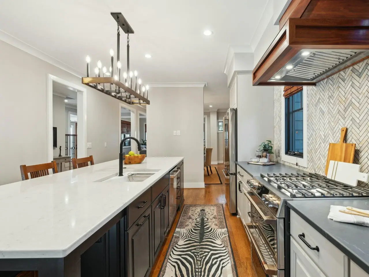 Gourmet kitchen with Diamond brand cabinetry and quartz countertops