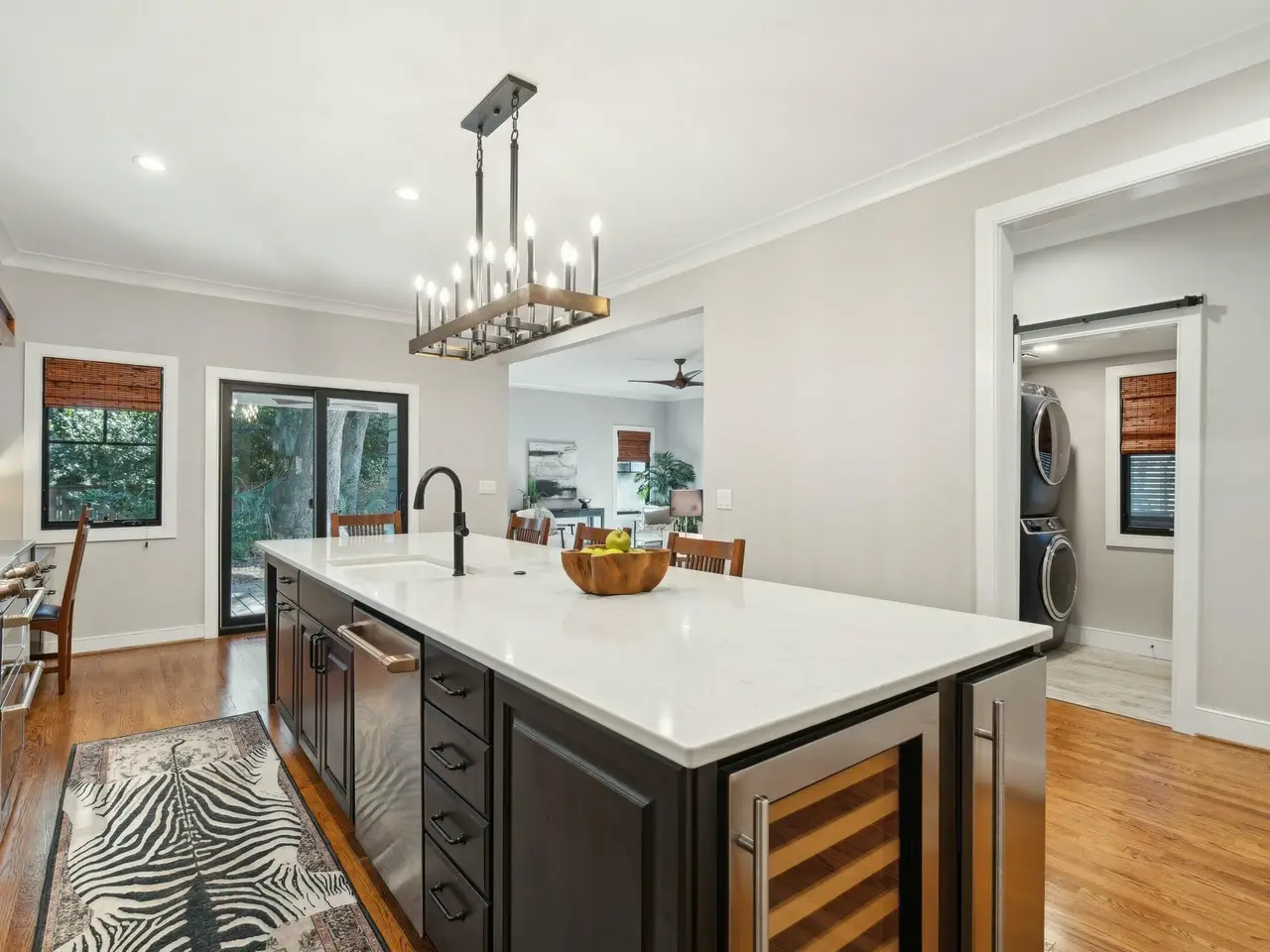 Architecturally designed and renovated home by Architect, Stephen A. Russell. Built by Avery Garrison, Caravel Contracting. This home is truly the hidden gem of Wharf Indigo Place. The Craftsman cottage design elements of styling and details belie the expansive sense of interior spaces. Judicious wall sizes and placements define various rooms yet promote a spacious feel from all interior areas. Covered front entry with arch top front door to foyer, coat closet and powder room. Family room with custom designed Sapele wood fireplace mantel with exquisite ceramic tile surround and custom Sapele cooktop exhaust hood enclosure with gas logs, dining room, gourmet kitchen with all new Diamond brand cabinetry, quartz countertops and GE Cafe appliances, including new gas cooktop, wine cooler andice machine, counter backsplashes are delicate ceramic tile in a herringbone pattern, Butler's pantry complete with refrigerator, base cabinets with quartz countertop, glass door wall cabinets and microwave. Living room opens to the outside deck with beautifully landscaped yard and privacy fencing, and side porch with custom wooden privacy shutters. Three spacious bedrooms and two bathrooms upstairs. Separate staircase to access private fourth bedroom/guest room with full bathroom. Upstairs primary bathroom has soaking tub, separate shower, and double vanities with quartz countertops. Additional bathroom has soaking tub and two separate sinks with quartz countertops. Both staircases are custom designed, oiled Sapele wood with decorative metal balusters. All new architectural fiberglass shingle roofing, new gutters, new HVAC and new spilt system in guest suite, all new insulated windows and sliding glass doors by Jeld-Wen, all new plumbing pipes, Rinnai tankless water heater. 2-car garage with guest parking. Please see attached Additional Features for specifications. Please see Agent's notes regarding information on membership for Creekside Tennis and Swim Club. Please park in driveway not on cul de sac.