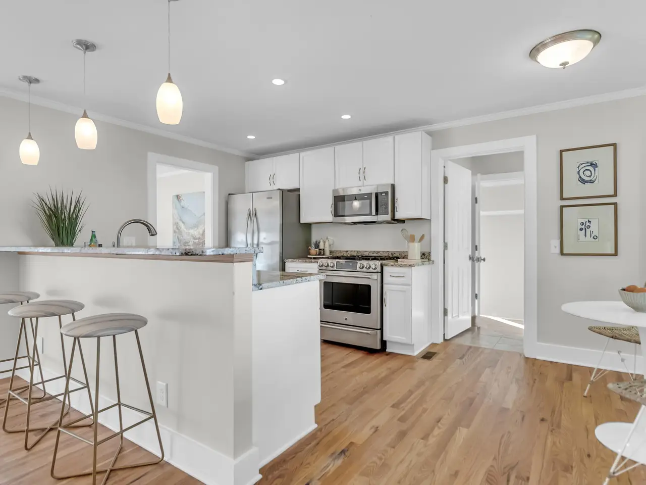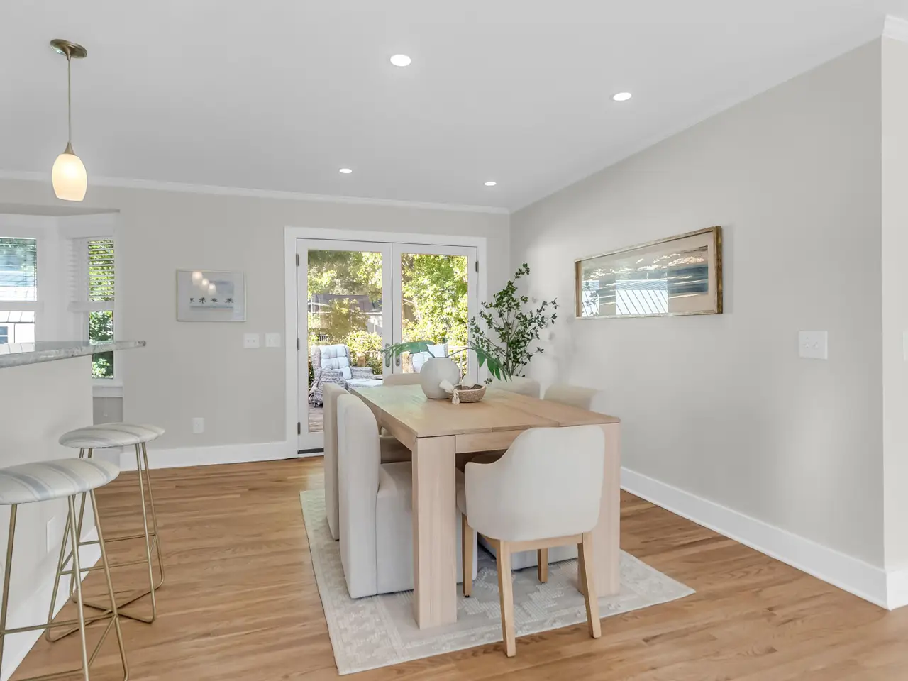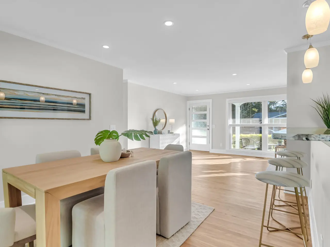 Welcome to this classic Brick Ranch with curb appeal and located in the highly sought-after area of South Mt. Pleasant, SC-just a short drive to Sullivan's Island. This home offers a blend of traditional character with modern touches and an unbeatable location. The welcoming front porch invites you into the home! As you open the front door, you enter the living room/dining room combo with views out to the deck and backyard- perfect for entertaining or enjoying morning coffee! The open-concept kitchen offers functionality and style, connecting directly to a versatile flex space ideal for a home office, playroom, workout area, craft room, or a den. The kitchen has granite countertops, GE Cafe gas range and stainless steel appliances with white cabinets.The primary bedroom has its own full bath and the other 2 bedrooms share the hall bathroom. Features hardwoods in kitchen, living/dining room, hallway & bedrooms. Wonderful shed in the backyard as well as irrigation from well water! Additionally, there is great attic access storage off the laundry room- extra storage many brick ranches do not offer! This home is just a short golf cart or bike ride to the restaurants and shops along Coleman Boulevard. You'll love being near the Pitt Street shops and the scenic Pitt Street Bridge, with the convenience of Charleston International Airport only 15-20 minutes away.