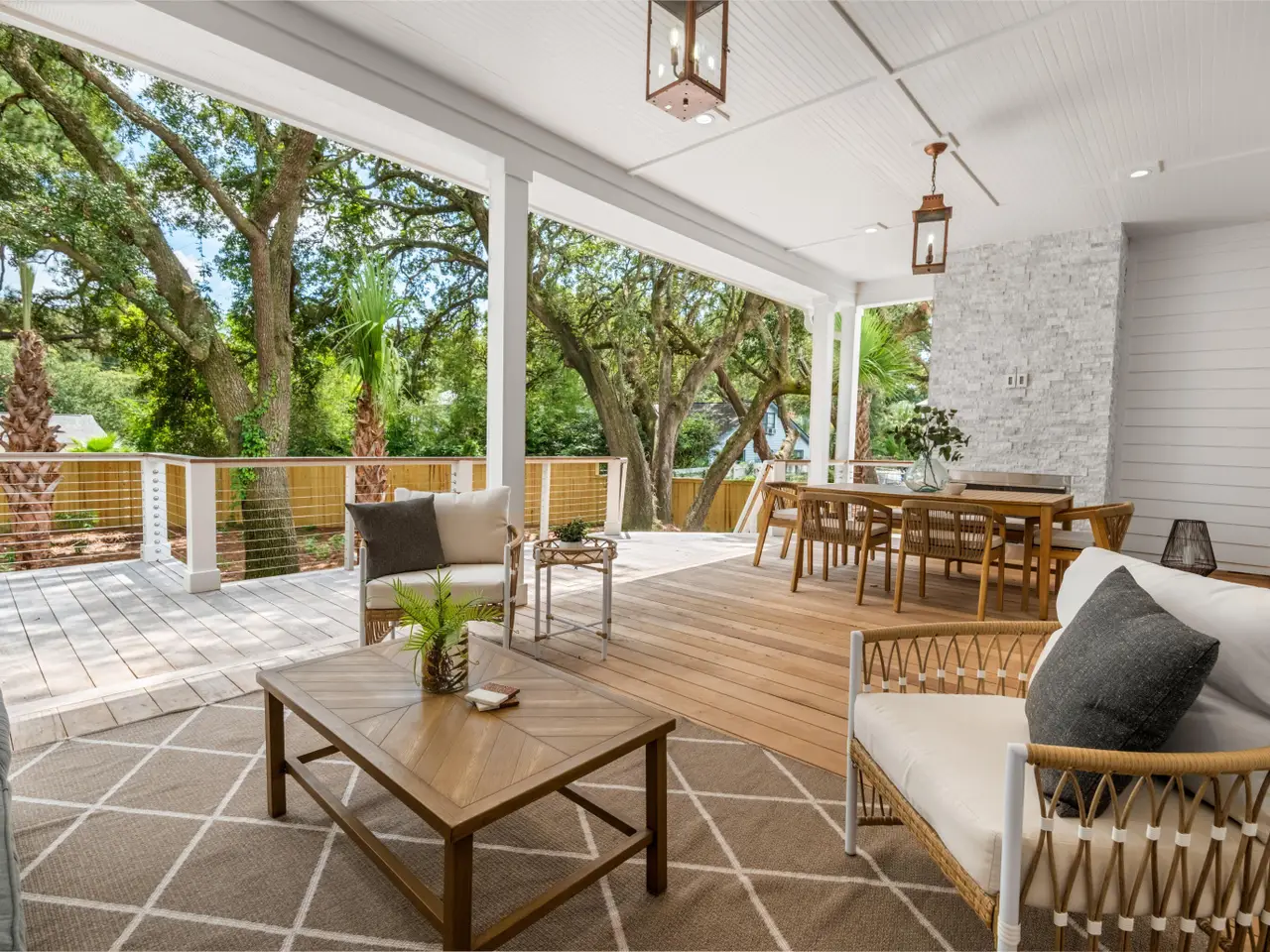 Southern charm exudes from this classic lowcountry home which envelopes you with warmth upon entry. Steps away from shopping and dining in the quaint Old Village area. Only a short 5 minute drive to Sullivans Island beach. Once inside, you will notice the beautiful light that bounces off the huge oak trees scattered over the property. The gourmet kitchen offers a cabinet panel fridge and Thermador appliance package and large island. Just off the kitchen is a beautiful built-in cocktail or coffee bar. The pantry/scullery is quite large and also hosts a brand new Samsung washer and dryer. This area is perfect for hiding all those kitchen appliances and offers tons of storage and prep space for special events/catering. The office is a nice area for working or a quiet place to read a book.The great room offers a fireplace for warm cozy nights and rainy days and is flanked by built-in shelves and cabinets. This home offers dual primary suites so take your pick! The ensuite baths are luxurious and take note of the custom tile showers, luxurious soaking tubs and private Bidet. The enormous second level primary retreat offers multiple options such as, multiple twins, two queens or king and a sitting area. This home features a very large flex room upstairs and a fantastic wet bar with fridge and coffee bar. There are two more bedrooms upstairs with a shared Jack and Jill and is quite spacious with extra built in cabinetry. The yard is shady and has a brand new custom fence. Notice the fire-pit for those chilly nights. This home is equipped with landscape irrigation.The rear deck hosts a fireplace and dining alfresco. This home carries two Rinnai tankless water heaters, and dual thermostats one for each level. Be sure to take a look at the floorplan in the document section to view the layout of this large 4,518 square foot home. The driveway is wide for easy in and out and the front yard offers a special car park with space for 2 additional parking options. This brand new beautiful home is complete and offers immediate occupancy for the new home owner.