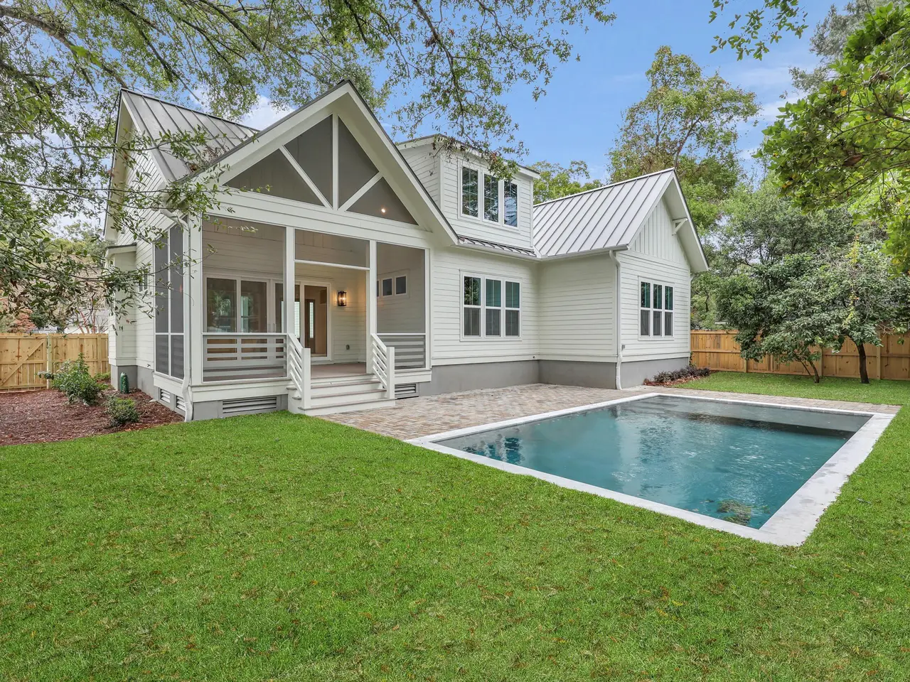 Incredible opportunity to own a brand-new, high-end construction in Mt. Pleasant's most coveted area - Old Mount Pleasant. 1463 Seminole Street, constructed by Michael Rooke of Rooke Custom Homes - one of the top builders in the Charleston area. This 3,500 sq ft home features an open floor plan with main level living, a generous primary suite and a total of 4 beds and 3.5 baths. There is also a generous screened porch that overlooks a custom pool with outdoor patio and a two-car garage. Luxury designer finishes hand selected by top designer Noel Kade with Method of Design, Inc. Engineered wide-plank French white oak throughout, with custom tile in each bathroom making up the flooring selections. The open-concept living room features custom wood beams, a gas fireplace with oak mantle and generous windows. The living area flows seamlessly into the gourmet kitchen featuring an oversized central island with pendant lighting, veined-quartz countertops and waterfall detailing at each end. The island also features generous storage and room for seating to entertain guests. Stainless steel appliances including a Wolf Range and Subzero Refrigerator are beautifully featured on a backdrop of tile to the ceiling with custom floating shelving in oak and sconces to highlight the detail of the hand-made tile. An undermount fire-clay kitchen sink, a drawer microwave and panel-ready dishwasher are conveniently located on the work side of the island. Kohler plumbing fixtures in brushed gold are the finishing touches that make this kitchen a dream! The dining space has luxury lighting and ample perimeter windows with views of the fenced-in yard and the beautiful in-ground pool and patio. A mudroom from the 2-car garage leads directly into a back-of-house utility area that serves as Laundry and Scullery, featuring side-by-side Electrolux washers and dryers with hanging space above, a laundry sink, generous pantry storage and a beverage center. The Powder Room, tucked away yet conveniently located, features a wall-mounted sink with brushed gold plumbing and Kohler plumbing. The primary suite has an amazing, vaulted ceiling with wood detailing, two custom walk-in closets with ample storage, dual vanities, a frameless glass surround, tile shower with custom bench, soaking tub with floor-mounted brushed gold tub filler and a private water closet. The second floor features (2) full baths and (3) additional bedrooms, nicely sized with custom closets and a den/media room/playroom. Other bells and whistles include a 4-zone irrigation system, gutter system, fenced-in backyard, and lush landscaping! Old Mt. Pleasant is minutes from Coleman Boulevard, Shem Creek, Pitt Street Bridge, and the shops and dining on Old Village's charming and popular Pitt Street.