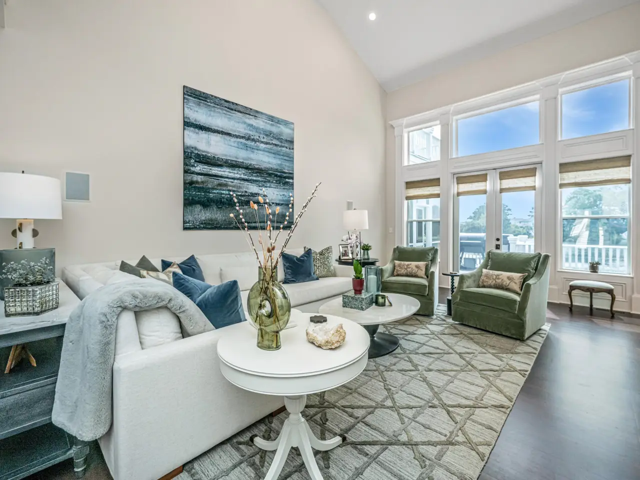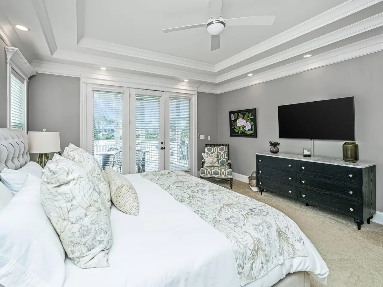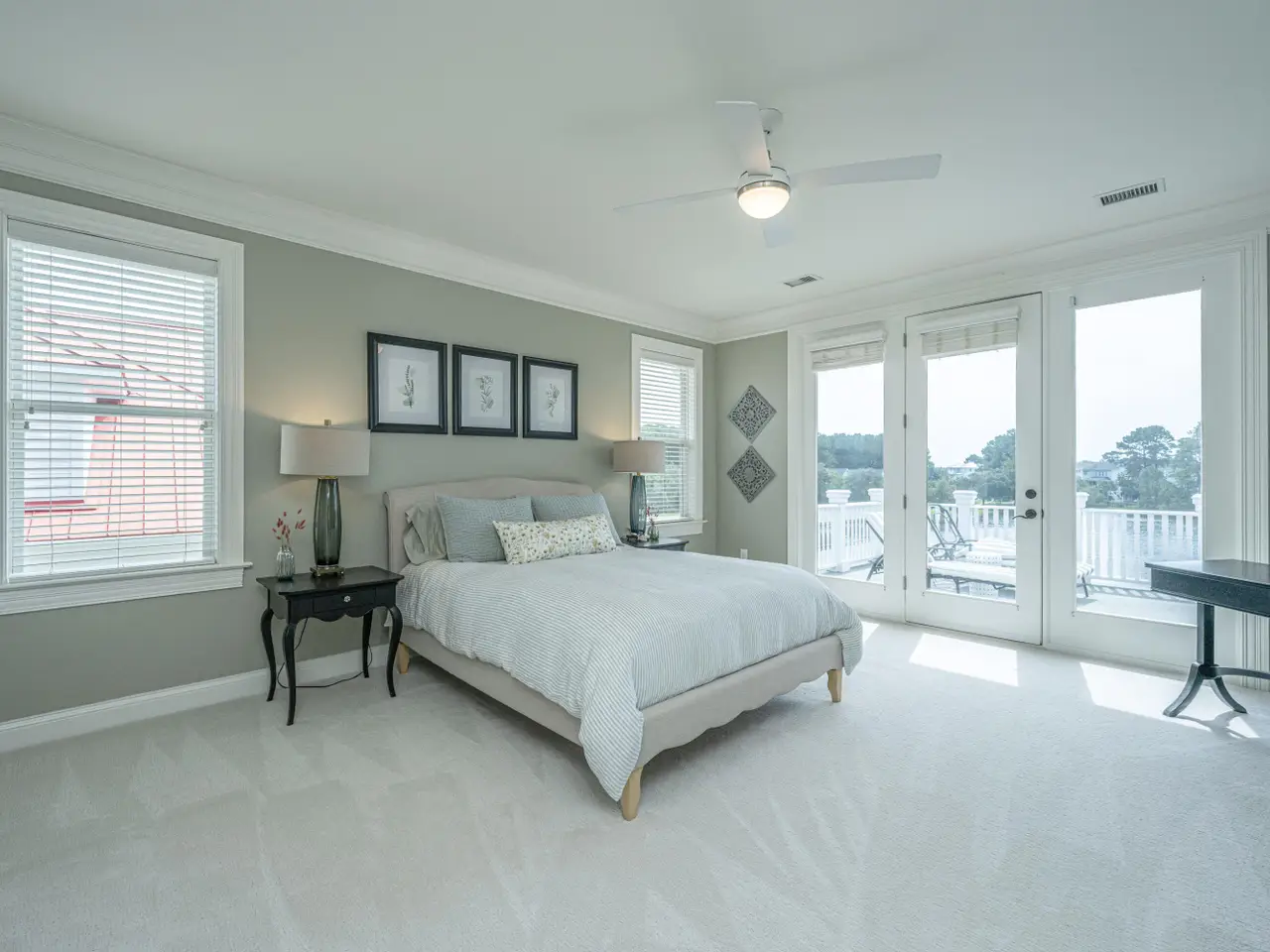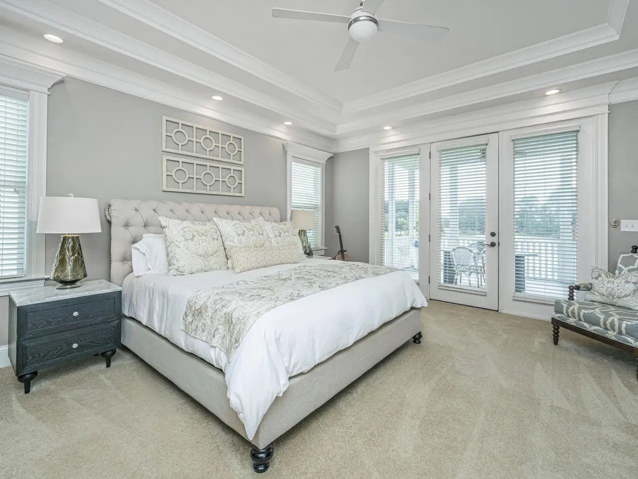 French doors and trimmed windows