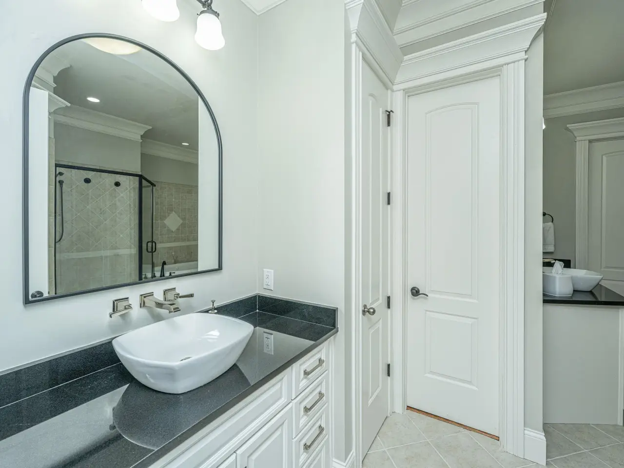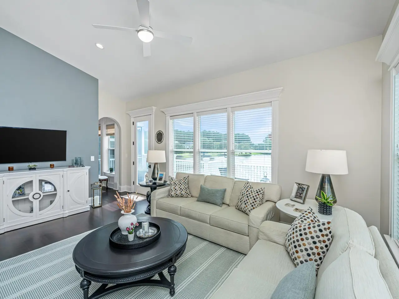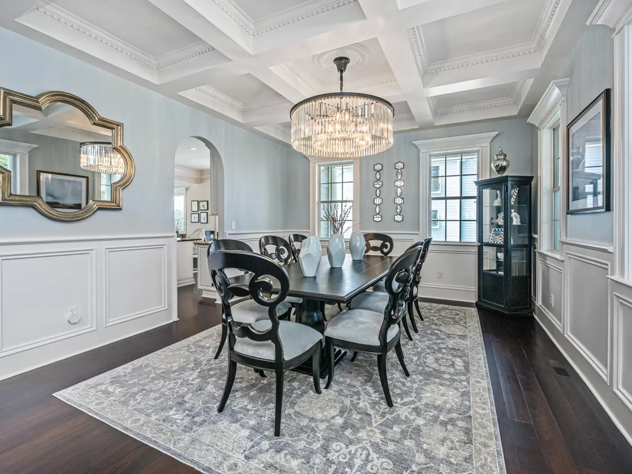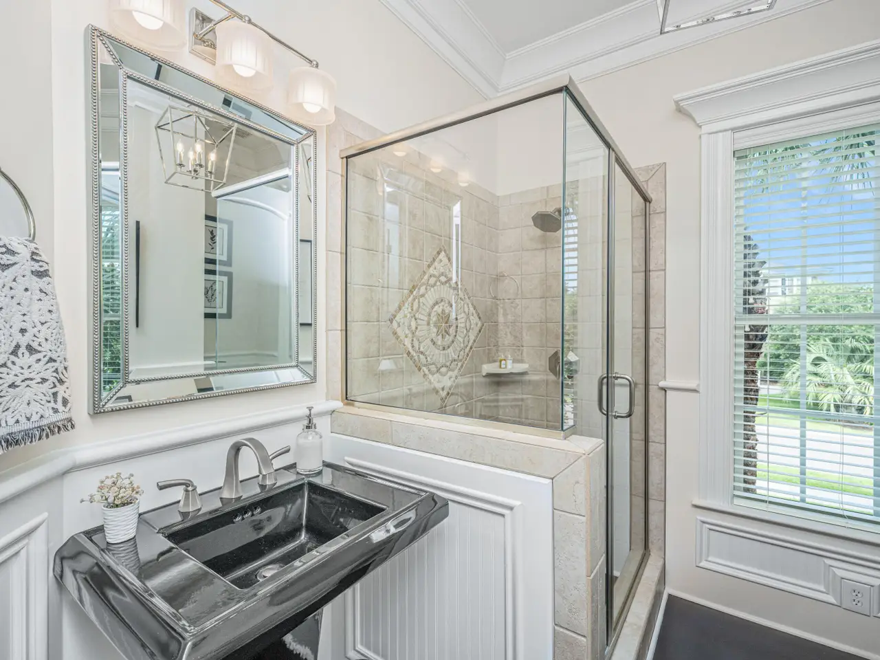 French doors and trimmed windows