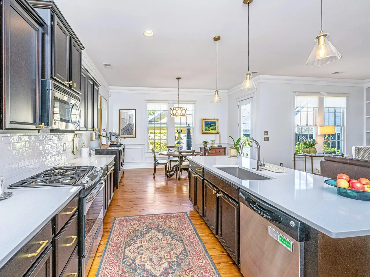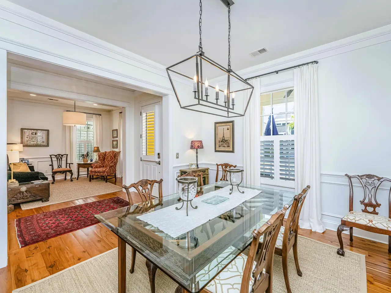 Nestled within the highly sought-after Watermark neighborhood, this home blends urban sophistication with a warm, hometown ambiance, the essence of refined Lowcountry living and southern charm. Its classic modern open-concept floor plan features abundant natural light, high ceilings, and gorgeous natural wood floors. The center hallway is flanked by an open living room and an opposite dining room which leads seamlessly into the gourmet kitchen, complete with a large central island and plenty of cabinetry for storage - perfect for both entertaining and everyday living. The primary suite is a true sanctuary, offering a spacious layout, tray ceilings, and an en-suite bath with a soaking tub, dual vanities, and a large walk-in shower. Three more upstairs bedrooms are generously sized andoffer ample room for family, guests, or home office needs. Step outside and enjoy the serenity of the beautifully landscaped private backyard. Its large patio and lush, colorful landscaping, with a fruiting fig tree, create the perfect spot for outdoor dining, relaxing, or hosting friends. This home is designed with sustainability in mind. The crawl space is encapsulated, which enhances insulation and reduces energy consumption. The home is extremely energy efficient and generates substantial cost savings. The Watermark community is known for its beautiful surroundings and excellent amenities, including a 33-acre lake, lakeside trails, and a resort-style lakefront pool with a sun deck, trellis, changing facilities, and a playground area. This home is in the heart of Mount Pleasant, near some of the East Coast's premier beaches. Shopping venues and culinary treats are nearby. Charleston, with historic sites spanning from pre-Revolutionary to modern times, museums, galleries, vibrant unique boutiques, maritime interests, and an internationally renowned culinary scene, is only a short few miles away. Additionally, the area has first-rate tennis and golf facilities, a national wildlife refuge, national forest trails, and unlimited water activities for outdoor enthusiasts. This property presents a rare opportunity for buyers seeking a harmonious blend of luxury, sustainability, and community in South Carolina's most coveted locale.