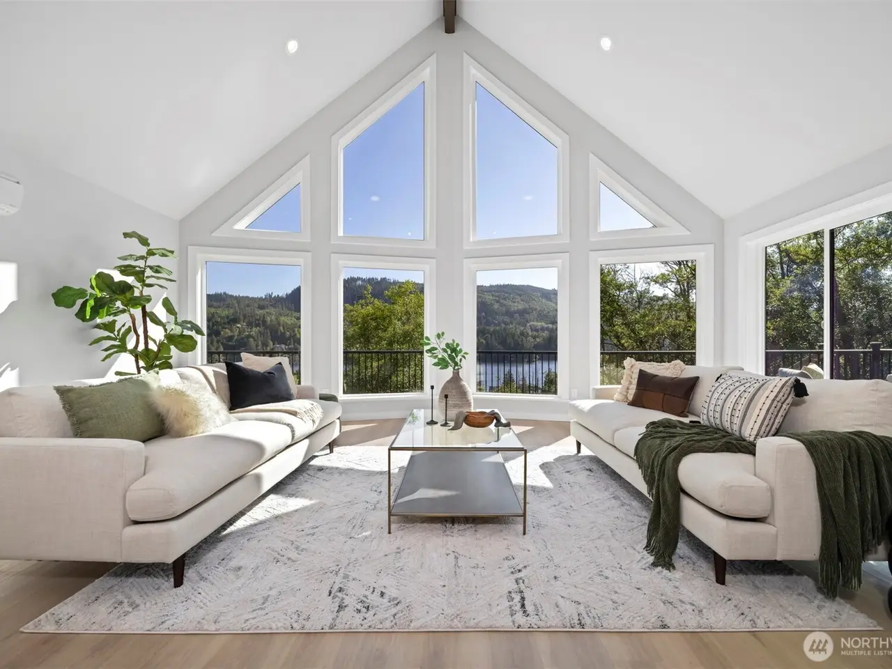Stunning brand-new custom home with nearly 4,200 sq ft, perched above Big Lake with breathtaking views! Quality finishes throughout. Walk in to the expansive living room with soaring vaulted ceilings & huge windows showcasing the views. Impressive kitchen w/ quartz waterfall countertops, walk-in pantry, eating bar + dining area, & high-end appliances. Enjoy outdoor living on the full-length deck overlooking the lake & hillsides. Spacious upstairs loft, perfect for an office or extra living space. Downstairs offers a 2nd kitchen, living room, private suite, additional bedroom + extra hobby room or storage, perfect for guests or multigen living. High-efficiency heating & A/C.
