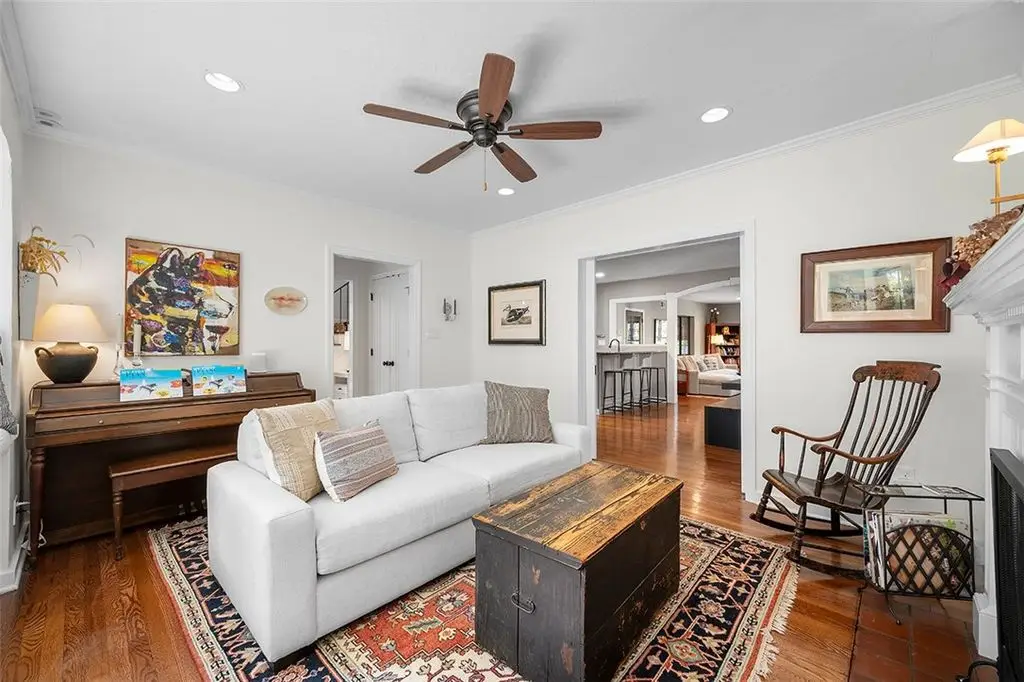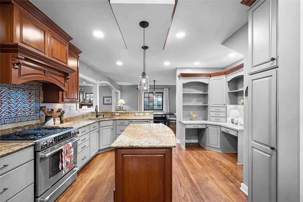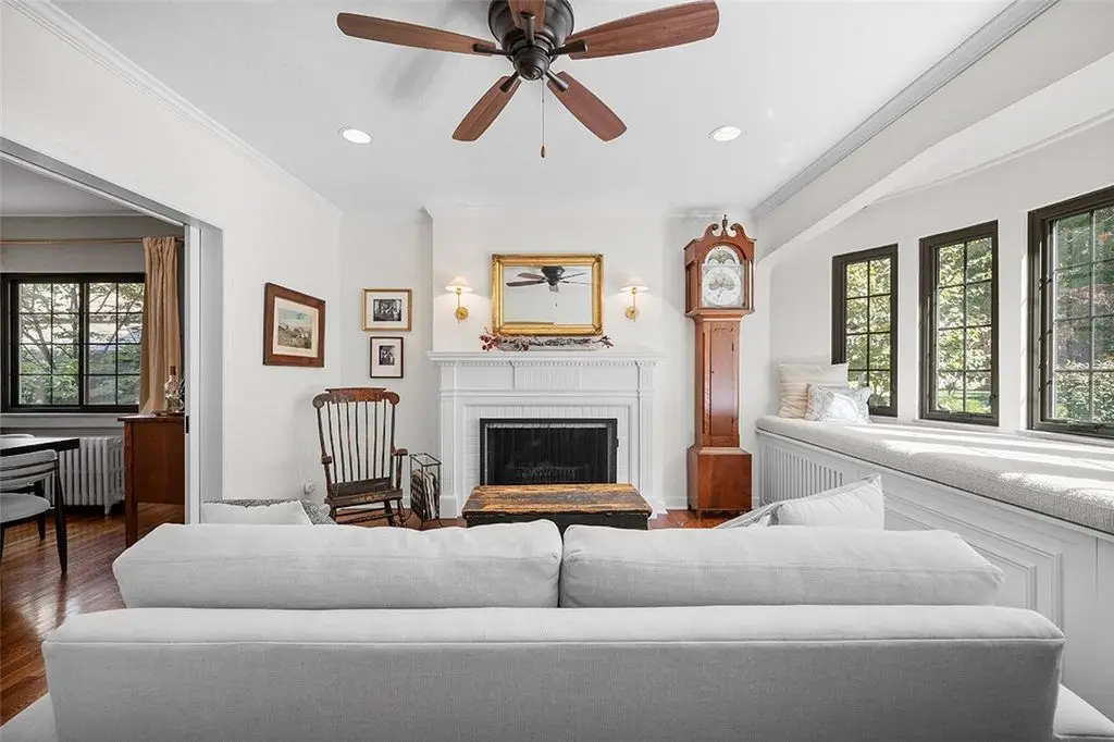 Charming brick Tudor sitting on a picturesque brick street offering 3 finished lvls of living space. Sun-filled rooms & timeless details include a 12' wdw seat tucked in a bowed LR wdw, HW that continue upstairs & wood-burning frpl. Pocket doors from LR lead to open concept DR & kit w/peninsula, isle & quaint corner desk- perfect for coffee or baking station. Sizeable family rm extends off the kit/DR highlighted by a huge triple window looking out to private, flat yard plus French door leading to 23x13 covered patio- ideal for outdoor entertaining. 3 comfortable 2nd lvl bedrms, including a primary ste w/updated en suite, 2 walk-in closets & 16x7 bonus space. Crisp white hall bath & sunny 12x6 den complete 2nd lvl w/landing leading to easily accessible 3rd floor w/bright & roomy 4th bedrm. Convenient powder rms on main & LL. Centrally located near schools, Uptown, shops & dining, this home combines character, comfort & convenience in one of the community's most desirable neighborhoods.