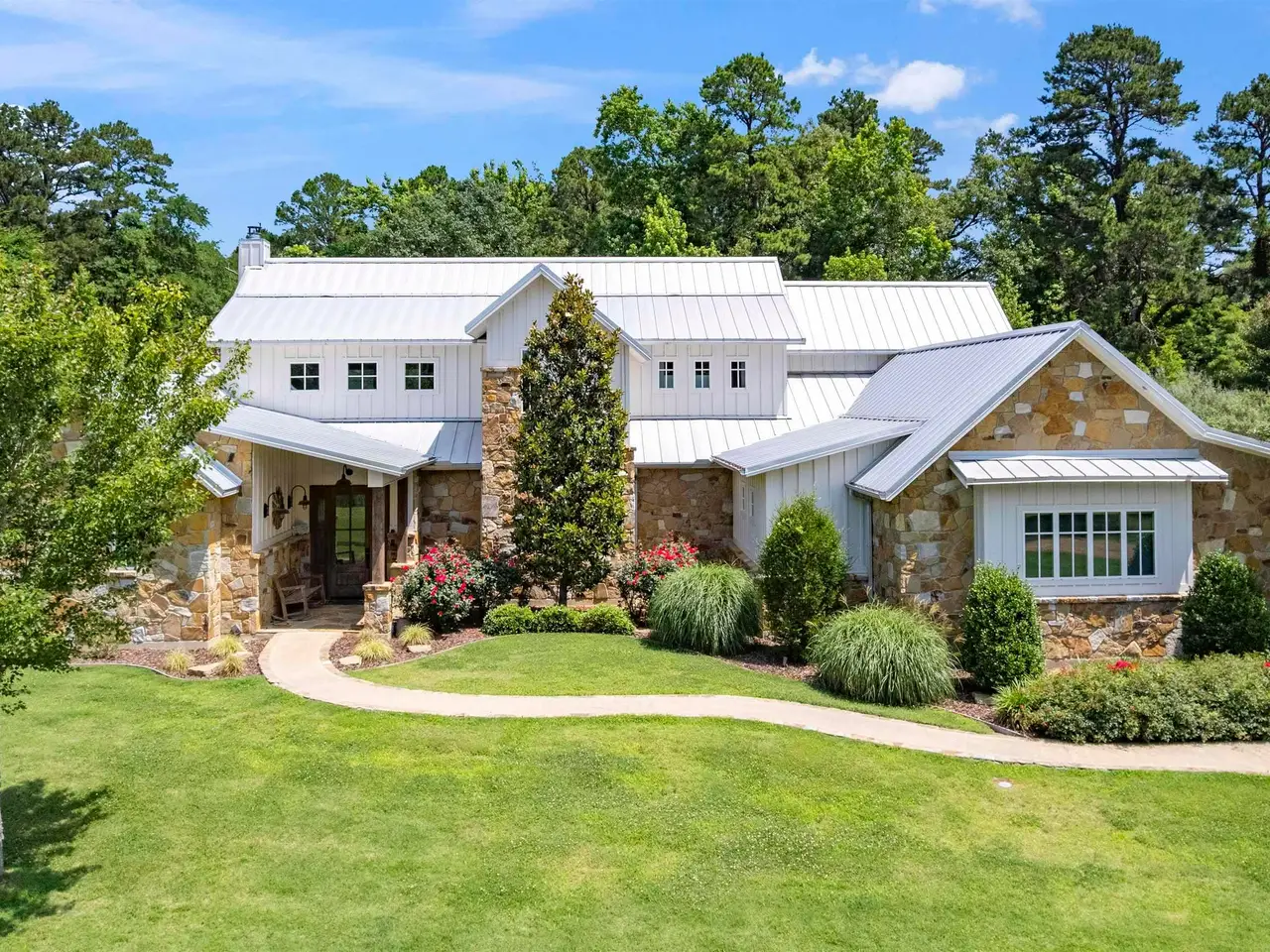 Located midway between Dallas & Texarkana and within minutes of beautiful Lake Cypress Springs and Lake Bob Sandlin, this thoughtfully designed, custom built home is set on 41 mostly wooded acres--tailor made for recreation, hunting or grazing a small herd. A winding drive brings you to the charming façade of this ultimate modern farmhouse. Step inside to a soaring great room crowned by a vaulted ceiling and anchored by a floor to ceiling stone fireplace with a wall of windows overlooking the resort-style pool. The heart of the home is a chef's kitchen outfitted with two sinks, a massive prep island, built-in professional appliances and a walk-in pantry that keeps everything organized for large-scale entertaining. Just beyond the main living area, an expansive covered patio and complete outdoor kitchen extends your living/entertaining space. Indoors, two separate living areas allow everyone to spread out. The game room, with a kitchenette and a half bath, makes movie night and game day effortless and provides easy access to and from the pool. The spacious primary suite is located on the main level and features a sitting area, vaulted ceiling and stone fireplace. The ensuite bath boasts separate vanities, a walk-in shower, soaking tub, water closet and a large walk-in closet, all accented with beautiful tile and fixtures. The lower level is complete with 2 additional guest bedrooms and 2 full bath rooms, a large utility room, mudroom and office. A second suite located on the upper level could easily be converted to a bunk room, perfect for weekend guests or multigenerational living. The three-car garage includes extra room for storage as well as a built in safe room. This property also features a 40 x 60 foot metal building with 4 overhead doors, a full bath and RV electrical and direct sewer hook ups. This property truly has something for everyone!! Call today to schedule your private showing of this amazing home.