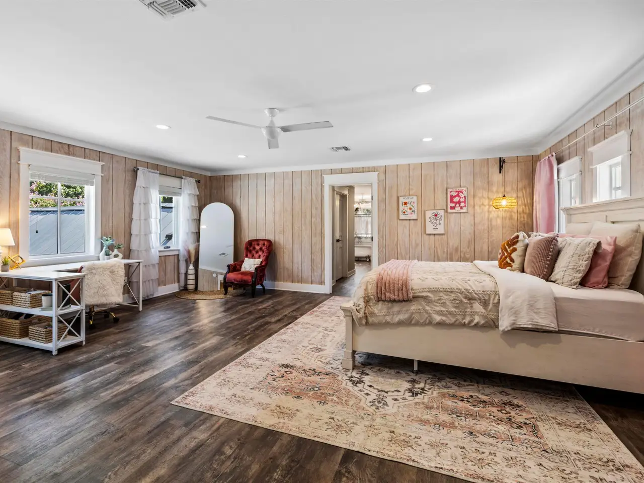 Additional guest bedrooms with stylish fixtures