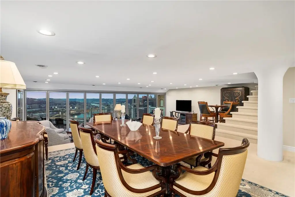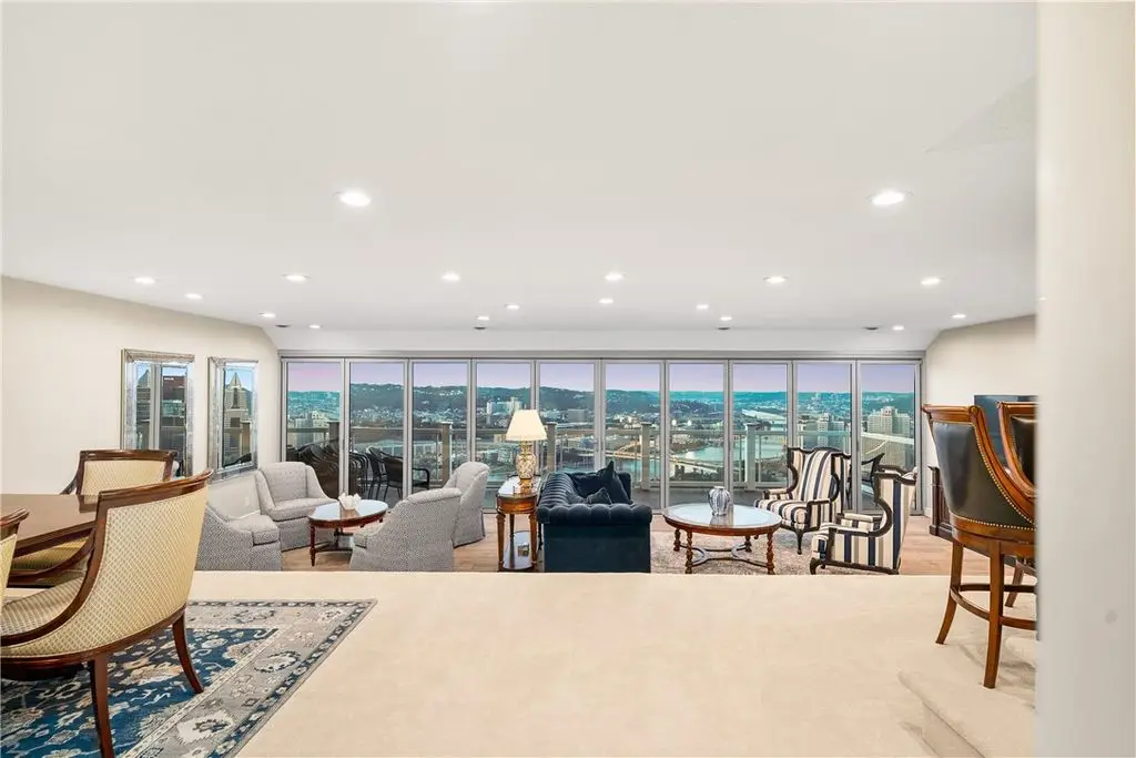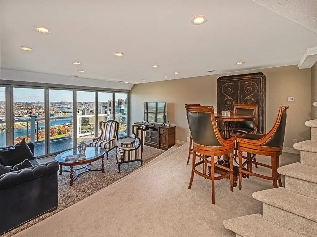 Experience luxury living in this stunning Mt. Washington condominium offering panoramic views of Pittsburgh's skyline, rivers, and stadiums. This spacious home features a sunken living room with floor-to-ceiling windows and balcony access, perfect for soaking in the cityscape. The open dining area flows into a fully equipped, step-saver kitchen. With three generously sized bedrooms - including a captive room ideal for a home office - and a luxurious primary suite with spa-like ensuite and private balcony, comfort meets elegance throughout. Enjoy the convenience of second-level laundry and an oversized car garage. Located just steps from the Incline, restaurants, and entertainment, this home offers a rare blend of peace, style, and city access. Wake up every day to million-dollar views and vacation-like living. Don't miss your chance to own this exceptional property on Grandview Avenue!