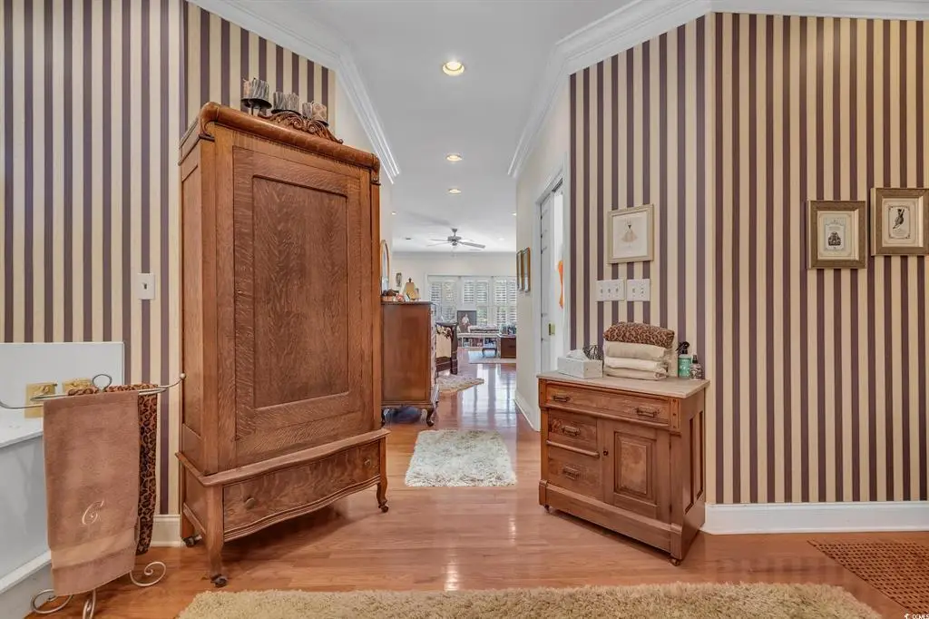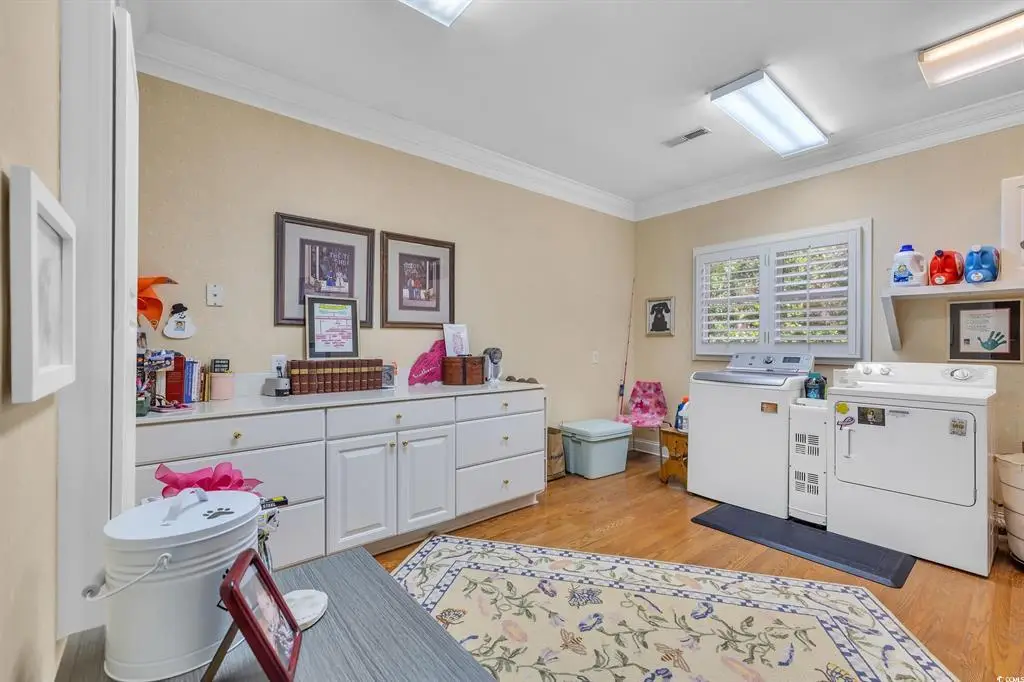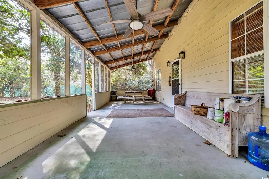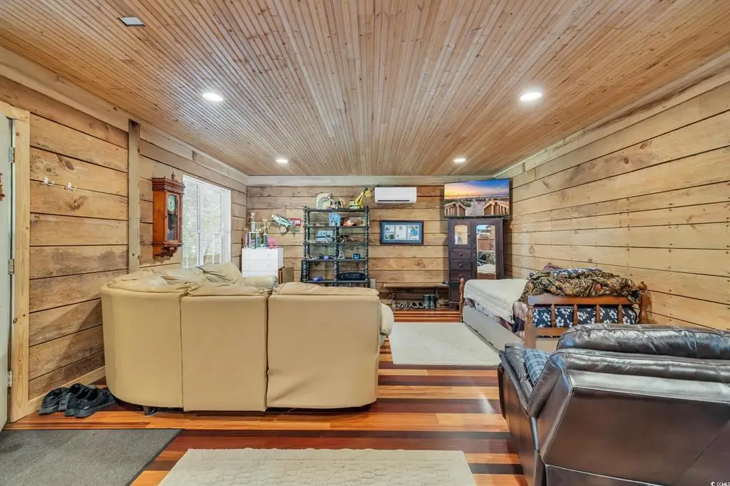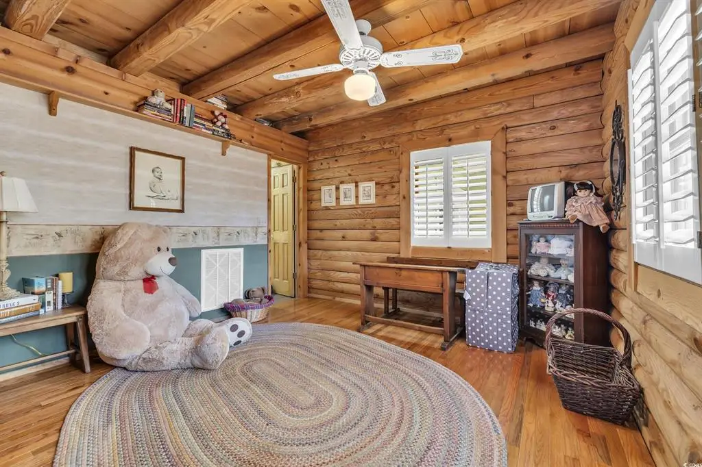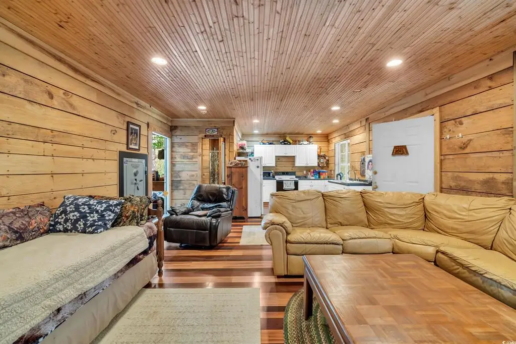 Tucked away in a gated, secluded area, this beautifully maintained 4-bedroom, 4.5-bath log cabin blends Lowcountry charm with modern convenience. Originally built in 1982 and thoughtfully expanded in 2002 using timber from the property, this home sits on a serene one-acre lot surrounded by majestic oaks and mature landscaping. Inside, plantation shutters throughout enhance the home’s rustic elegance. The spacious owner’s suite features a propane fireplace, two walk-in closets, walk-in shower and a luxurious soaking tub. The unique layout offers two separate upstairs areas, one with a bedroom and half bath, and another with a spacious loft, bedroom, and full bath, providing versatile living space. This home boasts two distinct sitting areas, offering both functionality and flexibility. One serves as a cozy retreat, perfect for relaxing by the fire, while the other is ideal for gathering and entertaining. A generous laundry room and ample storage throughout add to the home's convenience. Out back, a detached mother-in-law suite with a full kitchen and bath provides a private space for guests or extended family. The property also features a large built-in wall safe, ensuring extra security and peace of mind. The oversized two-bay garage is perfect for RV or boat storage, a workshop, or additional storage needs. Ideally located just minutes from Wacca Wache Marina, the Marsh Walk, Huntington Beach State Park, and Brookgreen Gardens, this one-of-a-kind log cabin offers both privacy and easy access to the best of Murrells Inlet.