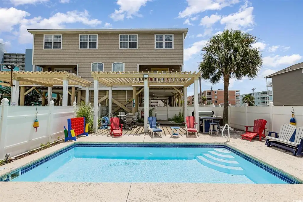 Looking for the perfect beach vacation home or investment property? Look no further! This five-bedroom, five-and-a-half-bathroom home is situated just across the street from the beach and features a private, heated saltwater pool. There are three balconies: two overlook the ocean and one overlooks the backyard pool area with hot tub. This home is great for large families as every bedroom has its own private bathroom. There is also a newly installed interior elevator, which makes bringing in groceries, beach gear, etc. a breeze! This home is the perfect place to make memories at the beach! Go ahead and schedule your showing today! All information is deemed reliable, but verification is the responsibility of the buyer.
