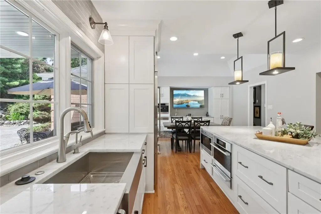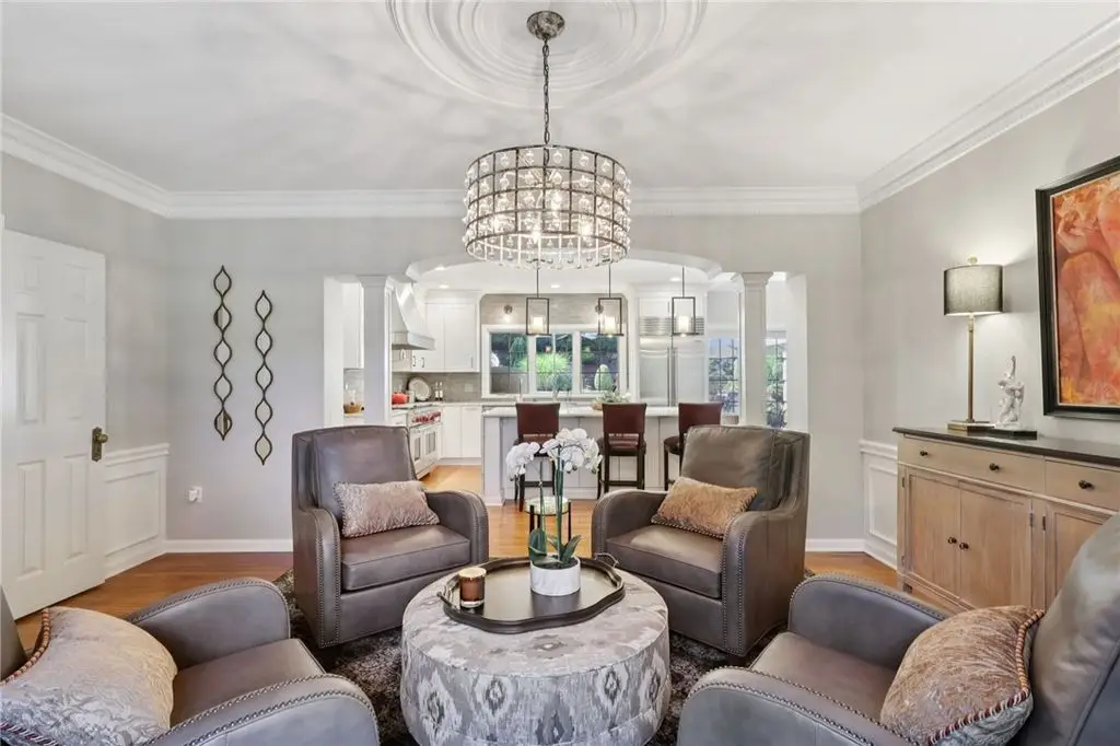 Luxury Living! Spectacular Estate on private road w/1.5acre professionally landscaped grounds. Grand foyer w/leaded glass door, grand staircase,& chandelier. Formal living & dining rooms w/exquisite details fireplace, bay window, hardwood flooring,& built-ins. Executive office w/wood-paneled walls, fireplace, custom cabinetry,& wet bar. Chef's dream kitchen w/Wolfe & Viking appliances, large island w/seating, Miele coffee bar, sliding glass doors to stunning outdoor retreat. Entertain in style w/rear patio w/full outdoor kitchen, woodfired pizza oven, inground pool, multiple seating areas,& tranquil pond w/waterfall. Luxurious owner's suite w/French doors, spa-bath w/soaking tub overlooking pool, oversized shower w/jets, double vanities,& walk-in closet. Updated bath, laundry, & balcony w/lounging area & spiral staircase to pool. Lower level is entertainer's dream w/wine room, full 2nd kitchen, wet bar, built-in seating, game area, media lounge, gym/5th bedroom, & full bath. WOW!