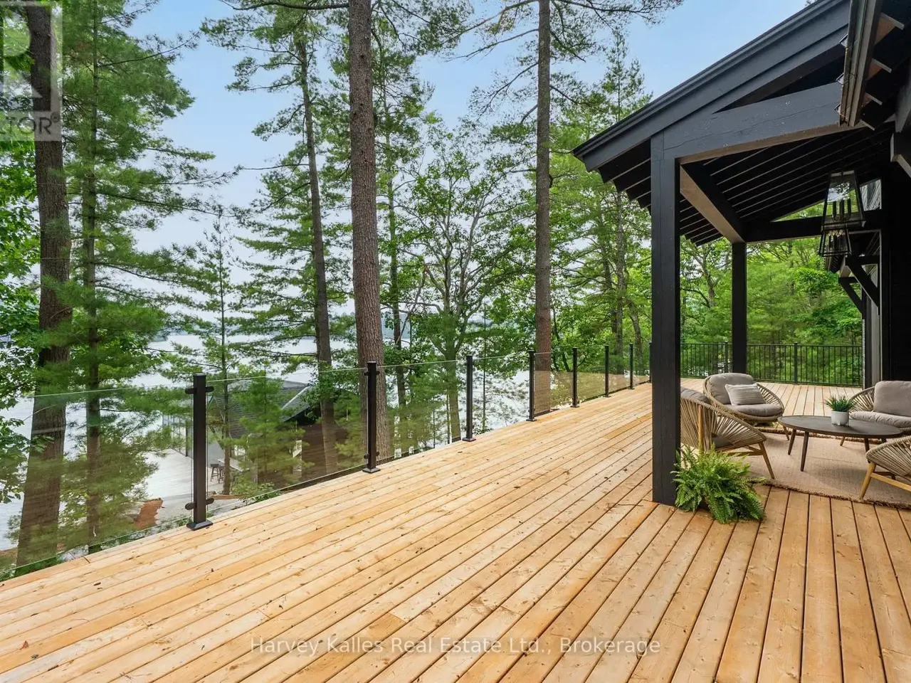 The epitome of luxury living on the pristine shores of Lake Muskoka. Nestled within one of the most coveted locations in Muskoka, this property offers perfect South Western exposure for all-day sun, breathtaking sunsets, sought-after topography and epic deep waters off the end of the dock. Welcome yourself into this meticulously newly built retreat beautifully crafted by Kelly Project Management. Entering, you are greeted by a custom kitchen designed with the utmost taste, featuring high-end cabinetry and modern appliances. The heart of the cottage boasts a cozy room surrounding a masonry fireplace, providing the perfect setting to enjoy your early morning coffee or late-night cocktails from the custom-built bar. The high cathedral ceilings in the living room and kitchen create an open and airy ambiance, complemented by epic windows that flood the space with natural light. Dine beautifully with friends indoors or on the expansive deck offering the perfect setting with breathtaking lake views. The stunning main floor primary bedroom has a custom walk-in closet space and ensuite with a gorgeous soaker tub creating a spa-like retreat. This showpiece is equipped with 3 more beautifully appointed bedrooms, office, and 4 additional baths throughout. The lower level offers living space, storage and laundry facilities, creating the perfect blend of functionality and entertainment. Outside, follow the granite stone pathway adorned with mature Muskoka pines and lush foliage to the flawlessly designed 2-slip boathouse on 195 ft of shoreline. The stunning BH is equipped with a spacious dock area creating the perfect setting for enjoying the serene waterfront lifestyle. Just minutes away, you'll find prestigious golf courses, high-end restaurants, and endless shopping opportunities. Make your Muskoka cottage experience truly perfect with this turnkey, fully furnished offering. Don't miss out on this rare opportunity to own a piece of Muskoka paradise. (id:16999)
