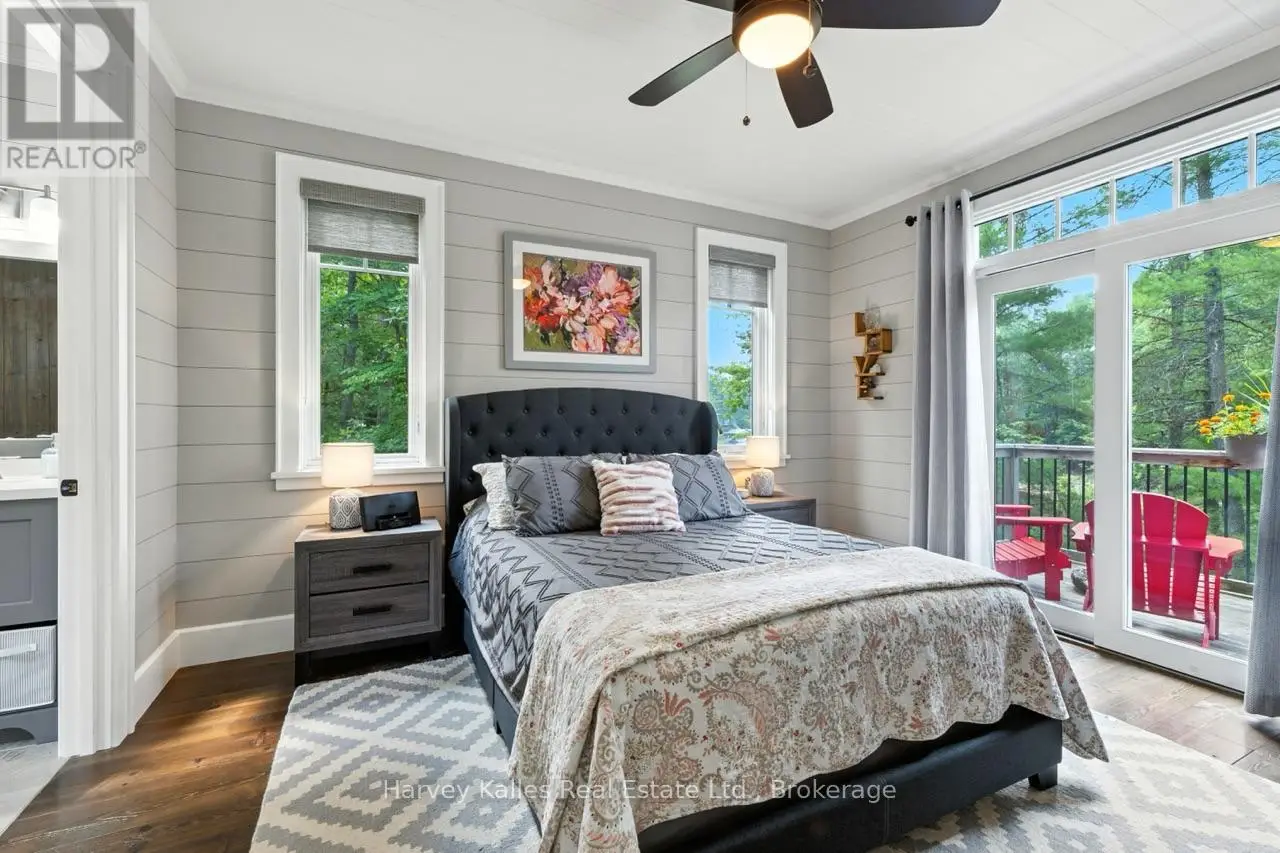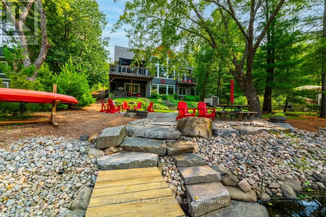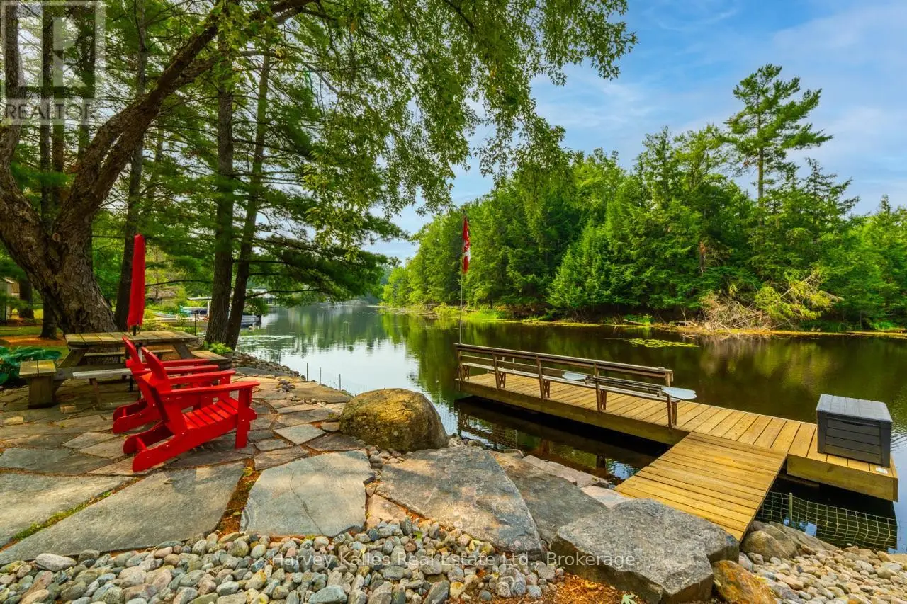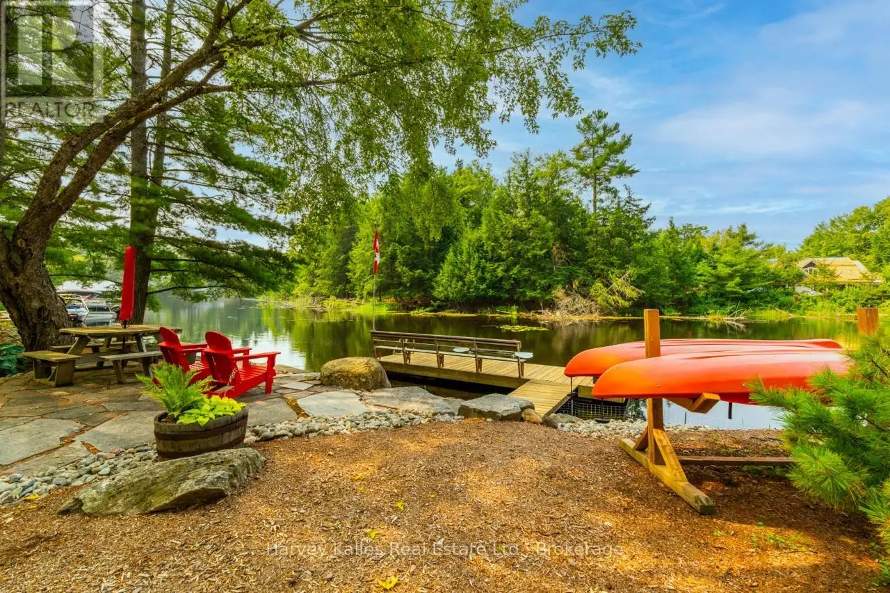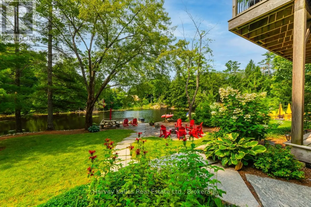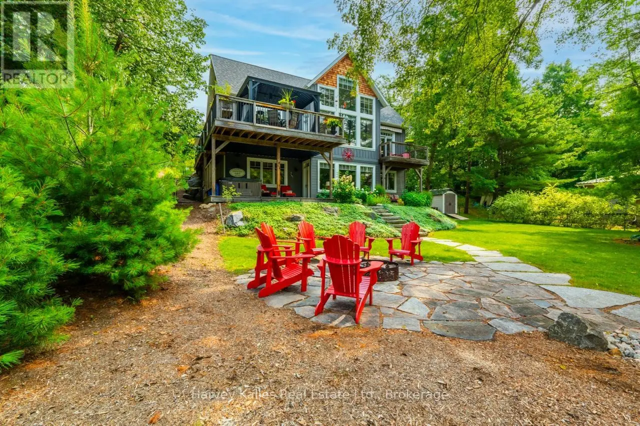 Custom built one owner South West facing Year Round Lake Muskoka beauty ideally located between Beaumaris and Port Carling on 101 Ft. (assessed) of mainland shoreline with year round municipal road access. Gentle topography, towering trees, handsome architecture. A most rare & value-packed, 1st ever offering. Built by Lakeridge Developments in 2017, the 3 bedroom plus a den, plus an office, plus a loft, gorgeous family cottage or year round home, features all the modern comforts, with approx. 2,500 square feet of finished living space, 2 classic Muskoka stone propane-burning fireplaces, random width red pine flooring throughout, and a finished lower level walkout. Cleverly designed, brilliant main floor layout captures glimpses of water views, with south-west oriented principal rooms for loads of natural light. Stunning chef's kitchen with custom cabinetry, centre island w/granite top, opening to the dramatic 1 1/2 storey great room with fireplace, wall of windows, and walkout to a lakeside deck. Dining area, laundry room, powder room, and primary bedroom with its own private deck, 4 pc. ensuite with double sinks, and walk-in closet, are also located on the main floor. Attached garage with inside entry. Large loft with separate sitting room. Finished lower level walkout boasts warm hardwood floors, raised above a heated crawl space, with centrepiece family room with wet bar, another stone fireplace, lakeside bedrooms, 3 pc. bath, plus a den and an office. Gentle level grounds with ample table land, fire pit spot, covered hot tub deck, and dock with deeper and shallower water. All the practical living features and facets have been well thought-out and infused into the design. Complete with full back-up Generac, drilled well, efficient propane furnace, central air, and all the bells. This is a turnkey, virtually new, customized to perfection, lake front hideaway in one of the most desirable locales of Lk. Muskoka. Minutes to shopping, dining, golf, and all the amenit (id:16999)