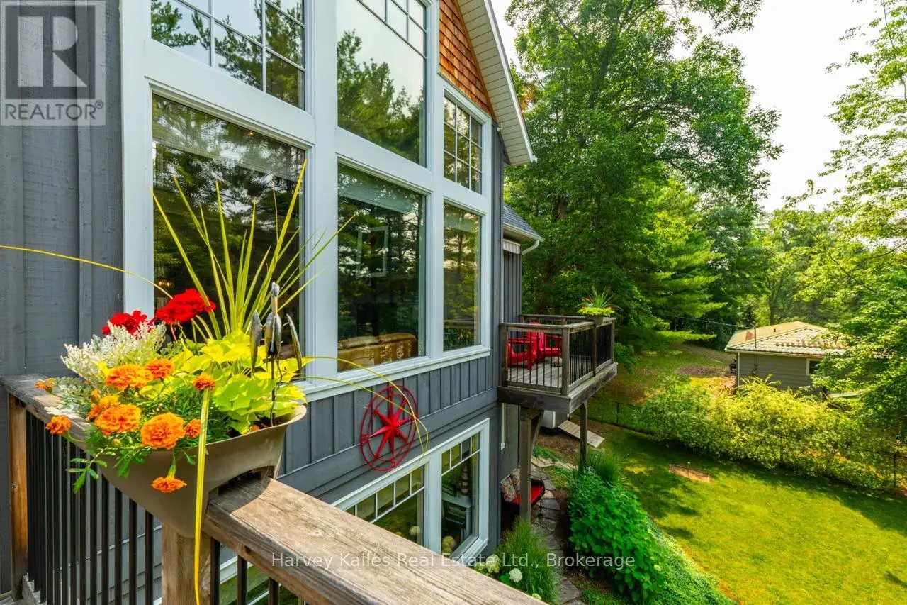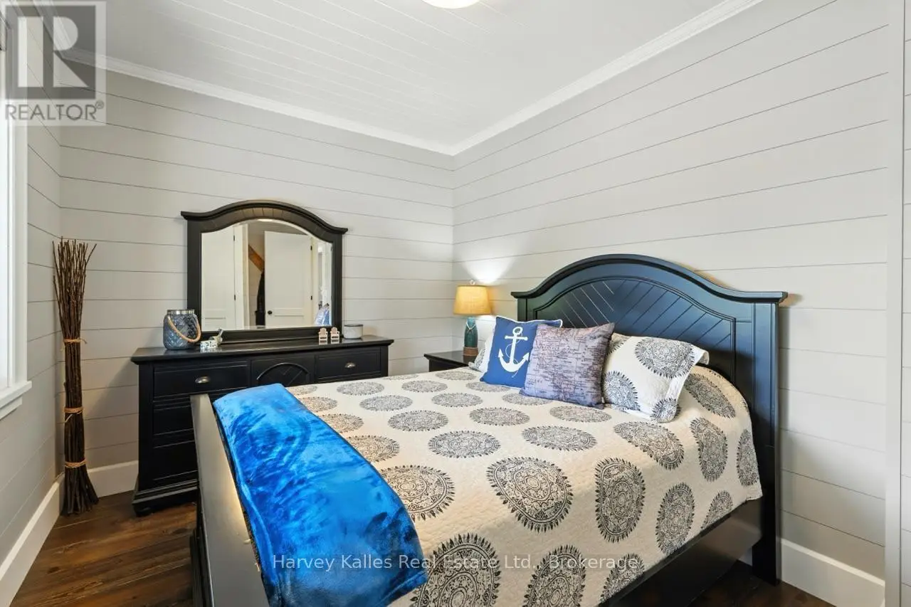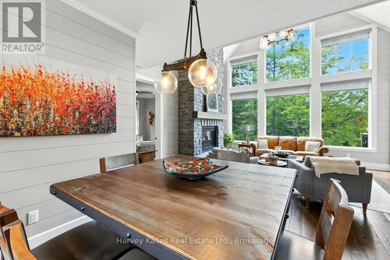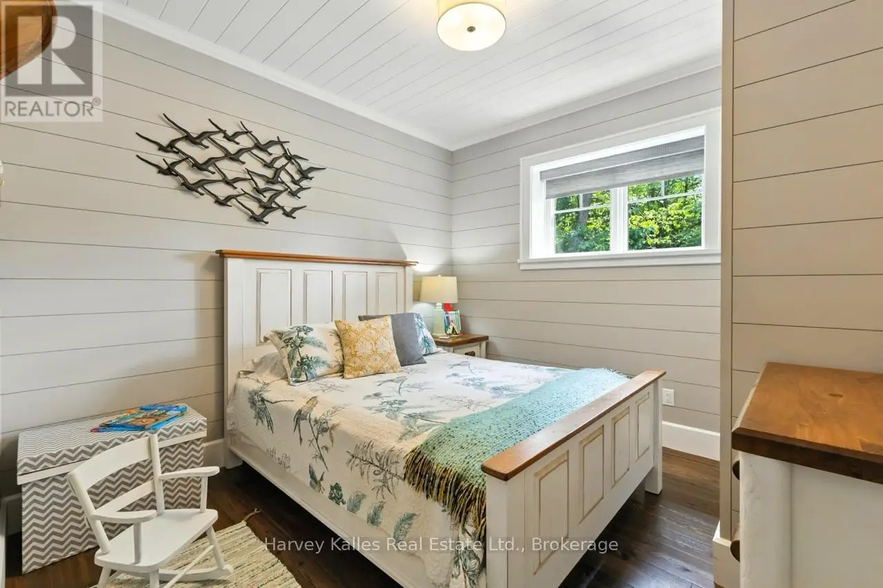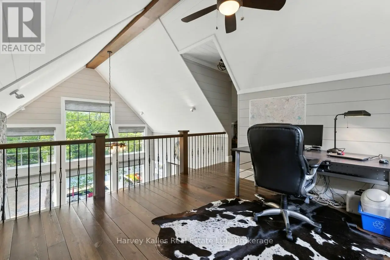 Custom built one owner South West facing Year Round Lake Muskoka beauty ideally located between Beaumaris and Port Carling on 101 Ft. (assessed) of mainland shoreline with year round municipal road access. Gentle topography, towering trees, handsome architecture. A most rare & value-packed, 1st ever offering. Built by Lakeridge Developments in 2017, the 3 bedroom plus a den, plus an office, plus a loft, gorgeous family cottage or year round home, features all the modern comforts, with approx. 2,500 square feet of finished living space, 2 classic Muskoka stone propane-burning fireplaces, random width red pine flooring throughout, and a finished lower level walkout. Cleverly designed, brilliant main floor layout captures glimpses of water views, with south-west oriented principal rooms for loads of natural light. Stunning chef's kitchen with custom cabinetry, centre island w/granite top, opening to the dramatic 1 1/2 storey great room with fireplace, wall of windows, and walkout to a lakeside deck. Dining area, laundry room, powder room, and primary bedroom with its own private deck, 4 pc. ensuite with double sinks, and walk-in closet, are also located on the main floor. Attached garage with inside entry. Large loft with separate sitting room. Finished lower level walkout boasts warm hardwood floors, raised above a heated crawl space, with centrepiece family room with wet bar, another stone fireplace, lakeside bedrooms, 3 pc. bath, plus a den and an office. Gentle level grounds with ample table land, fire pit spot, covered hot tub deck, and dock with deeper and shallower water. All the practical living features and facets have been well thought-out and infused into the design. Complete with full back-up Generac, drilled well, efficient propane furnace, central air, and all the bells. This is a turnkey, virtually new, customized to perfection, lake front hideaway in one of the most desirable locales of Lk. Muskoka. Minutes to shopping, dining, golf, and all the amenit (id:16999)