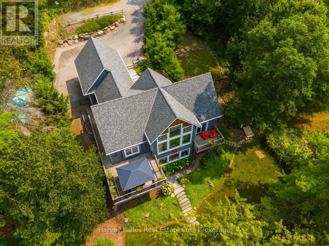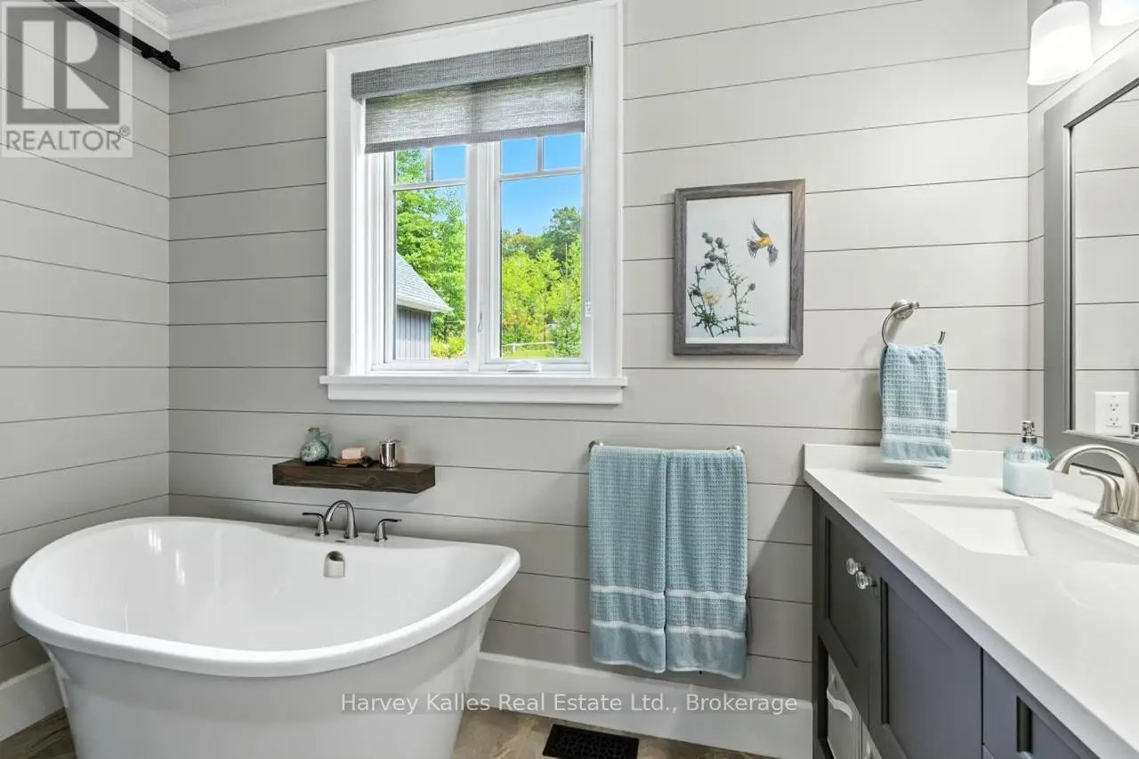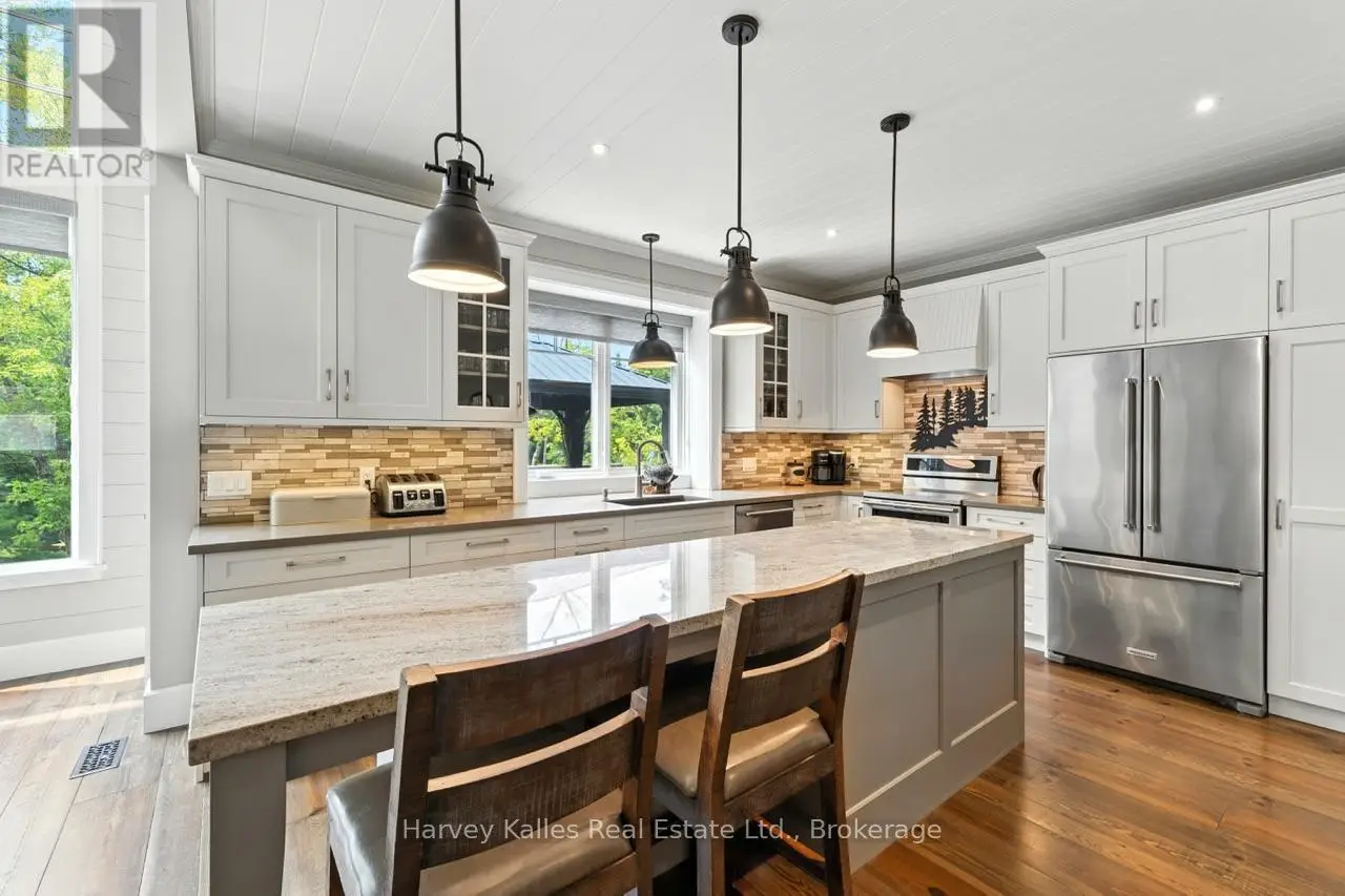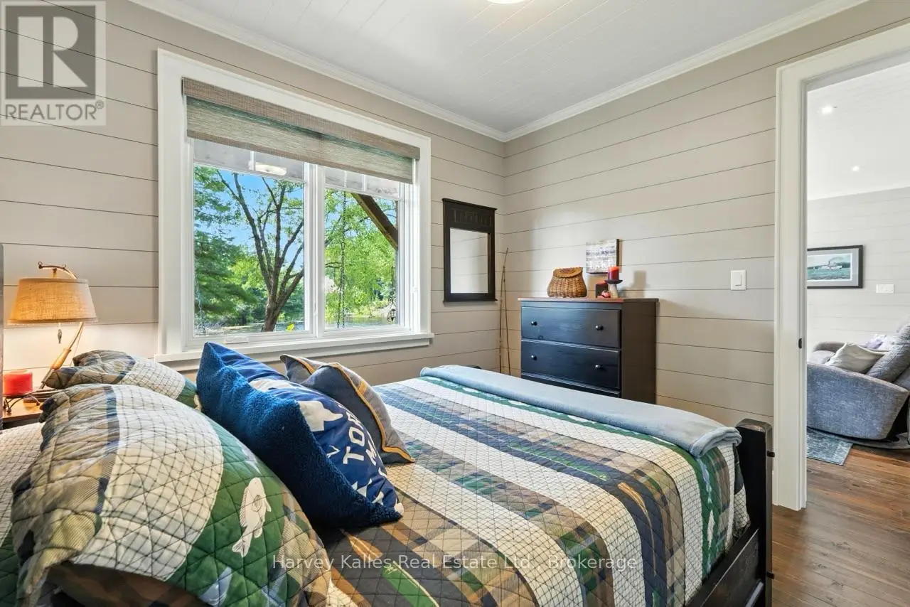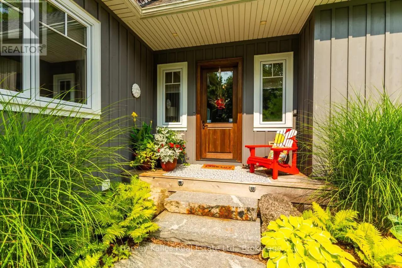 Custom built one owner South West facing Year Round Lake Muskoka beauty ideally located between Beaumaris and Port Carling on 101 Ft. (assessed) of mainland shoreline with year round municipal road access. Gentle topography, towering trees, handsome architecture. A most rare & value-packed, 1st ever offering. Built by Lakeridge Developments in 2017, the 3 bedroom plus a den, plus an office, plus a loft, gorgeous family cottage or year round home, features all the modern comforts, with approx. 2,500 square feet of finished living space, 2 classic Muskoka stone propane-burning fireplaces, random width red pine flooring throughout, and a finished lower level walkout. Cleverly designed, brilliant main floor layout captures glimpses of water views, with south-west oriented principal rooms for loads of natural light. Stunning chef's kitchen with custom cabinetry, centre island w/granite top, opening to the dramatic 1 1/2 storey great room with fireplace, wall of windows, and walkout to a lakeside deck. Dining area, laundry room, powder room, and primary bedroom with its own private deck, 4 pc. ensuite with double sinks, and walk-in closet, are also located on the main floor. Attached garage with inside entry. Large loft with separate sitting room. Finished lower level walkout boasts warm hardwood floors, raised above a heated crawl space, with centrepiece family room with wet bar, another stone fireplace, lakeside bedrooms, 3 pc. bath, plus a den and an office. Gentle level grounds with ample table land, fire pit spot, covered hot tub deck, and dock with deeper and shallower water. All the practical living features and facets have been well thought-out and infused into the design. Complete with full back-up Generac, drilled well, efficient propane furnace, central air, and all the bells. This is a turnkey, virtually new, customized to perfection, lake front hideaway in one of the most desirable locales of Lk. Muskoka. Minutes to shopping, dining, golf, and all the amenit (id:16999)