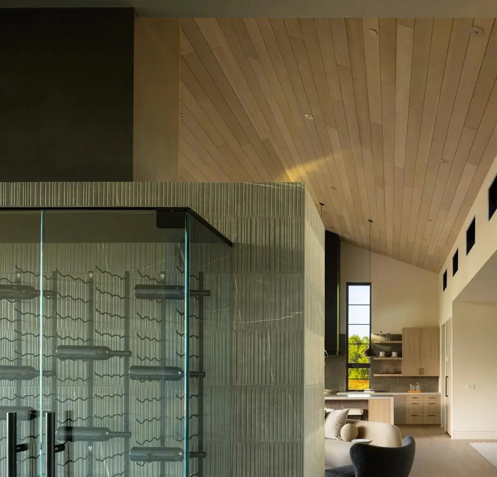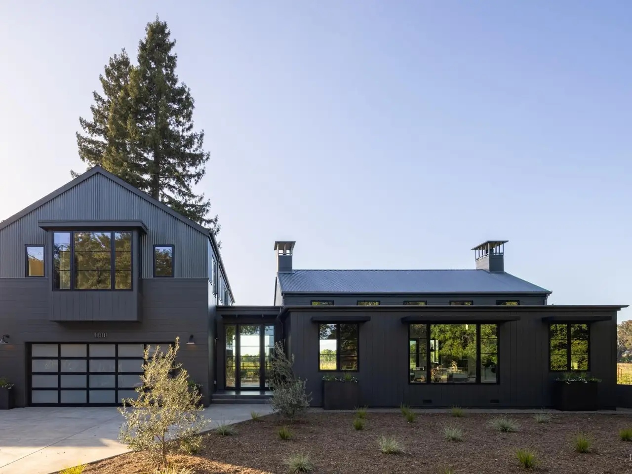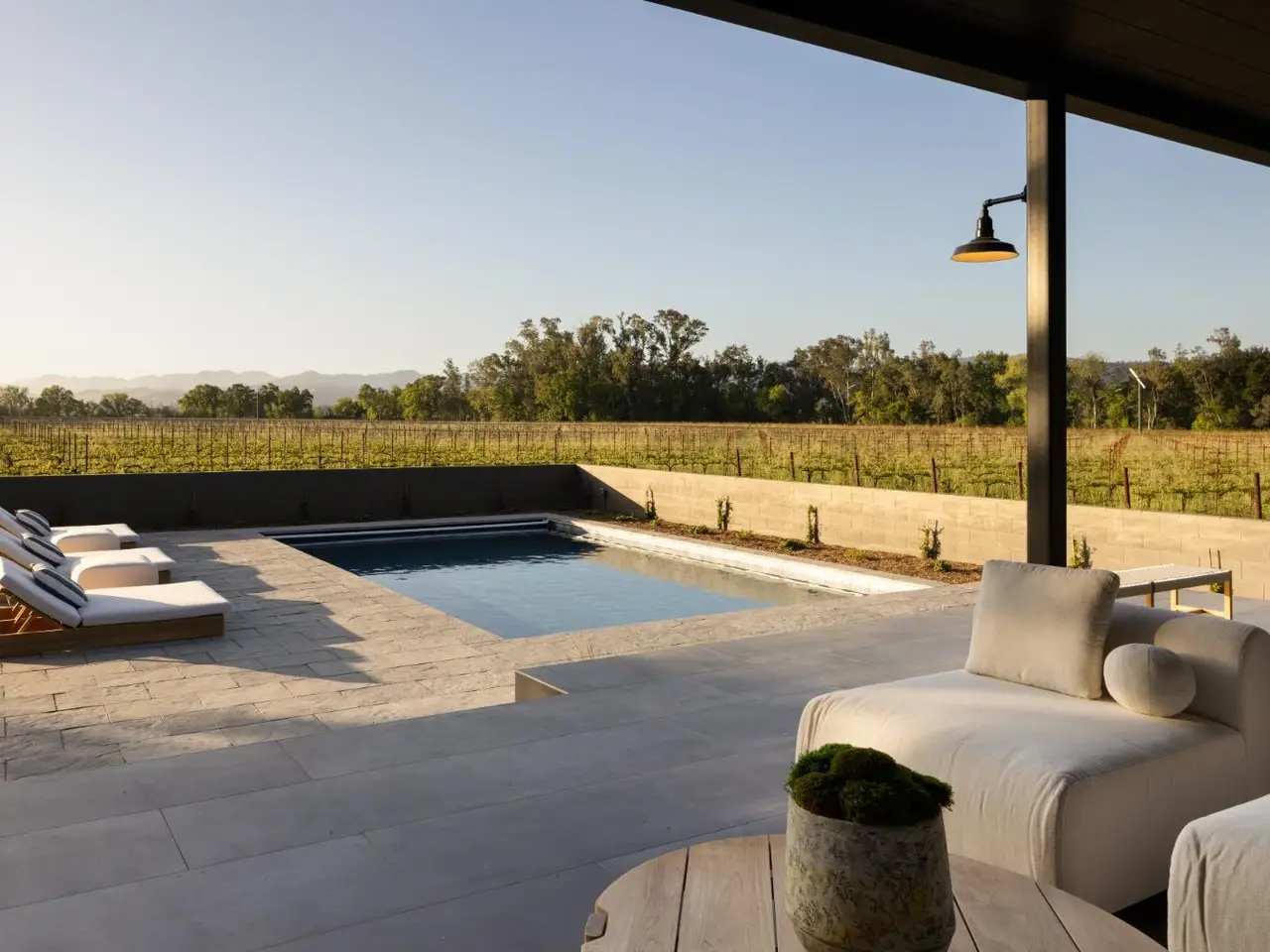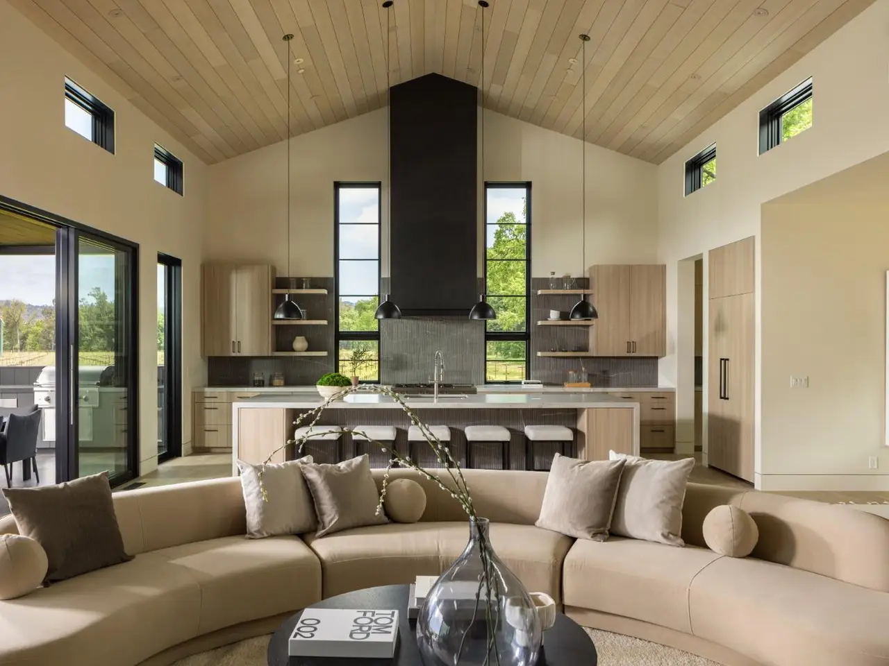 In one of Napa Valley's most iconic winegrowing regions, this distinctive Rutherford property captures panoramic vineyard views and a profound sense of seclusion. Encompassing approximately 0.33 acres and surrounded by premium Cabernet Sauvignon vines, it occupies a rare position within the heart of the renowned Rutherford AVA. The residence is a bold yet refined interpretation of agrarian design, blending rustic materials with contemporary formvertical and horizontal siding, corrugated metal accents, and crisp, clean lines define its striking silhouette. The residence features three thoughtfully designed bedrooms, including a tranquil primary suite on the main level that offers comfort and privacy. At the heart of the home, a dramatic great room with vaulted ceilings, transom windows, and an expansive wall of sliding glass doors opens to a covered loggia, creating a seamless connection between indoors and out. Just steps from the main kitchen, a fully equipped outdoor kitchen enhances the ease of alfresco dining and entertaining. The terrace unfolds to a sun-drenched pool bordered by low garden walls, manicured lawn, and generous lounge spaceall set against unobstructed views of surrounding vineyards. This property embodies the elegance and ease of Napa Valley living.