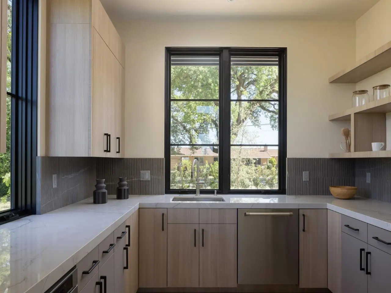 Expansive wall of sliding glass doors