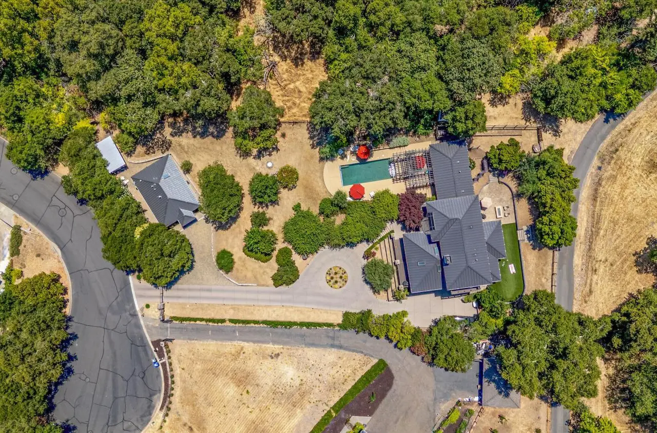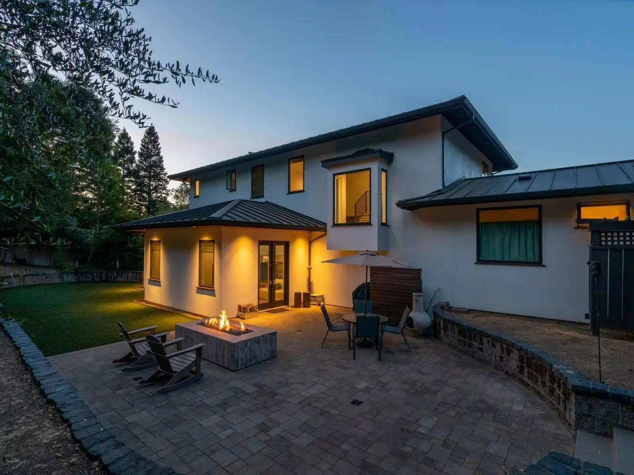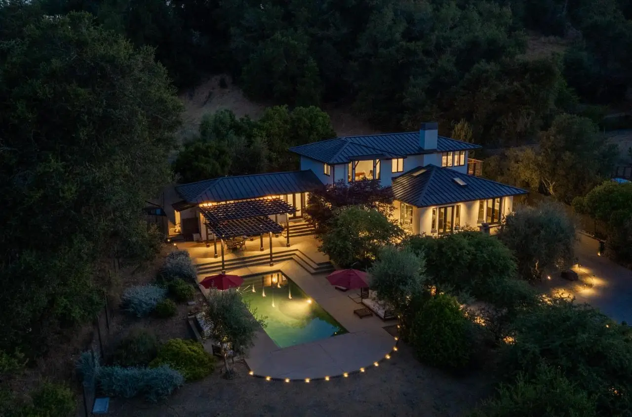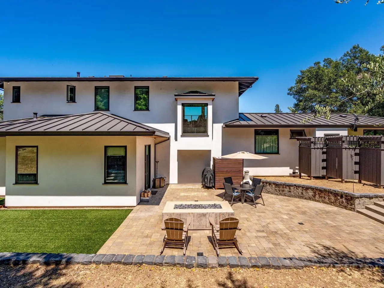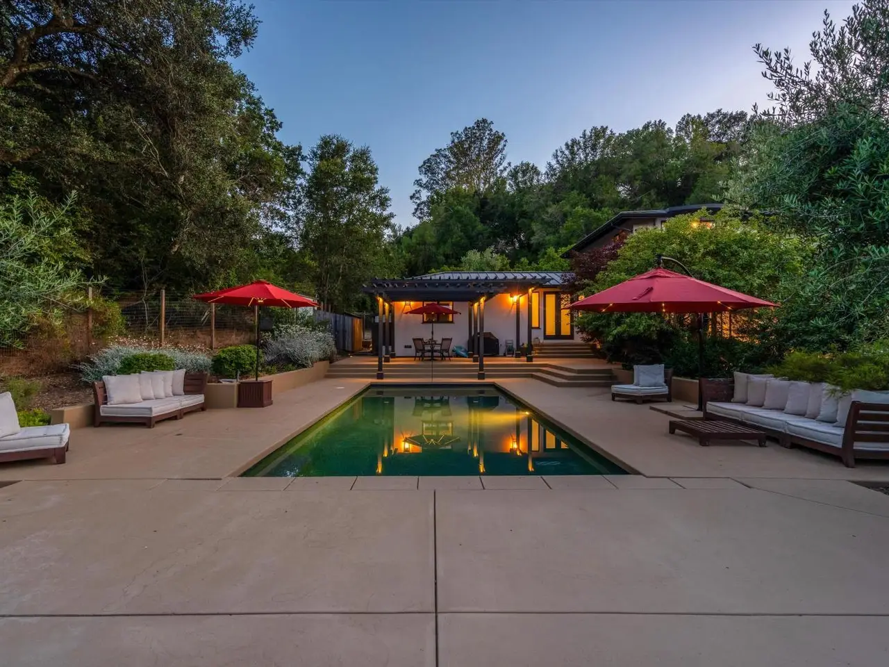Luxurious Napa Valley estate, recently remodeled with top-tier materials. The main home features a spacious chef's kitchen opening to a balcony with breathtaking mountain views, and a primary suite overlooking the pool. Two additional en-suite bedrooms provide ample space for guests. A stunning guest house with upgraded appliances, elegant finishes, one bedroom, and built-in bunk beds offers a perfect retreat. Radiant flooring throughout ensures year-round comfort, while an advanced Sonos sound system and six outdoor speakers enhance indoor and poolside entertainment. The impressive wine cellar with seamless glass displays your collection in style. Located on a secure cul-de-sac with a gated private entrance, this meticulously designed home combines privacy with convenience, just minutes from downtown Napa. Enjoy the perfect blend of countryside charm and modern luxury in this exceptional Napa estate.