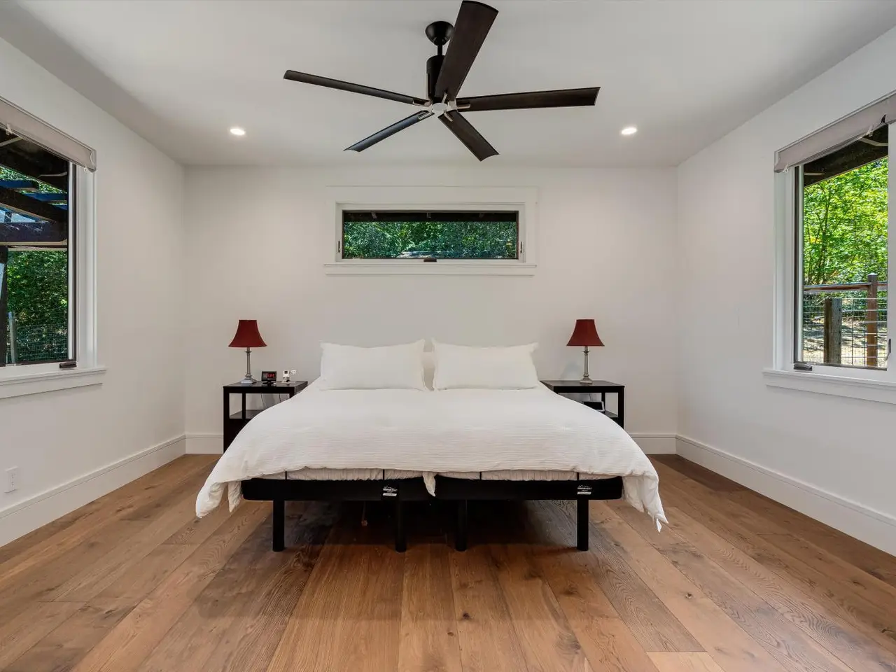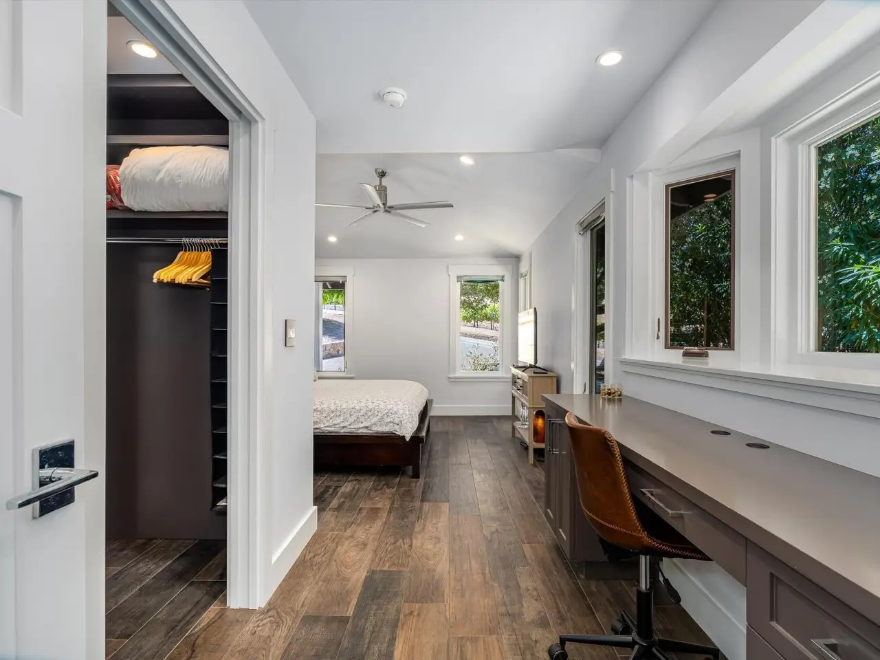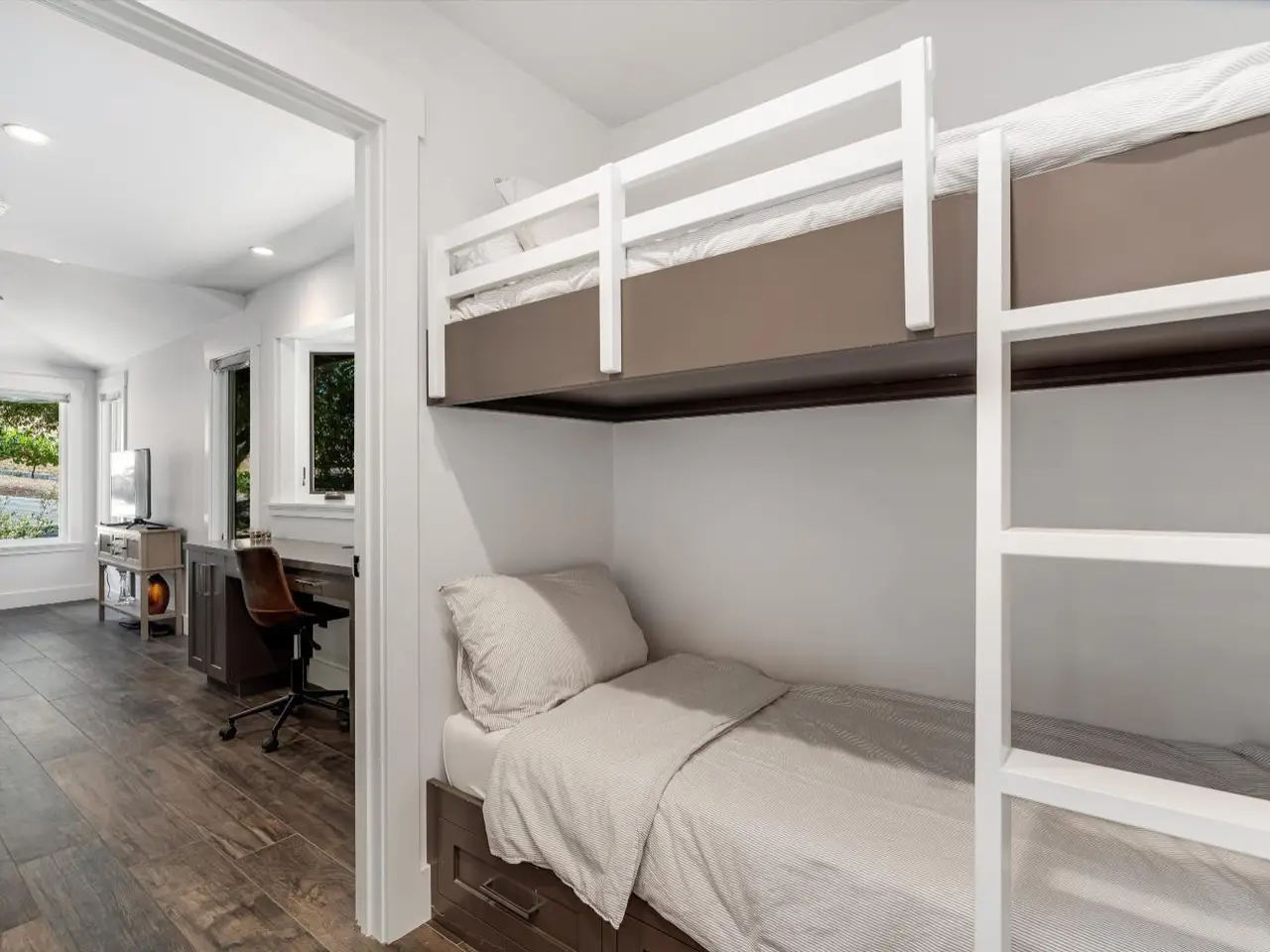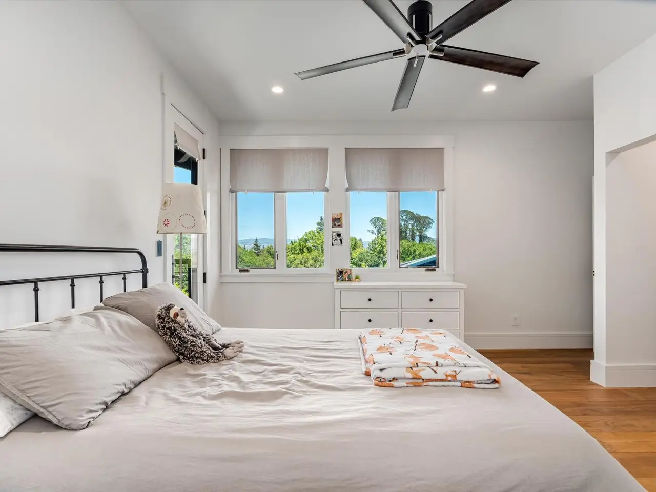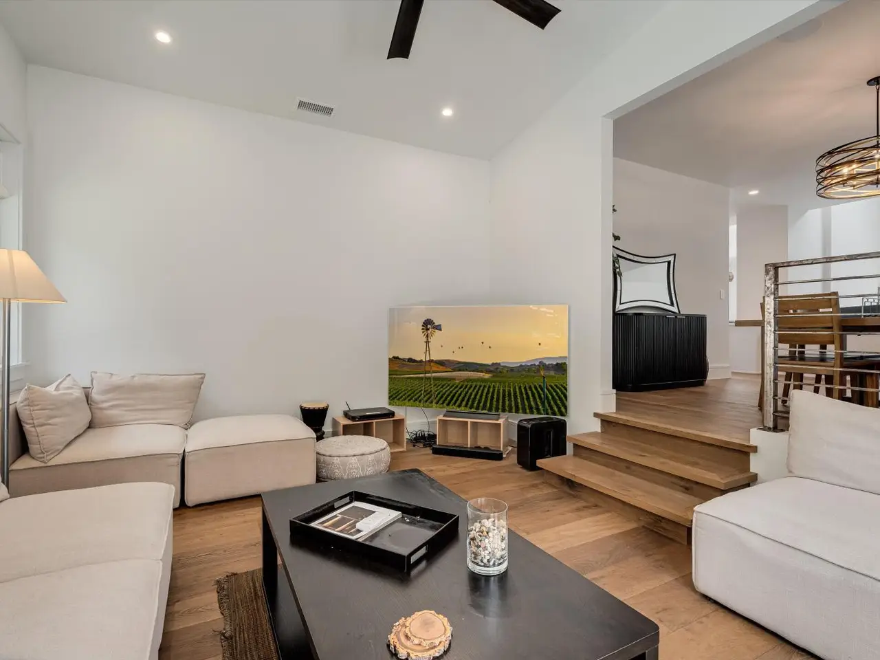 Luxurious Napa Valley estate, recently remodeled with top-tier materials. The main home features a spacious chef's kitchen opening to a balcony with breathtaking mountain views, and a primary suite overlooking the pool. Two additional en-suite bedrooms provide ample space for guests. A stunning guest house with upgraded appliances, elegant finishes, one bedroom, and built-in bunk beds offers a perfect retreat. Radiant flooring throughout ensures year-round comfort, while an advanced Sonos sound system and six outdoor speakers enhance indoor and poolside entertainment. The impressive wine cellar with seamless glass displays your collection in style. Located on a secure cul-de-sac with a gated private entrance, this meticulously designed home combines privacy with convenience, just minutes from downtown Napa. Enjoy the perfect blend of countryside charm and modern luxury in this exceptional Napa estate.