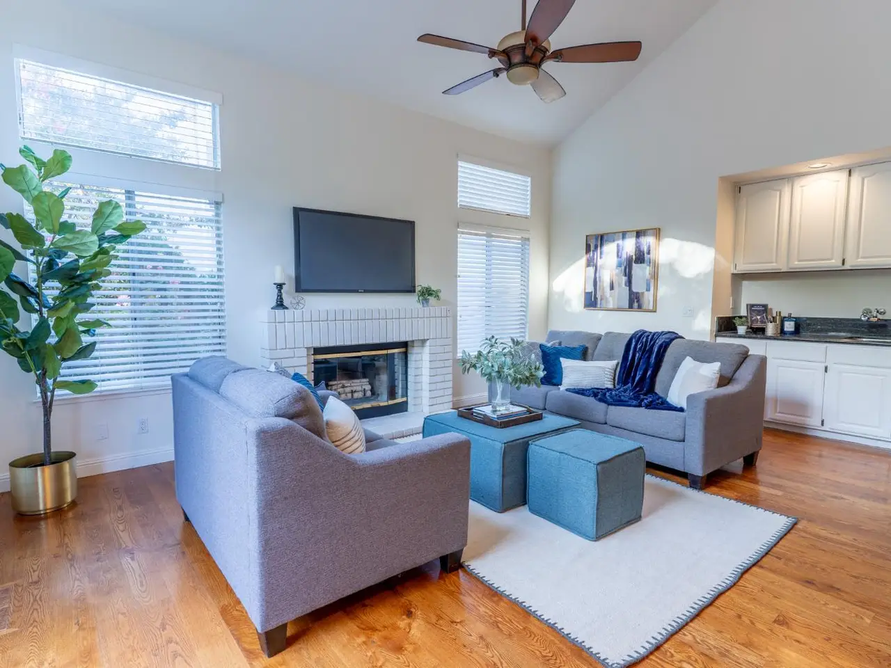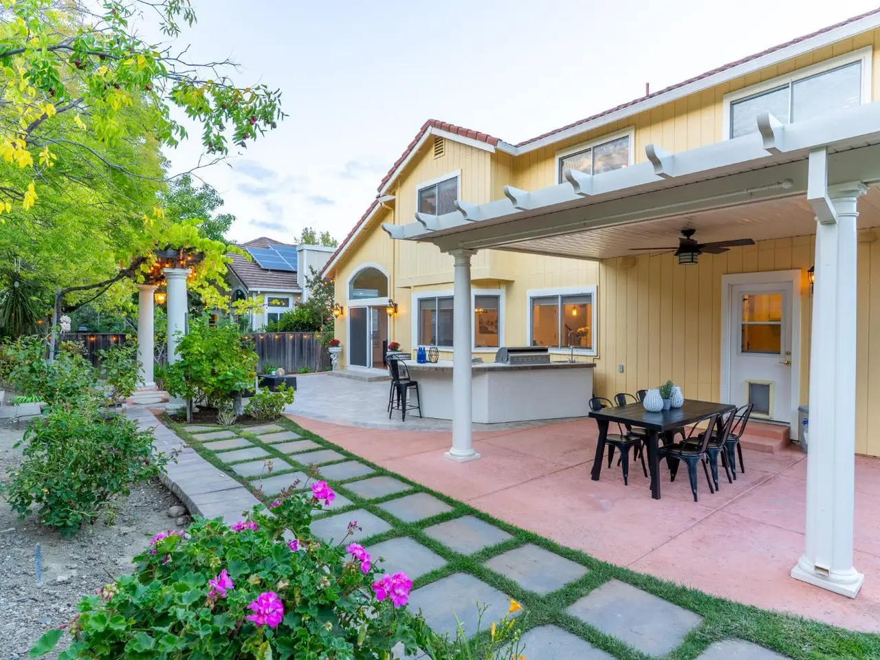 Located in Napa's desirable Browns Valley neighborhood, this spacious 5-bedroom, 3-bathroom home sits on a generous 0.6-acre lot with vineyard and beautiful hillside views. The landscaped front yard and covered porch welcome you into a warm living room featuring hardwood floors, a pitched ceiling, and a cozy fireplace. Just a few steps up, the main level offers a formal dining room, laundry room, and a kitchen that opens to the family room and a covered back patioperfect for indoor-outdoor living. The primary suite is also on the main level and features vaulted ceilings, a walk-in closet, and a luxurious bathroom with a jetted soaking tub, tiled stall shower, and private toilet room. An additional bedroom or office with a full bath completes the main level. Upstairs, you'll find three spacious bedrooms and a full bathroom with dual sinks and shower over tub. The backyard is an entertainer's paradise with a built-in BBQ, covered patio, gardens, fruit trees, chickencoop, and a lovely Gazebo up above, along with approximately 1,000 Cabernet vines ideal for a hobby vineyard with stunning views of the hills. A 3-car garage with extra storage along the back wall completes the property. This exceptional home blends comfort, functionality, and a true Napa Valley lifestyle.
