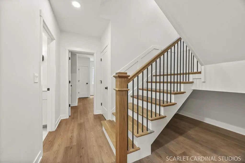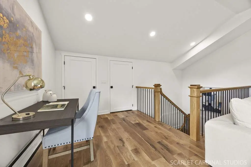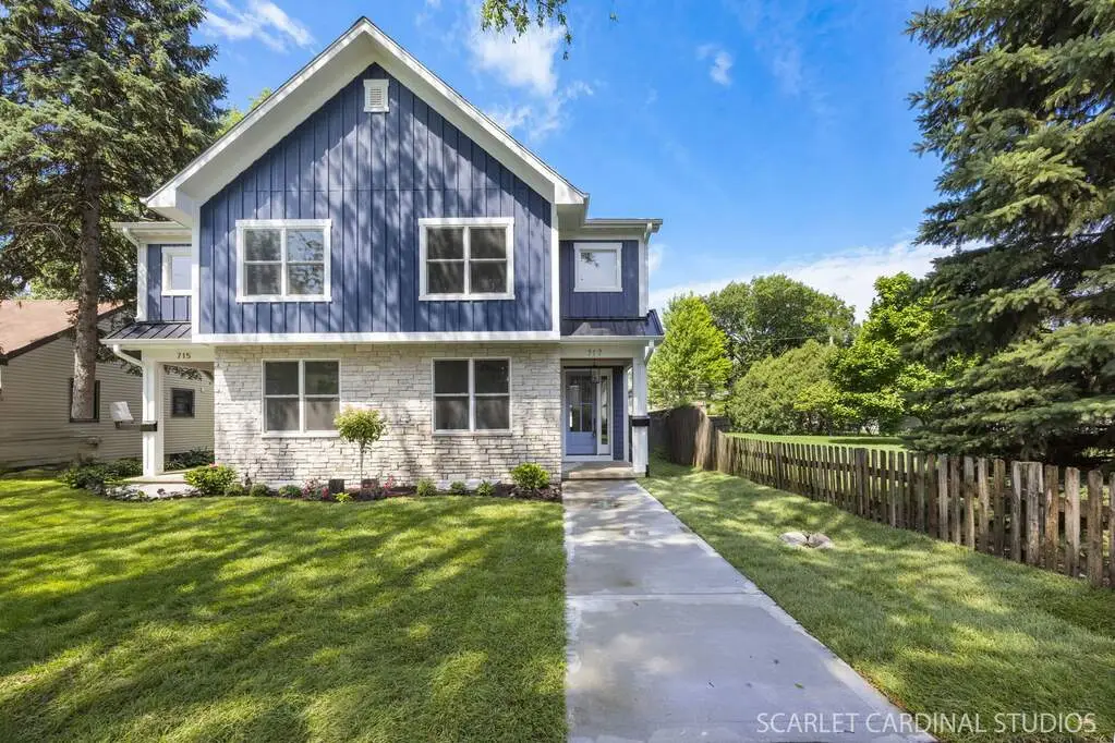 Looking for luxury living just steps from the Metra Train and Downtown Naperville? Welcome to 717 N Brainard Street, a truly exceptional custom-built duplex offering over 4,000 square feet of finely curated living space spanning four impressive levels - all within walking distance from the 5th Avenue Metra station! Offering every attention to detail, including 4 bedrooms; 5 full bathrooms; Marvin windows; Pinnacle stairs; custom cabinetry by Homeowners Dream Custom Cabinets; maintenance-free James HardieTM siding; a spacious 2-car detached garage; and an incredible layout designed for both comfort and style, this home is the definition of luxury living in one of Naperville's most sought-after locations. Step through a covered entry and enjoy an expertly curated space boasting white oak flooring, hand-picked designer lighting, and elevated finishes throughout. The main level features a welcoming foyer with a coat closet, a full bathroom, and a flexible office space ideal for use as a workspace or additional bedroom. The open-concept main living space seamlessly connects the chef's kitchen, dining area, and spacious family room. Designed for both function and flair, the kitchen boasts soft-close custom cabinetry by Homeowners Dream; roll-out drawers; a walk-in pantry; a center island and peninsula with additional seating; pot filler; beverage refrigerator; and even a dedicated garbage disposal button - every element selected with luxury in mind. A cozy 3-season room and mudroom with built-in cubbies offer additional space designed for everyday living. An elegant white oak staircase, crafted by Naperville's own Pinnacle Stairs, leads to a second level featuring an exquisite primary suite with a spa-inspired bathroom offering a dual sink vanity, large walk-in shower, private toilet closet, and an oversized walk-in closet. Two additional bedrooms with ample closet space, a shared hall bath, and a conveniently located laundry room complete the second level. Upstairs, the third-floor retreat serves as a versatile bonus room with its own full bath and ample closet space - perfect for a home theater, fitness studio, or guest suite! The finished basement offers 9-foot ceilings, a spacious rec area, a bar with beverage fridge, an additional full bathroom, a 4th bedroom, and generous storage - all with sound-reducing drop ceilings for added comfort. For accessibility, an elevator can be added for an additional charge. This is more than just a home - it's a lifestyle upgrade in the heart of Downtown Naperville. Don't miss your opportunity to own a thoughtfully designed residence that perfectly blends timeless craftsmanship with today's most sought after amenities!