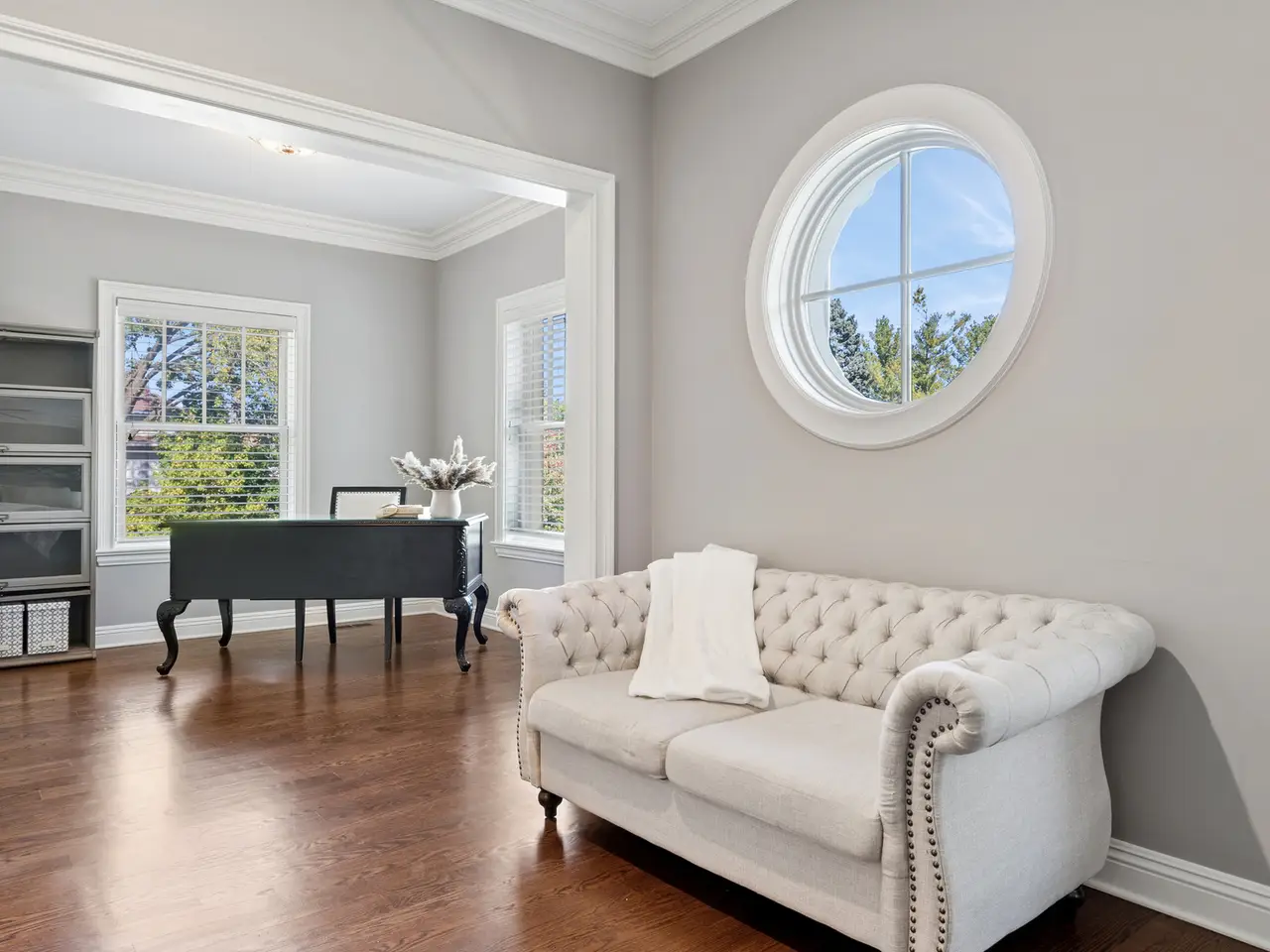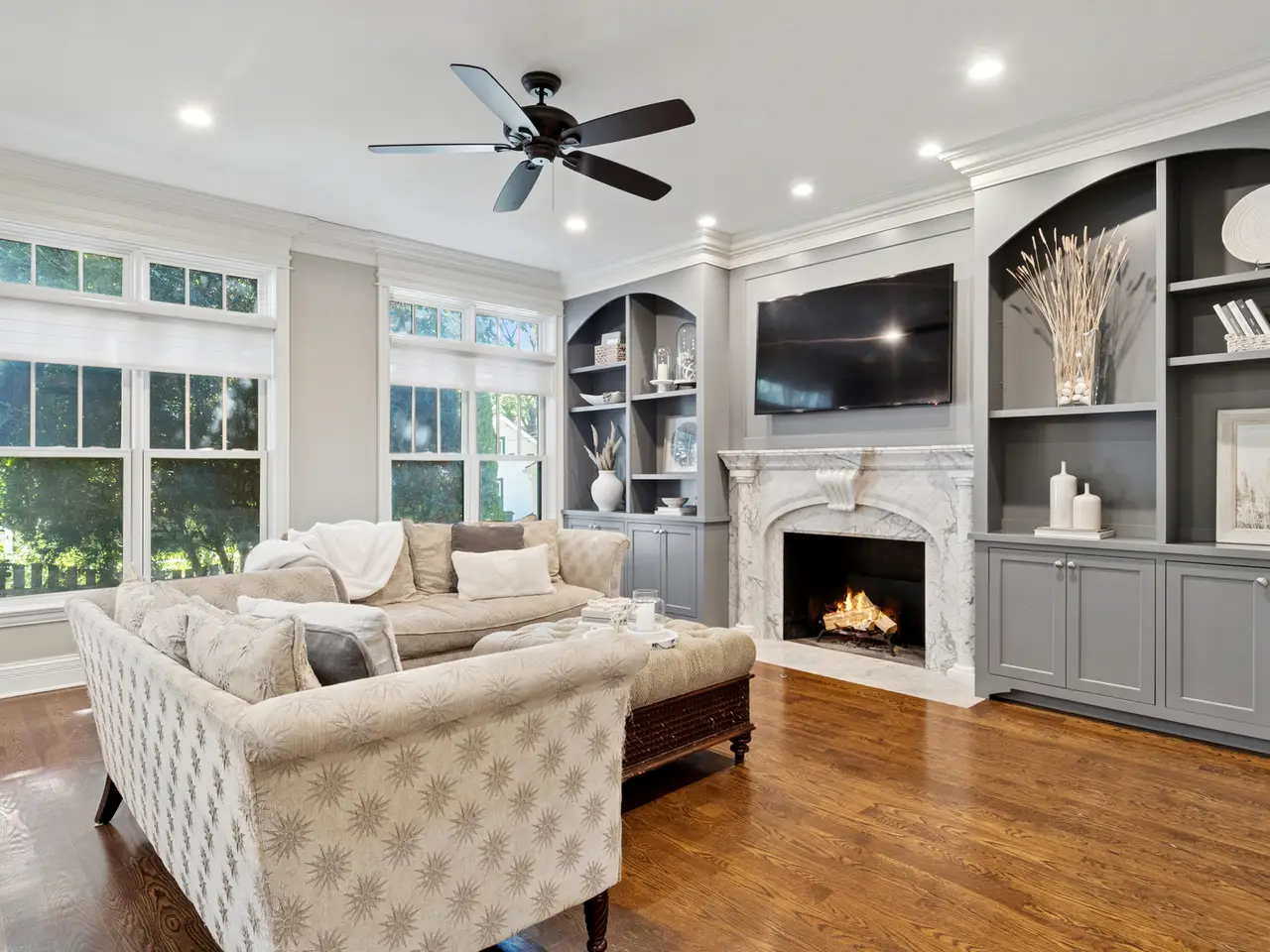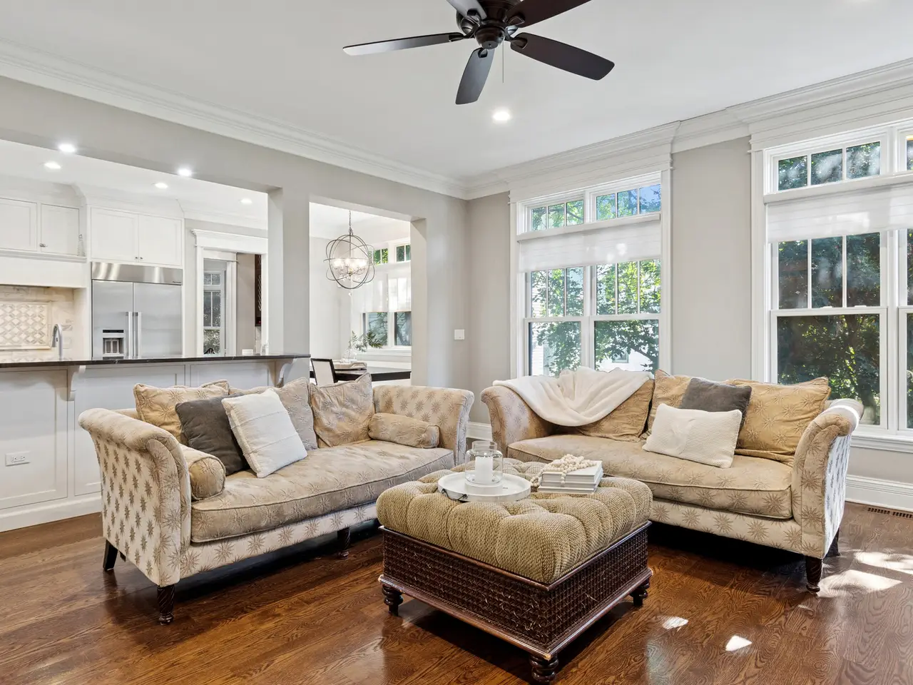 LIVE THE DOWNTOWN NAPERVILLE LIFESTYLE AT 203 S COLUMBIA STREET! Just steps from the heart of downtown, this ICONIC Victorian-style home combines timeless elegance with modern luxury, offering an extraordinary opportunity to live amid boutique shops, award-winning restaurants, and the scenic Riverwalk. BUILT IN 2015, THIS ALL 4-SIDES BRICK HOME SPANS 5,000 SQUARE FEET and showcases 10-foot ceilings on the main level, 9-foot ceilings in the basement, and rich walnut hardwood floors throughout. Step inside to discover hand-carved custom millwork and architectural details that tell a story of artistry & refined craftsmanship. The focal point is a carved marble fireplace by Atelier Jouvence, the same artisans behind the Chicago Art Institute's marble carvings, complemented by locally crafted stained-glass accents that bring vintage charm & character to every room. The 3 oversized imported doors on the main level, sourced from Venezuela, add distinction & architectural presence to the space."" THE CHEF'S KITCHEN IS AN ENTERTAINER'S DREAM, FEATURING ALL THERMADOR APPLIANCES, SLEEK MARBLE ""PIETRA GRAY"" COUNTERTOPS, AND A CUSTOM BANQUETTE BREAKFAST NOOK, PERFECT for family gatherings or hosting friends. Enjoy a morning coffee or evening glass of wine on the wraparound front porch, soaking in the energy of downtown living. The primary suite is a private retreat, offering a sitting area or home office, a walk-in closet, and an exquisite bathroom with an oversized jetted tub , separate shower, antiqued white woodwork on his-and-her sinks, and black-and-white tiled marbled accents-a perfect blend of elegance & style. With 5 additional spacious bedrooms, each featuring its own en-suite bath with marble countertops & walk-in closet, the home provides privacy & luxury for every family member. The basement, already equipped with a fireplace & rough-in plumbing, offers endless potential for a recreation area, home theater, or guest suite. Modern amenities include 3 furnaces, humidifiers, a/c units & an INSTANT WHOLE-HOUSE HOT WATER SYSTEM - there is no running out of hot water! The detached two-car garage features an upper-level loft, ideal for a workshop, studio, or hobby space, and there's also an extra parking pad for convenience. Experience the vibrant downtown lifestyle-stroll along the Riverwalk, enjoy favorite restaurants like Gia Mia, Santo Cielo, & Vasili's, or take in live music and seasonal festivals just steps from your front door. Minutes from North Central College, award-winning District 203 schools, and the Metra station, this home offers unparalleled convenience. A rare combination of artistry, comfort, and location-203 S Columbia Street invites you to live beautifully in the very heart of Naperville.