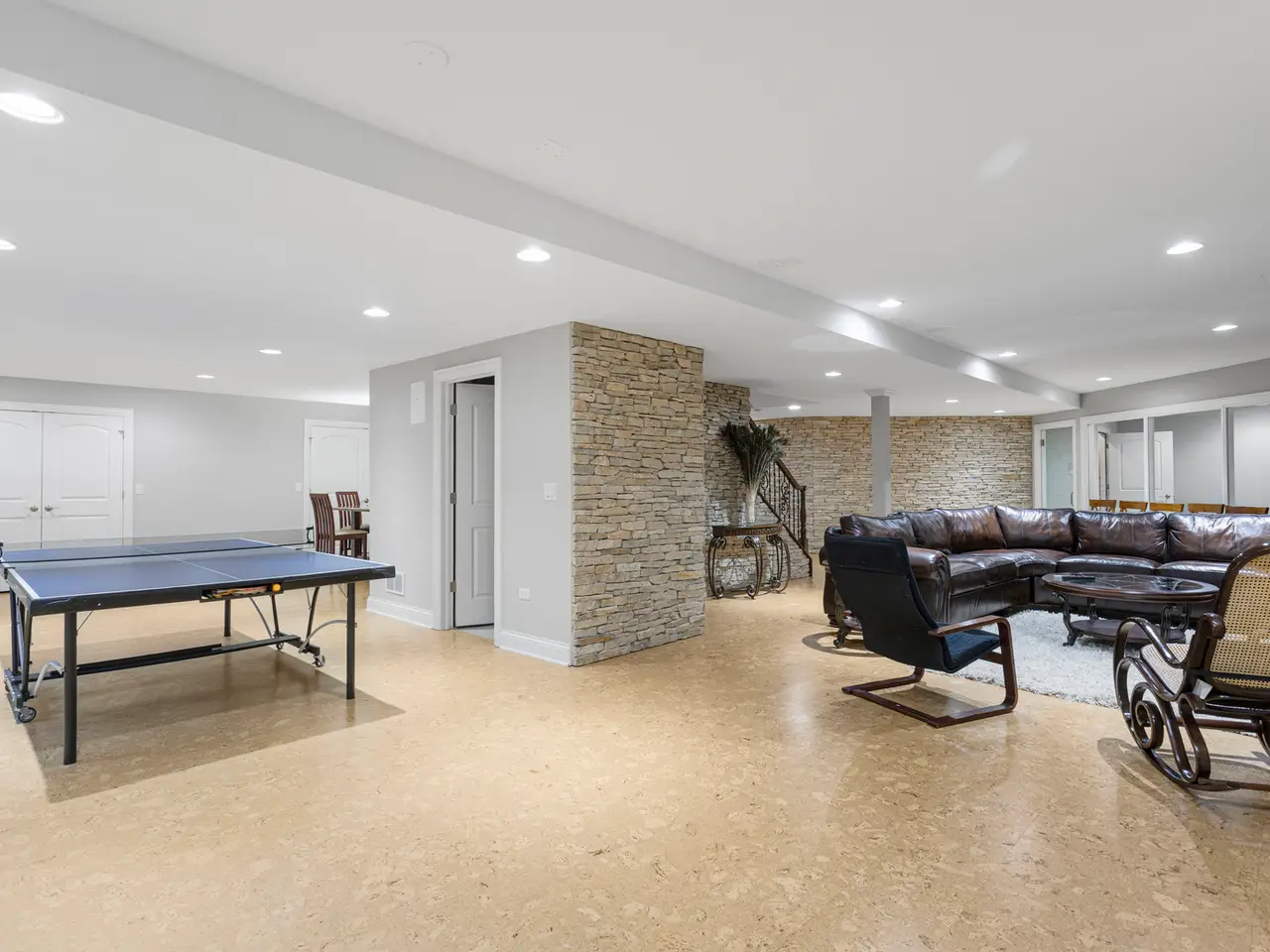 Gym and wet bar in basement