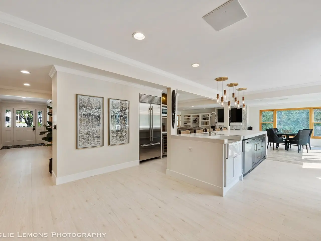 Reimagined with a timeless modern farmhouse vibe, this stunning residence on a rare East facing estate sized 1-acre lot blends character, luxury, and functionality in a way that feels truly exceptional. From the welcoming wrap-around porch to the bright and open interiors, every detail has been carefully curated. The spacious floor plan stands apart with wide open sightlines, multiple living spaces and custom finishes throughout. At the heart of the home, the chef's kitchen showcases commercial-grade appliances, an expansive eating & prep island, and seamless flow into the main living areas-perfect for everyday living and entertaining alike. Charming window seats add warmth and a touch of farmhouse character. Designed for both comfort and versatility, this home offers multiple living spaces ideal for today's lifestyles. Perfectly suited for multigenerational living, it features bedrooms with private ensuites, a luxurious primary WOW suite with a true spa-inspired bath, and a thoughtfully crafted in-law suite-currently utilized as a theater room-complete with its own kitchenette for extended family or guests. Adding to its appeal, a spacious fourth-floor retreat provides the ultimate "fun room," perfect for recreation, media, or even a creative studio. Blending lifestyle and location, this fabulous home offers the perfect balance of privacy and convenience ( not to mention low property taxes) within the award-winning Naperville District 203 schools. The home offers a peaceful retreat with quick access to trails, Starbucks, Trader Joe's, Mariano's, and all the premier amenities of downtown Naperville just moments away. Fresh, functional, and inspiring! Short drive away from Route 53 and I355. Love where you live!