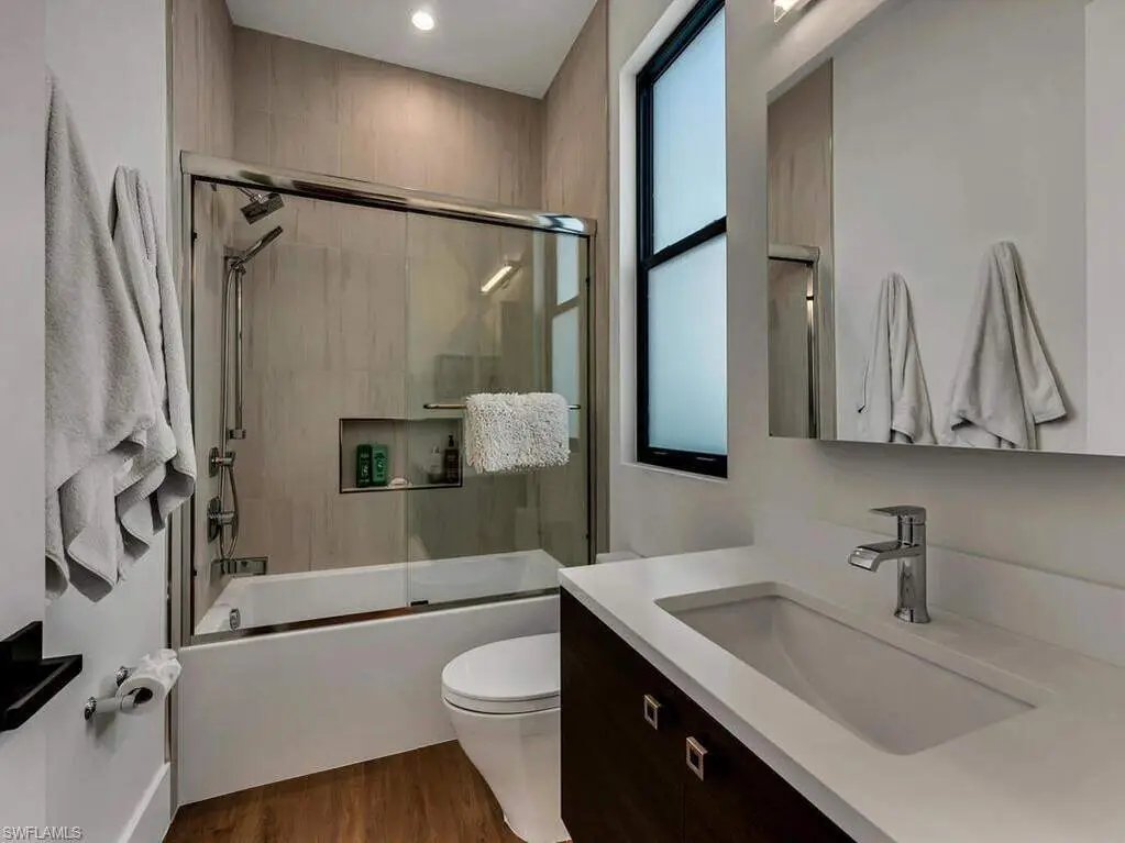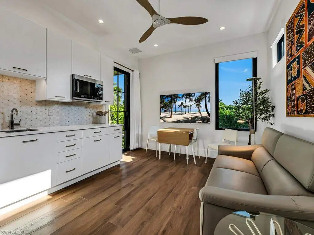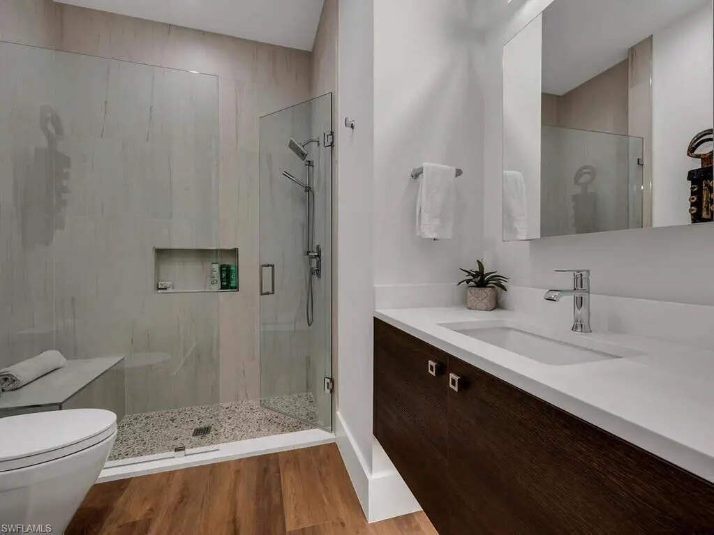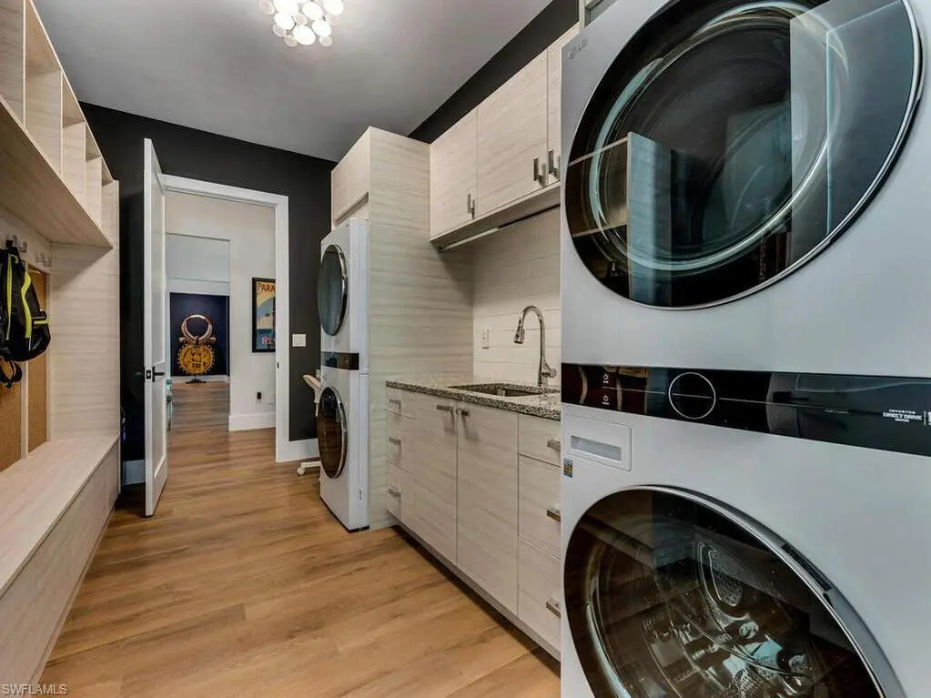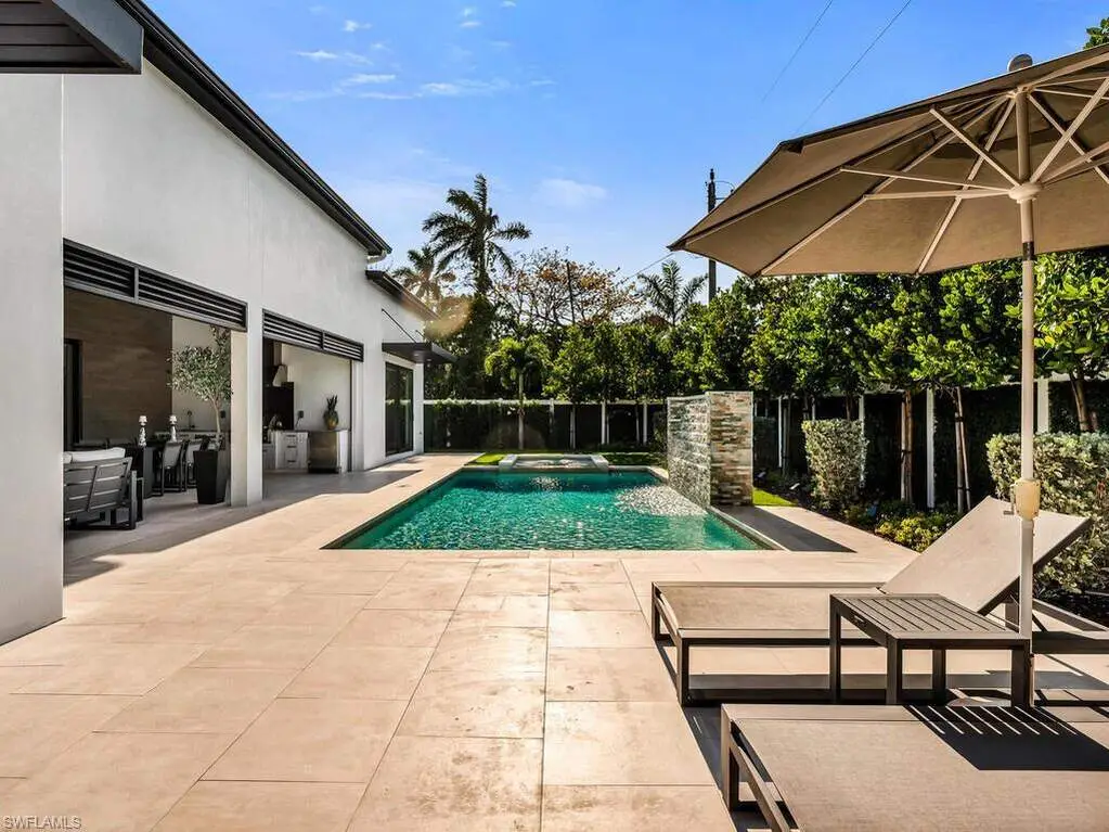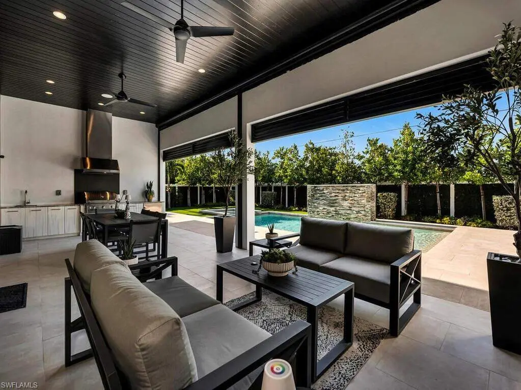 Crafted for Living. Designed for Legacy. This is more than a home-it's a lifestyle statement. Inspired by the sleek, high-desert estates of Scottsdale, Arizona, this architectural gem brings modern minimalism and luxurious livability to the heart of Naples, Florida. With 4,524 sq/ft under air and 7,312 sq/ft total-including 1,411 sq/ft of lanai and pool deck-this one-of-a-kind residence offers seamless indoor-outdoor living on a grand scale. At the heart of the home is a showstopping 15-foot island and a culinary suite that includes a 48" Z-Line gas range with dual electric ovens, dual 36" refrigerator/freezers, convection microwave, dual dishwashers, a hidden mixer station, and walk-in butler's pantry with additional sink, dishwasher, and refrigerator. Dual dedicated glassware rinsers add a chef's-kitchen flourish. The 14' x 32' covered lanai is an entertainer's dream-complete with built-in grill (infrared & rotisserie), undercounter refrigerator, gas fireplace, and a 75" TV. Motorized solar shades allow for total comfort and ambiance, whether you're dining alfresco or lounging by the spa-style pool with cascading waterfalls, artificial turf, and lush privacy landscaping. The primary suite offers serene views and spa-caliber amenities: wet room with steam shower, chroma-therapy lighting, freestanding soaking tub, dual vanities with storage towers, Toto bidet toilets, and a private outdoor shower surrounded by gardens. The custom walk-in closet is illuminated and designed like a luxury boutique. Four guest suites, each with en-suite baths and generous dimensions, are designed to accommodate king or dual queen beds. A private guest cabana, hidden behind a discreet entry, includes a full kitchen with Invis-a-Cook induction cooktop, LG Wash Tower, living area, private entrance, and parking. A flexible hallway can convert this into a two-bedroom, two-bath guest wing-ideal for extended stays or live-in staff. Additional highlights: 3-car garage with 12' ceilings (EV pre-wired), four-zone HVAC, three tankless propane water heaters, 1,000-gallon buried propane tank, Lutron Caseta lighting, insulated interior walls, Icynene foam attic insulation, under-cabinet lighting, freestanding ice maker, wine chiller, backlit Blue Cristallo Quartz stone accent panels, and a combination laundry/mudroom with two LG Wash Towers. Every finish. Every fixture. Every space-elevated! Live boldly. Entertain effortlessly. Rest luxuriously. This is more than a home-it's a statement in architecture, lifestyle, and design.