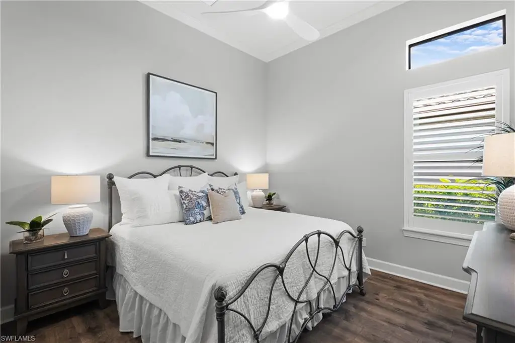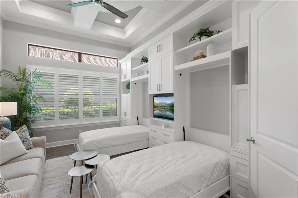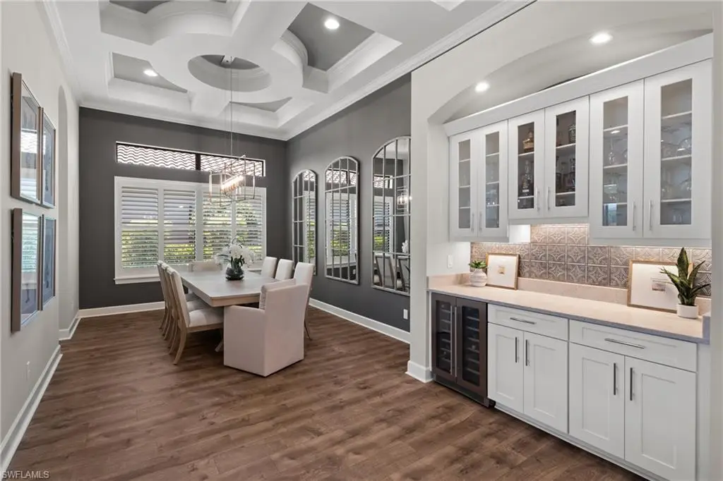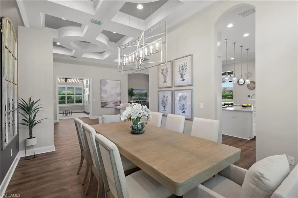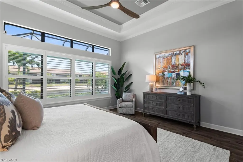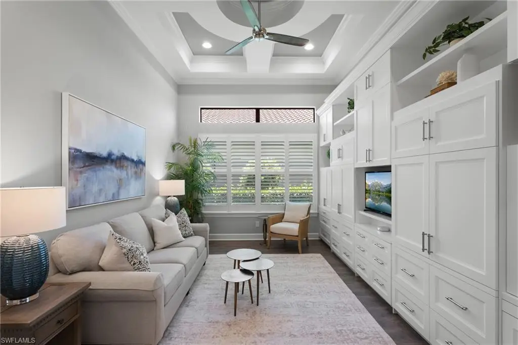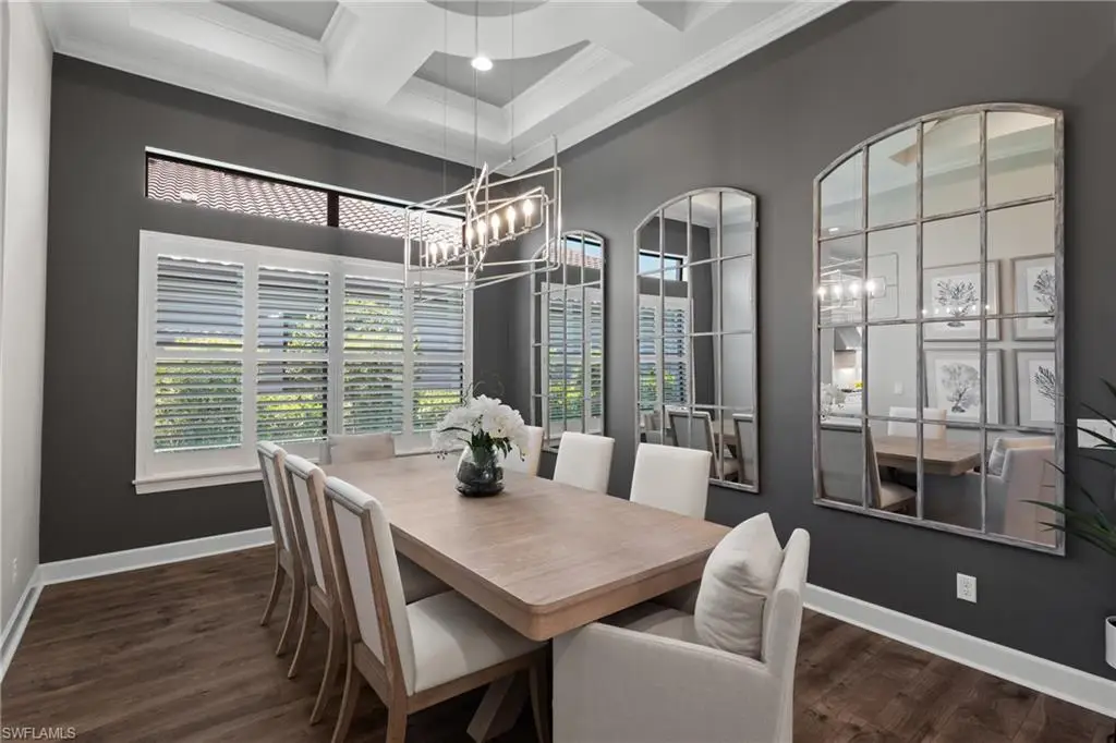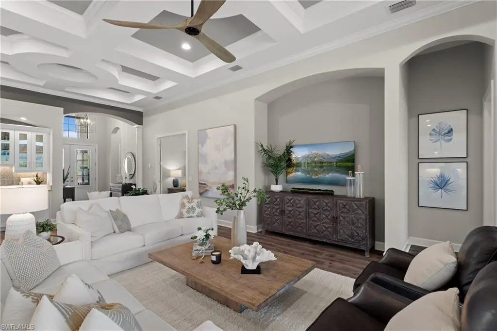 LIVE A VACATION LIFESTYLE IN ESPLANADE! FULL GOLF MEMBERSHIP INCLUDED! This immaculate ôFrancesco" (3 Bedrooms + Den, 3.5 Baths, 3 Car Garage) features nearly 2,900 sq ft of living space under air and has been lovingly cared for by its original owners. From the moment you enter the home through the double glass front doors, you are greeted with an open great room style floorplan with 12' ceilings throughout each room of the home with an abundance of windows & additional transom windows, wood floors throughout the common areas, den & bedrooms, impressive coffered style tray ceilings, and two sets of pocketing sliding glass doors to the extended lanai complete with outdoor kitchen & bar, GAS heated salt water pool/spa/sunshelf, and picture window screen cage overlooking the lake. The spacious kitchen lends itself to entertaining with an oversized island, shaker style cabinetry, quartz countertops, GE Cafe appliances including GAS cooktop & double wall ovens, abundance of cabinetry included 24-inch upper cabinets to complete the high end look. The den serves as a bonus living space and is outfitted with built-in cabinets including two twin murphy beds for overflow guests. You will be sure to catch sunsets 365 days a year from this home's west facing rear exposure overlooking the lake. For a peace of mind, this home features a mix of hurricane impact windows, motorized roll down hurricane shutters, and accordion hurricane shutters on all openings. A long list of special features include: ELECTRIC ROLL DOWN HURRICANE SCREENS/SHUTTERS on the lanai; custom outdoor kitchen and bar complete with grill, hood, sink, and refrigerator; upgraded climate controlled garage with finished floor & cabinetry; custom closet cabinetry & shelving throughout; dry bar with beverage cooler; plantation shutters; landscaping lighting; crown molding; and more! Esplanade Golf & Country Club of North Naples offers a true "Lifestyle Community" with world-class amenities, including a resort pool with cabanas and the popular "Bahama Bar," tennis, pickleball, bocce, a 14-mile network of bike/walking trails, and an 18-hole private golf course. The impressive 15,000 Sq Ft clubhouse features a restaurant, bar, wine-tasting room, wine lockers, and a Starbucks-style cafe. Best of all, the property's landscaping, irrigation, golf membership, and all community amenities are covered under a quarterly fee of just $3,434ùno additional fees or memberships required! Don't miss your opportunity to own this exceptional home in one of Naples' most sought-after communities. Schedule your tour of this stunning home and Esplanade Golf & Country Club today!